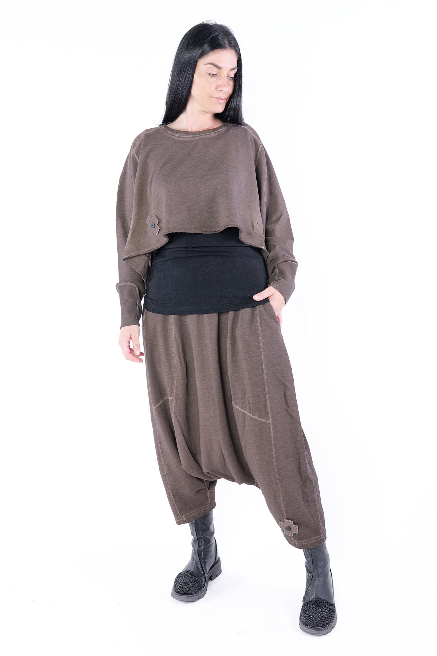 Kurzer Sweatpullover - Chocolate - 2101