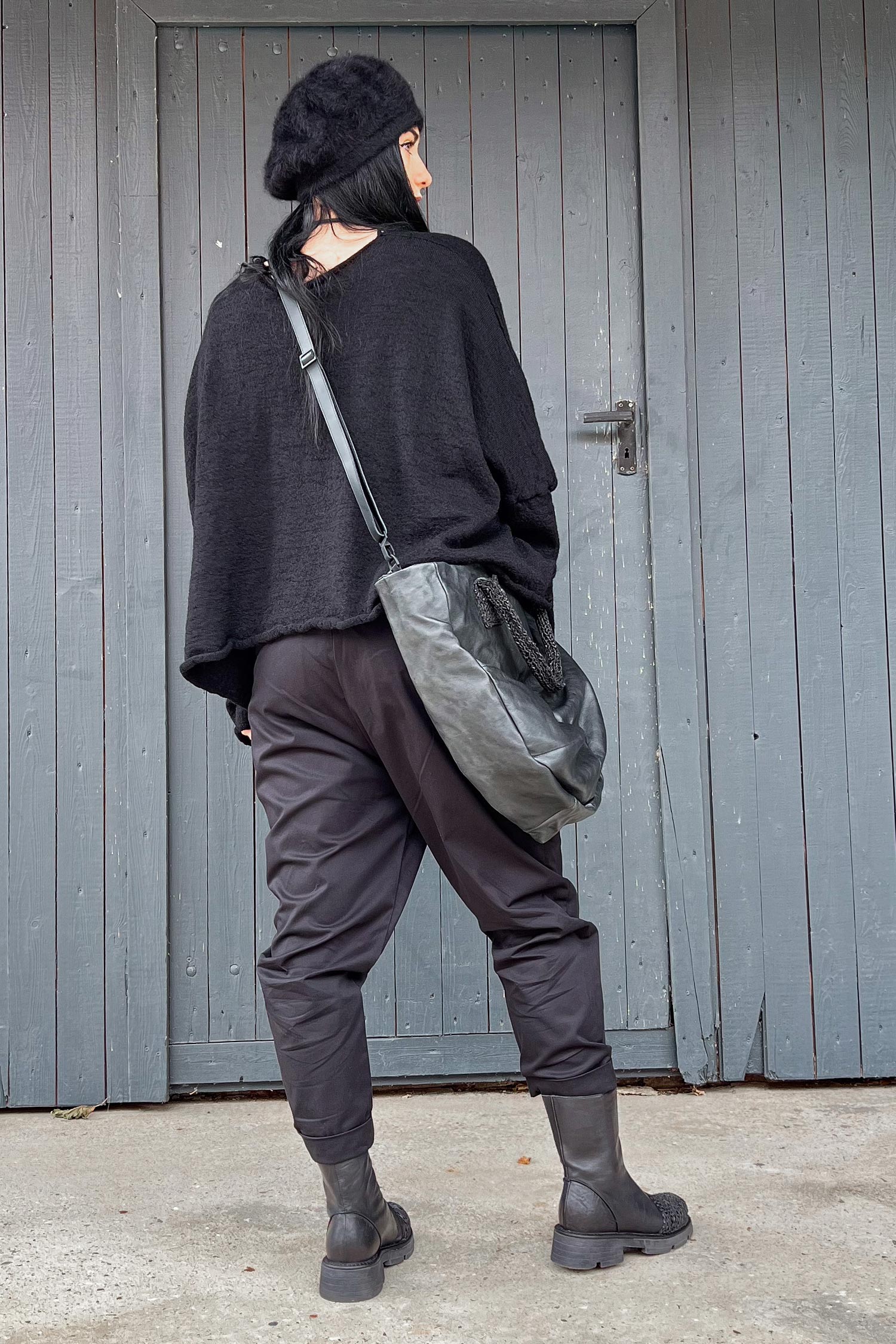 Tulpiger Rippstrickpullover - Schwarz - 040-SW-MEP