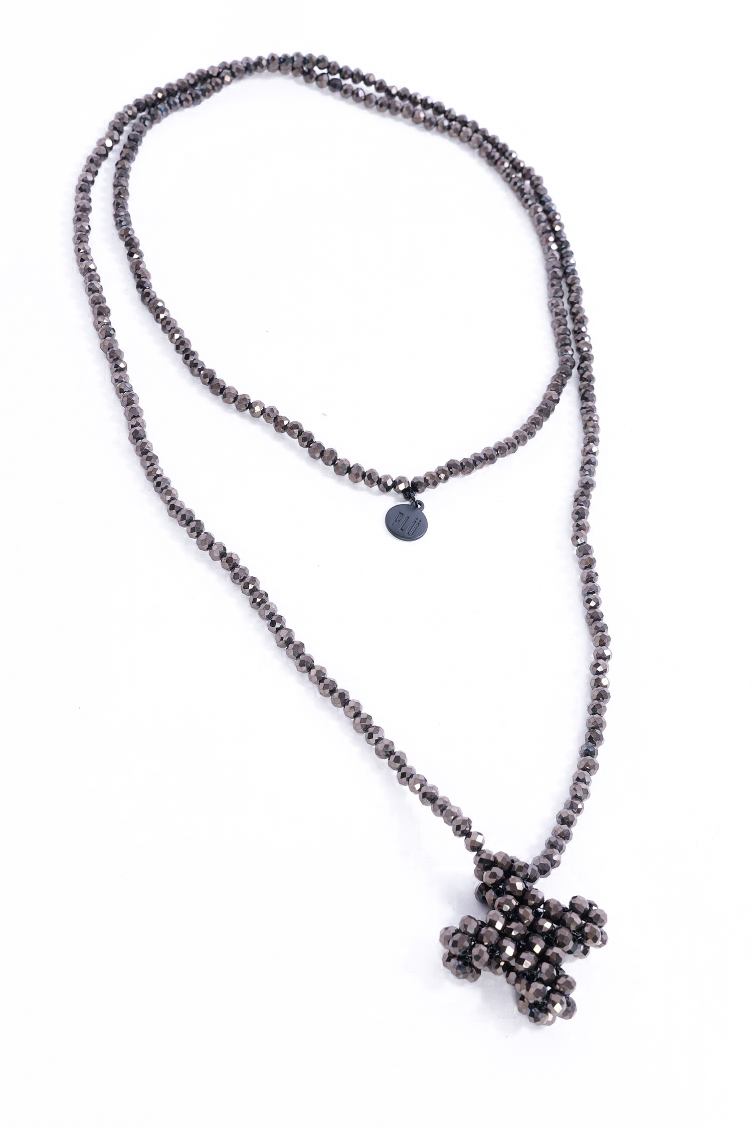Lange Kette mit einem Plus aus facettiertem Glas von Plü · Pluslavie.