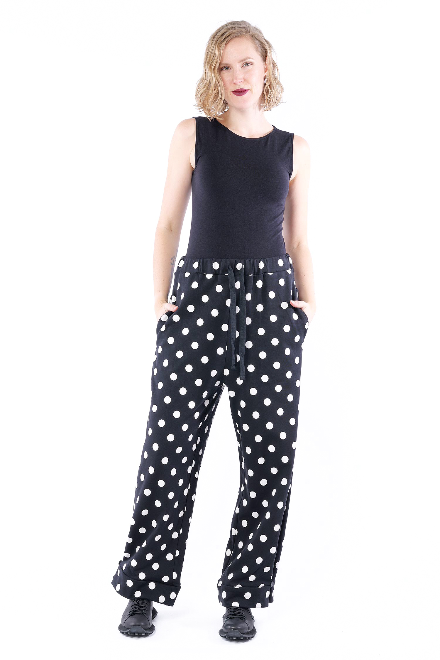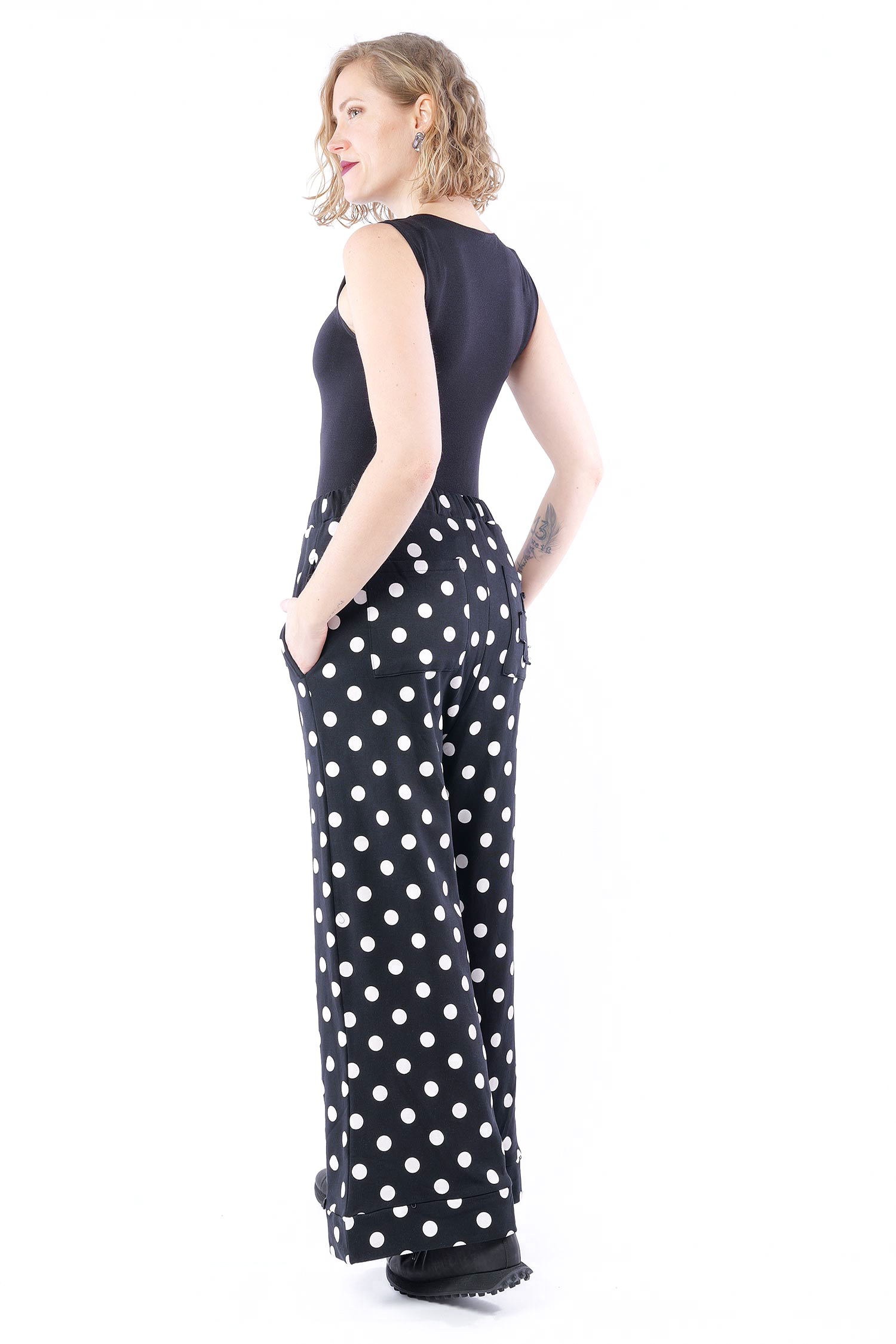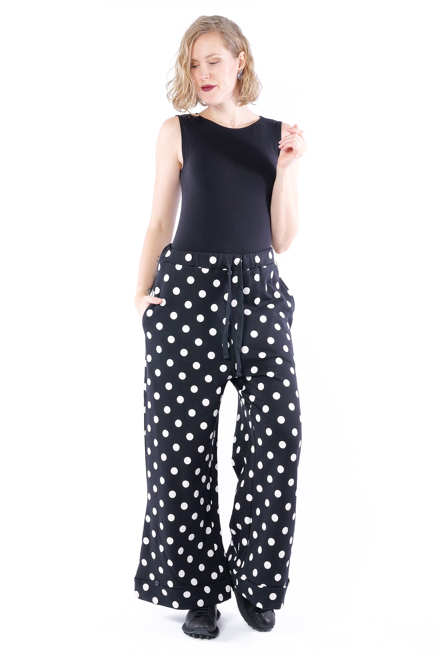Lange Sweathose - Black white dots - 10012