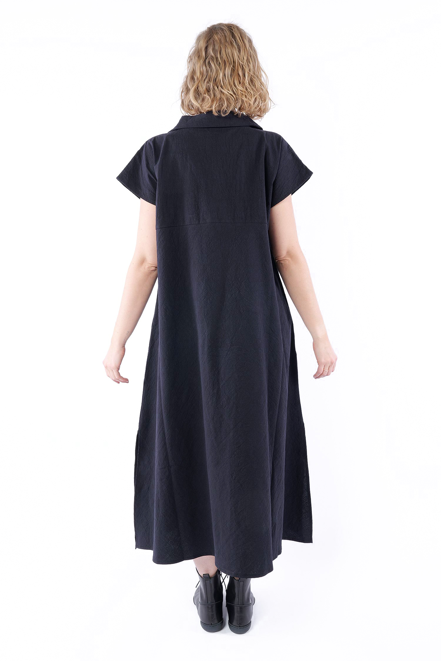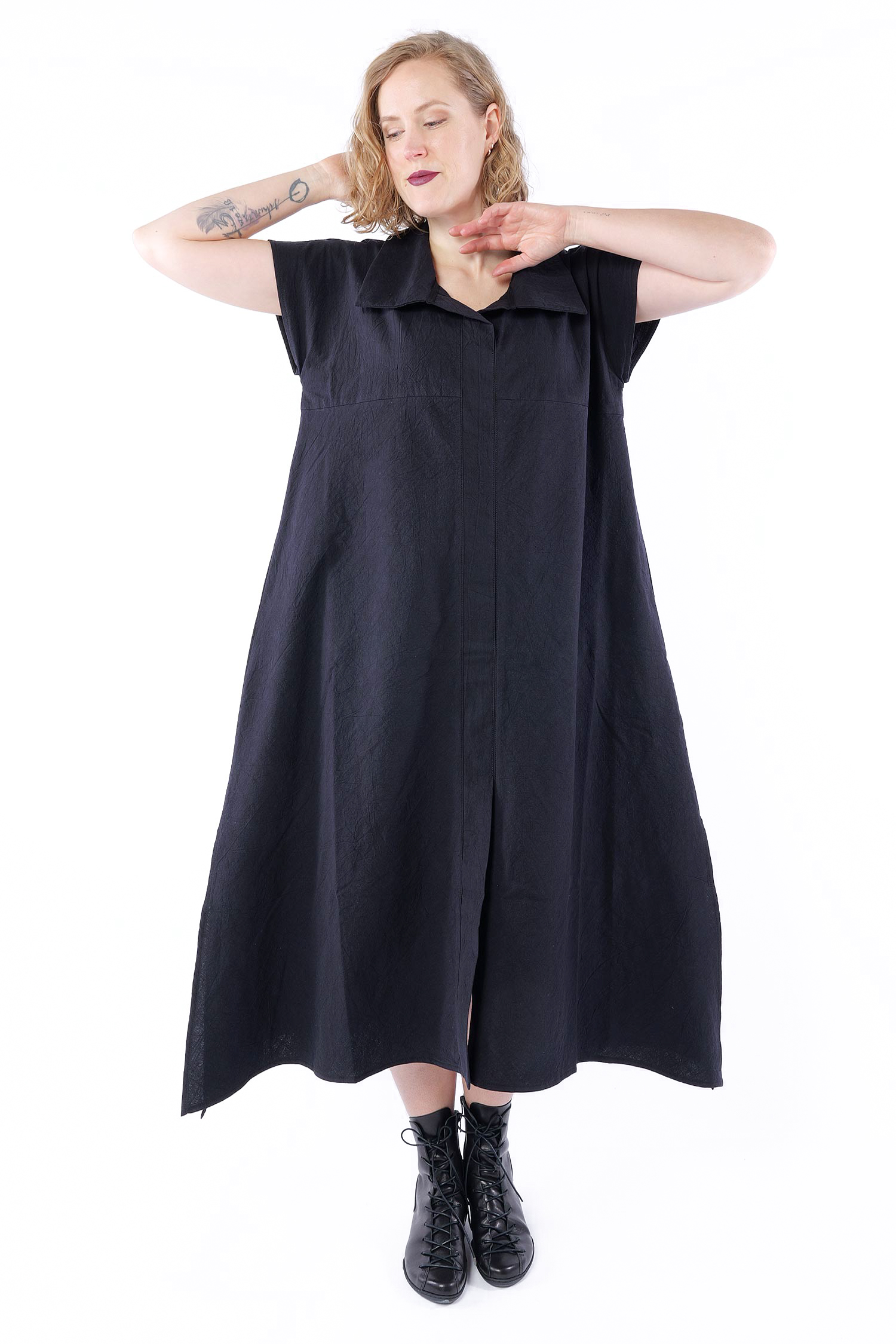 Details: - A Linie - Seitlich und vorne geschlitzt - Überschnittene Schulter, dadurch kleine Ärmel - Poloausschnitt mit großem Kragen - Kanten versäubert - Strukturiertes Material