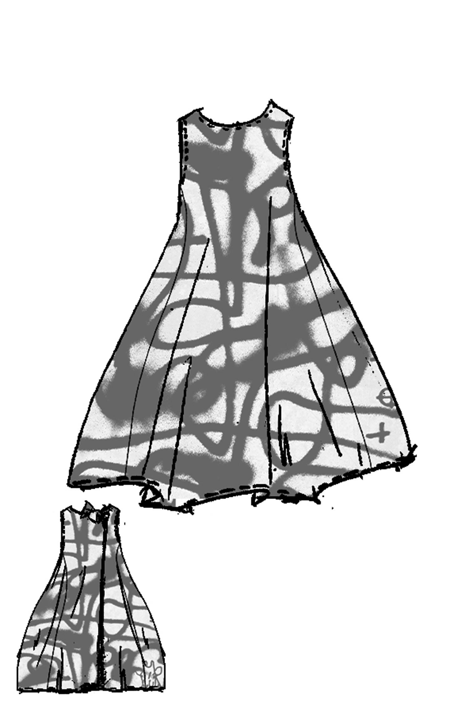 Details: - Semitransparent - Rundhalsausschnitt - Hinten zwei Bänder, können geknotet werden - Breite Träger - A-Linie - Eingrifftaschen vorne seitlich - Allover Print, jeder Print ein Unikat