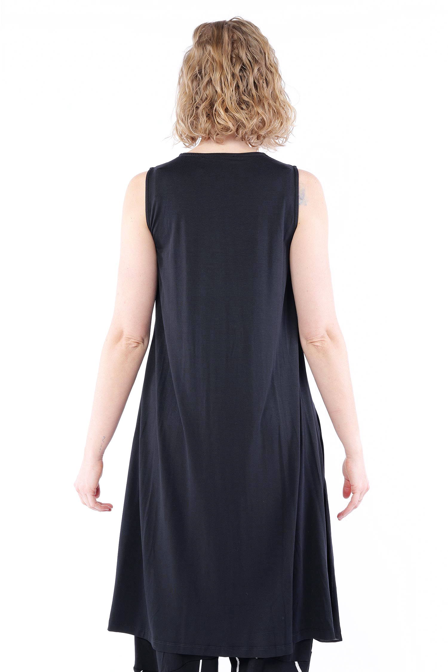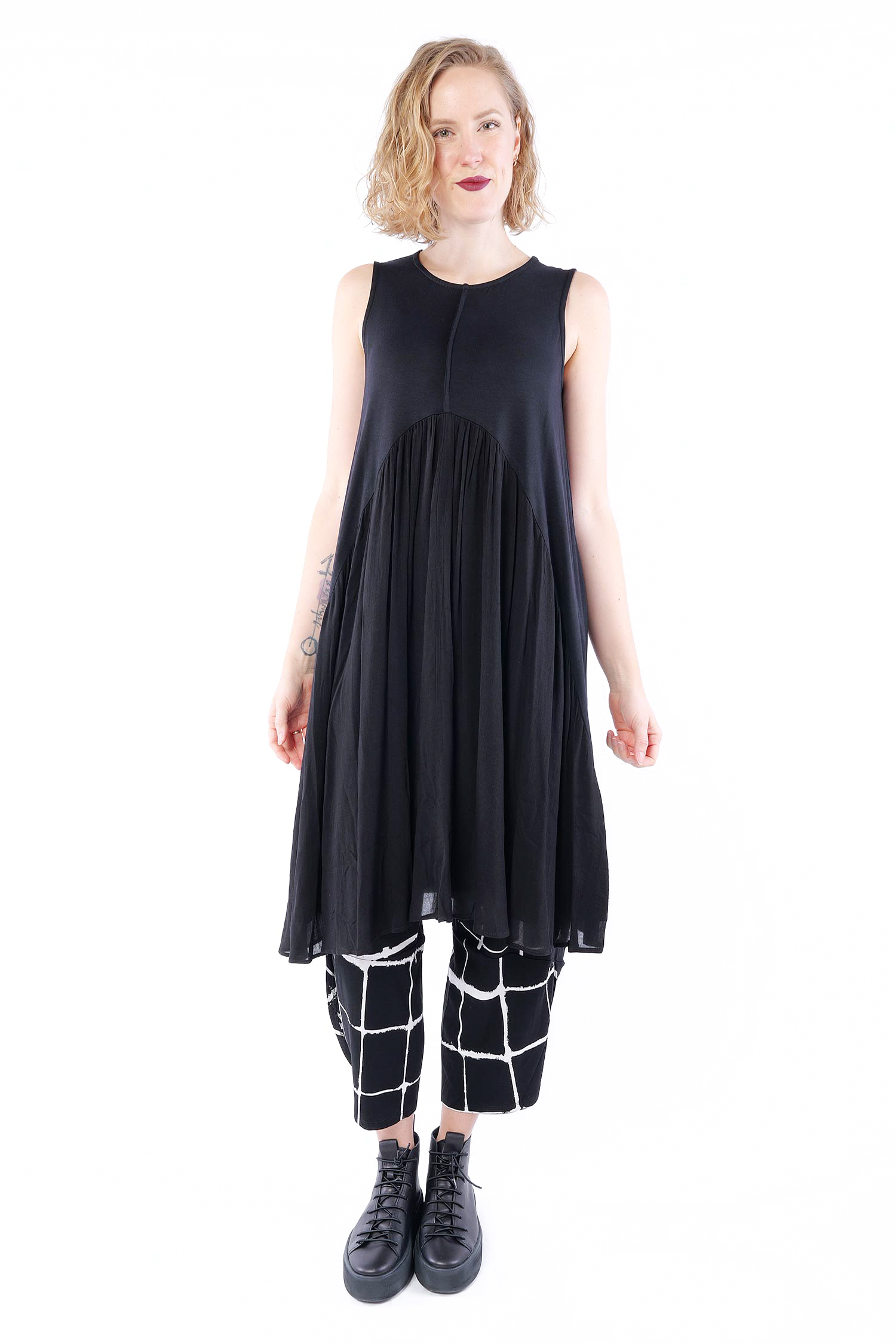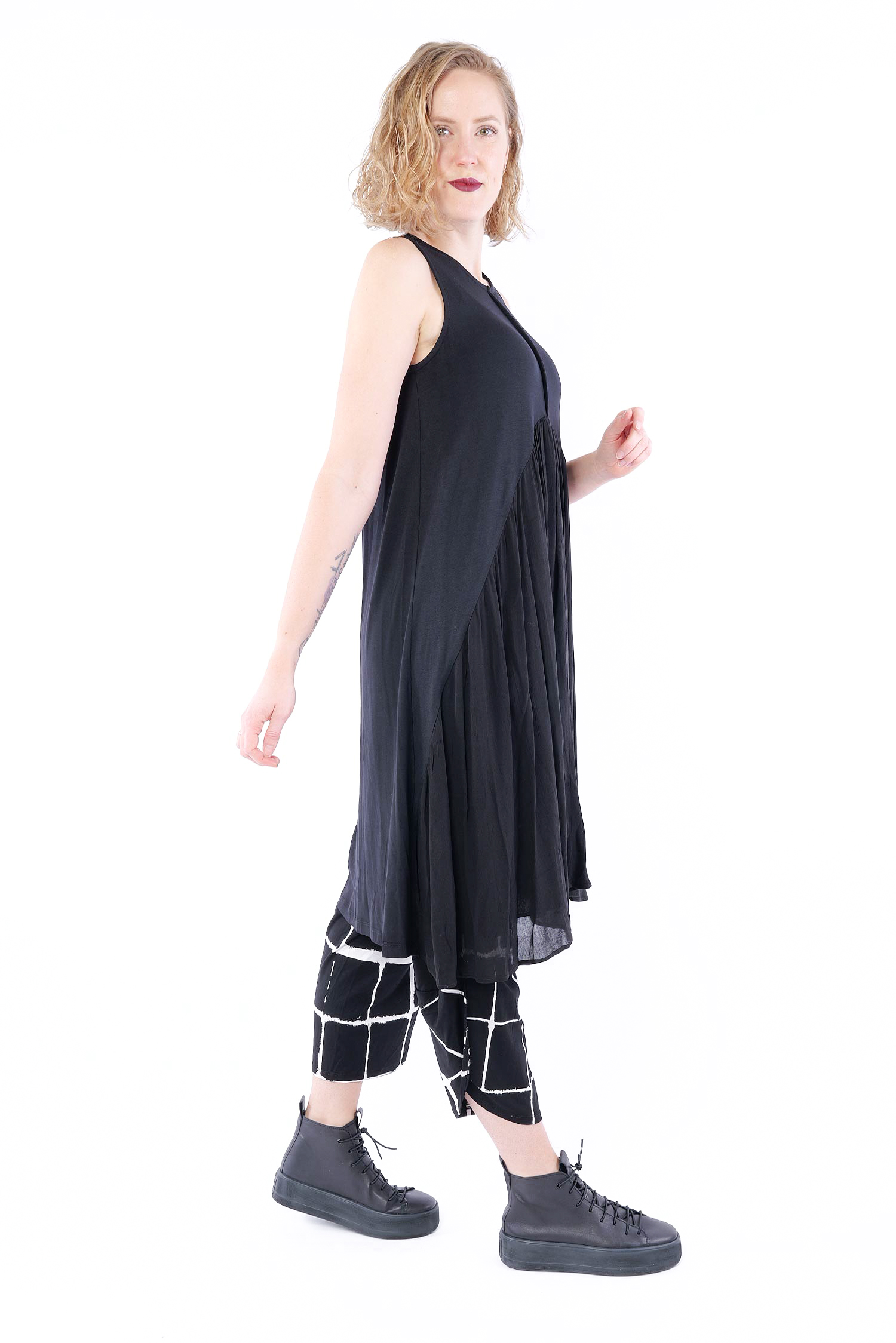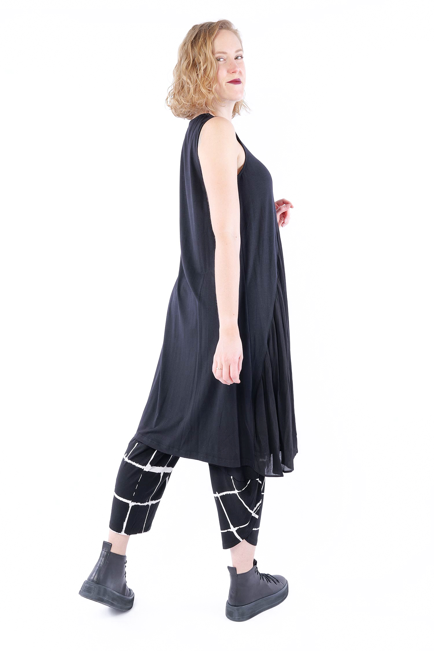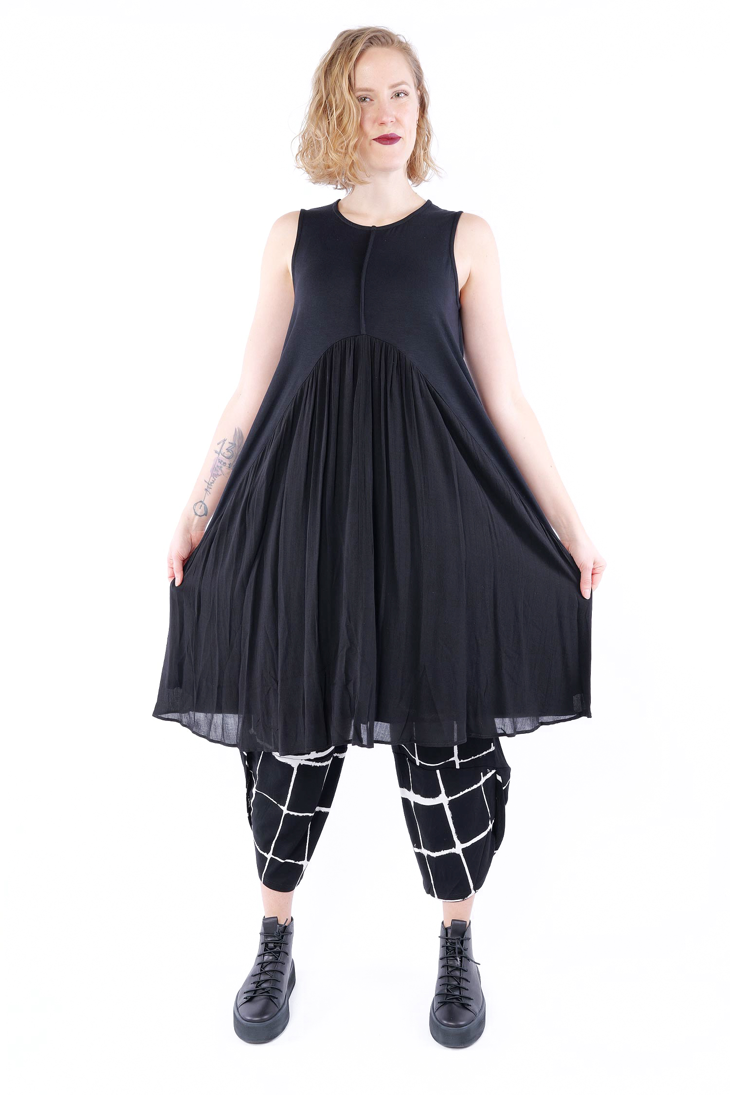Details: - Ohne Ärmel - Ziernaht vorne mittig nach außen - Breite Träger - A-Linie - Rundhalsausschnitt - T-Shirt Jersey oben und hinten - Versäuberte Kanten - Vorne doppellagige Viskose, gerüscht ab Brustbereich angesetzt