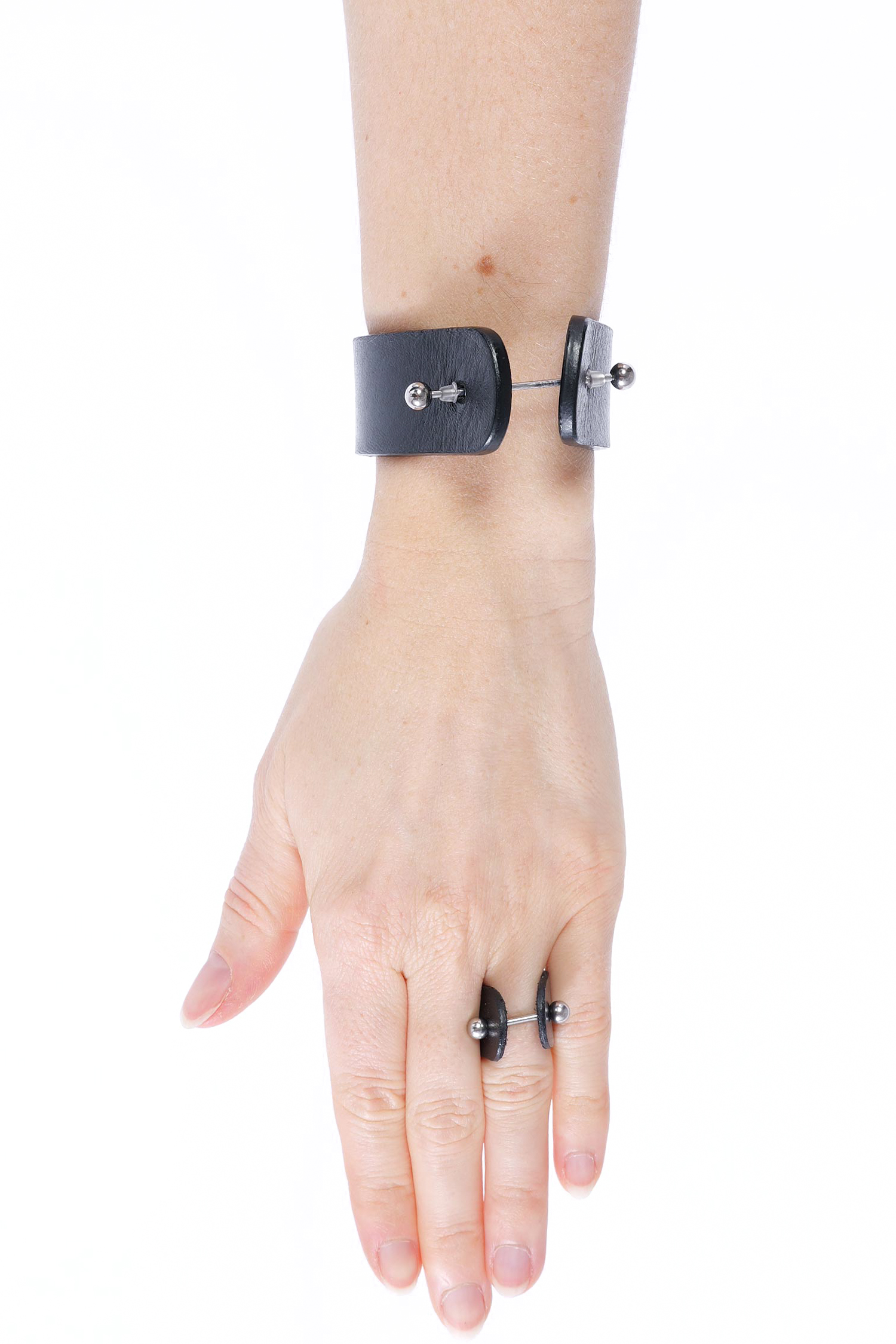 Lederarmband mit dekorativem Piercing von Skin Machine.
