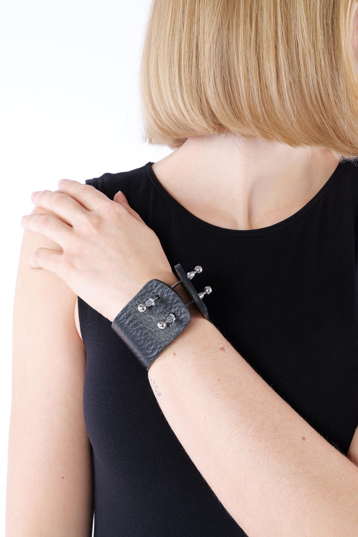 Lederarmband mit dekorativen Piercings von Skin Machine.