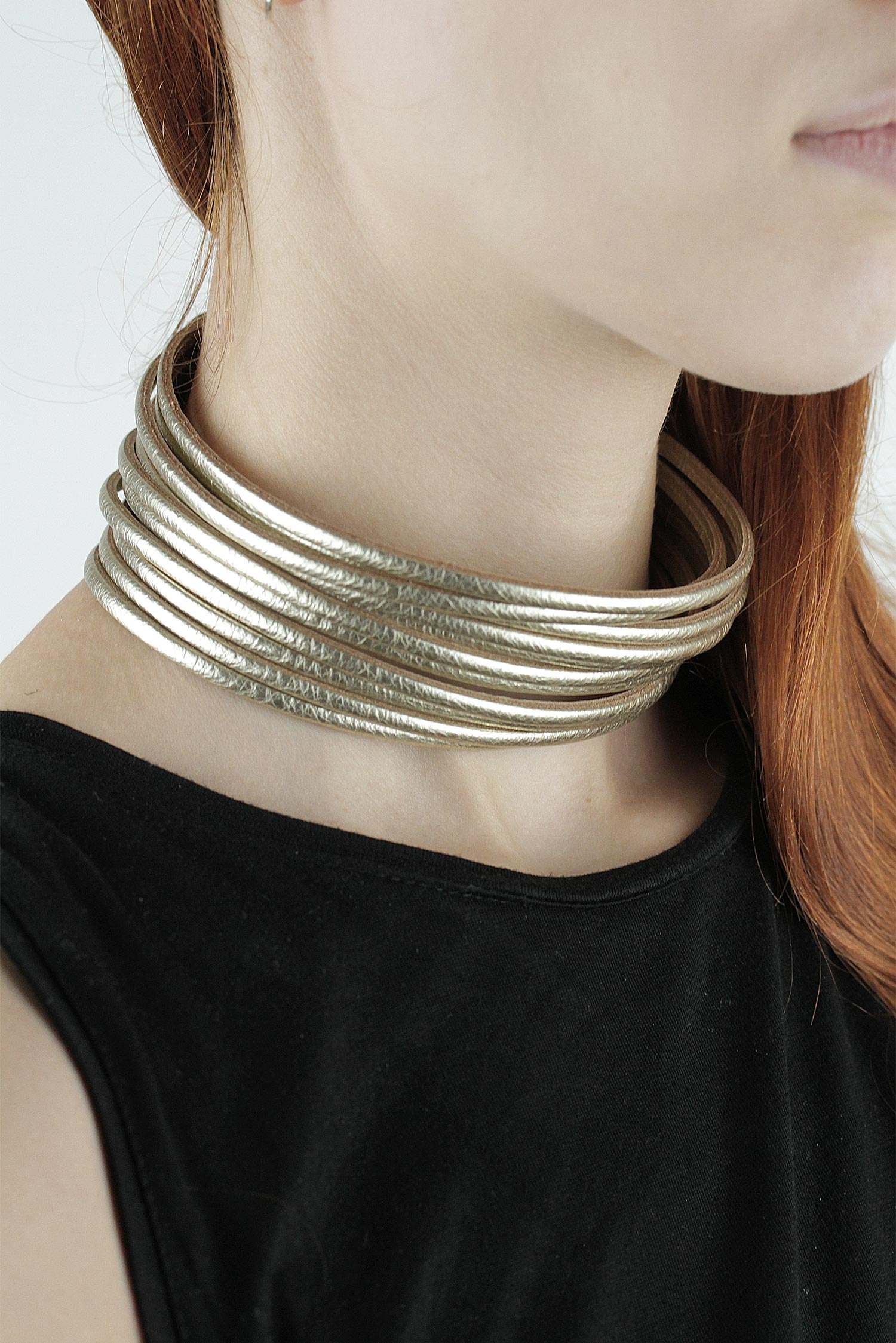 Leder Halskette - Choker - platin