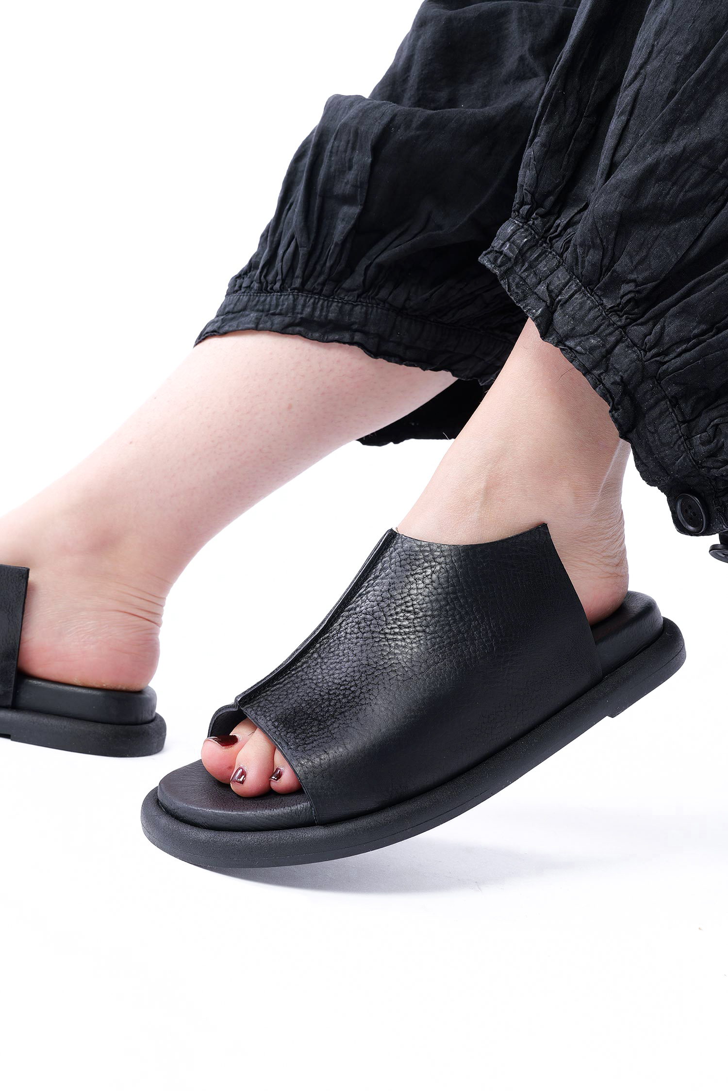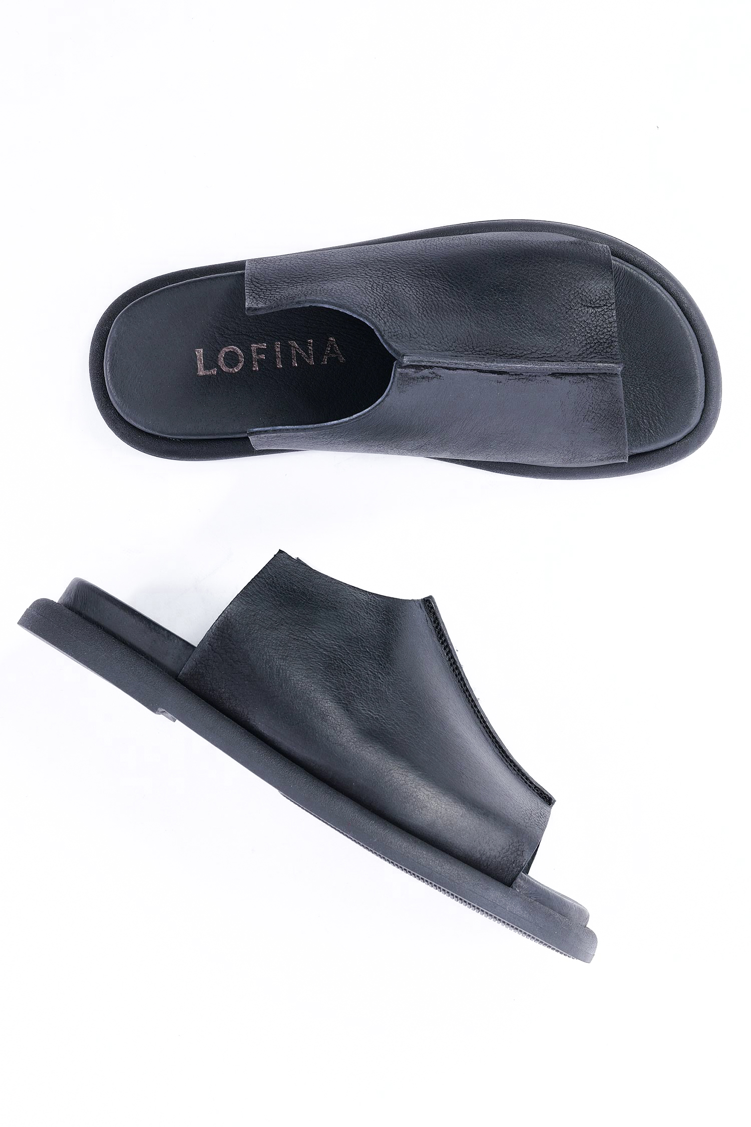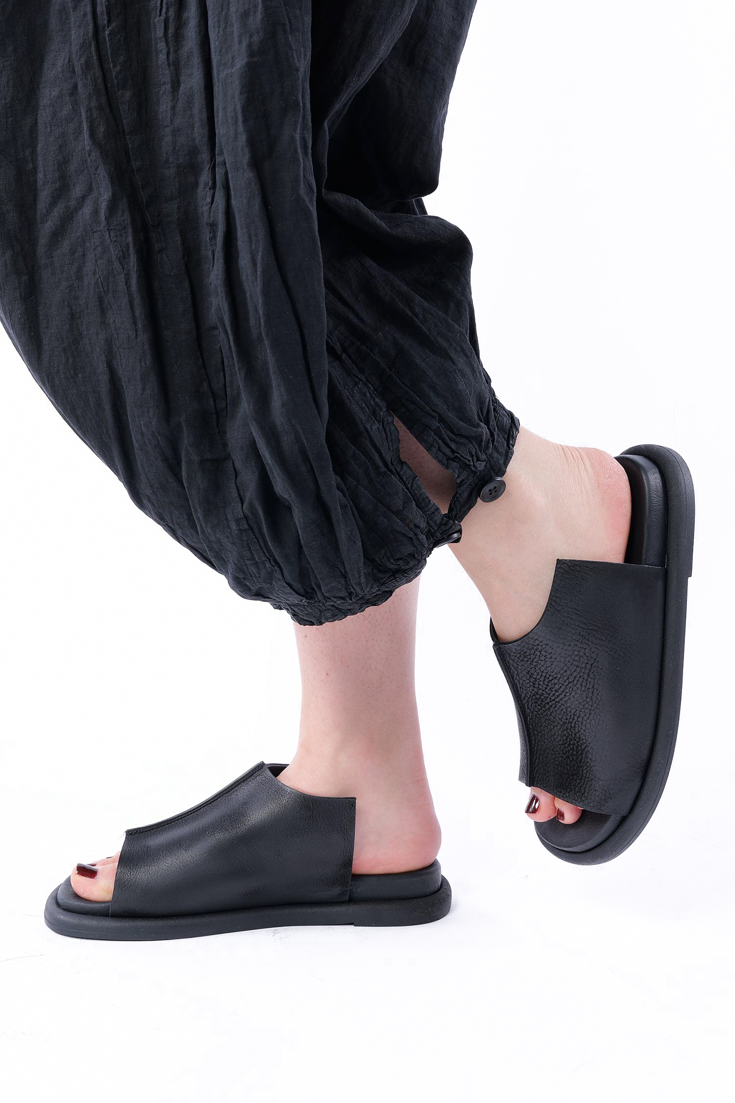 Leder Pantolette - Schwarz - 7201