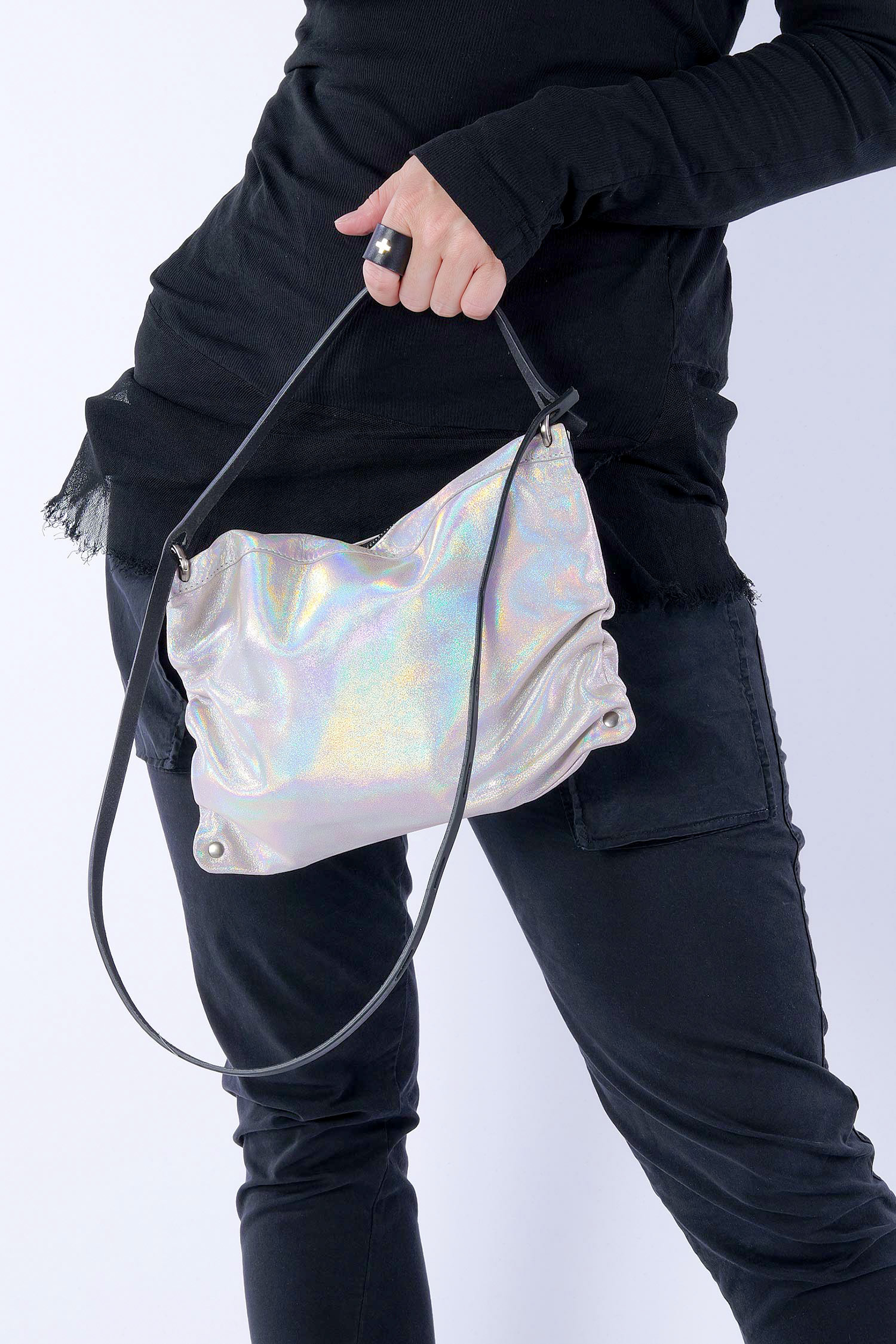 - Faltige Optik – Tasche kann auch glatt getragen werden