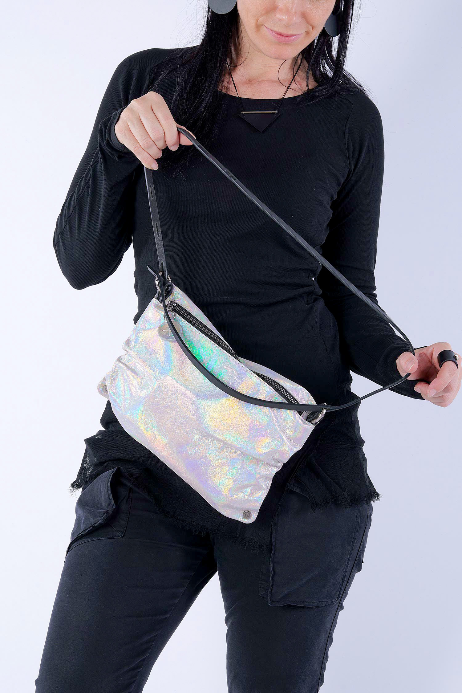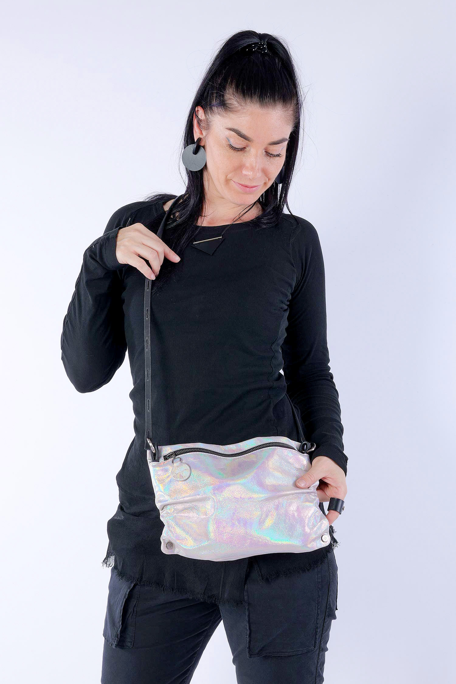 - Unterschiedliche Tragemöglichkeiten: Bauchtasche / Clutch