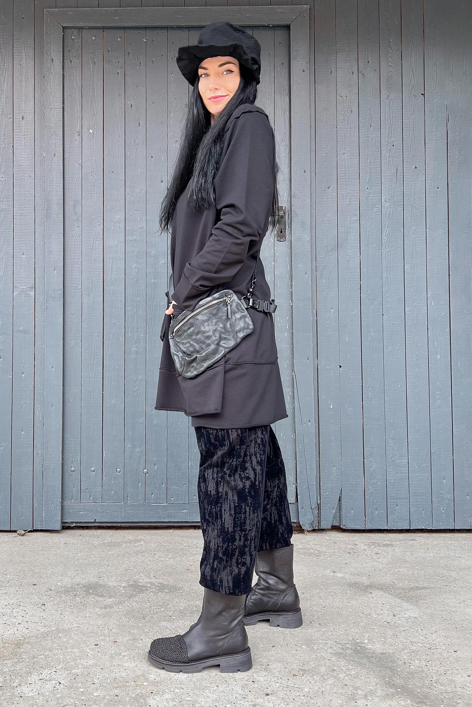 Details: - Diverse Tragemöglichkeiten - Lederband und Textilband - Metallschnallen - Sicherheitsverschluss - Handgefertigt - Knittriges Leder - Kann um den Bauch gebunden werden, für extra guten Sitz