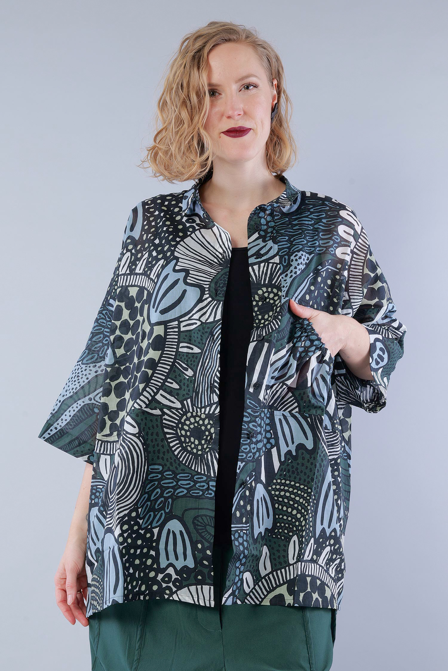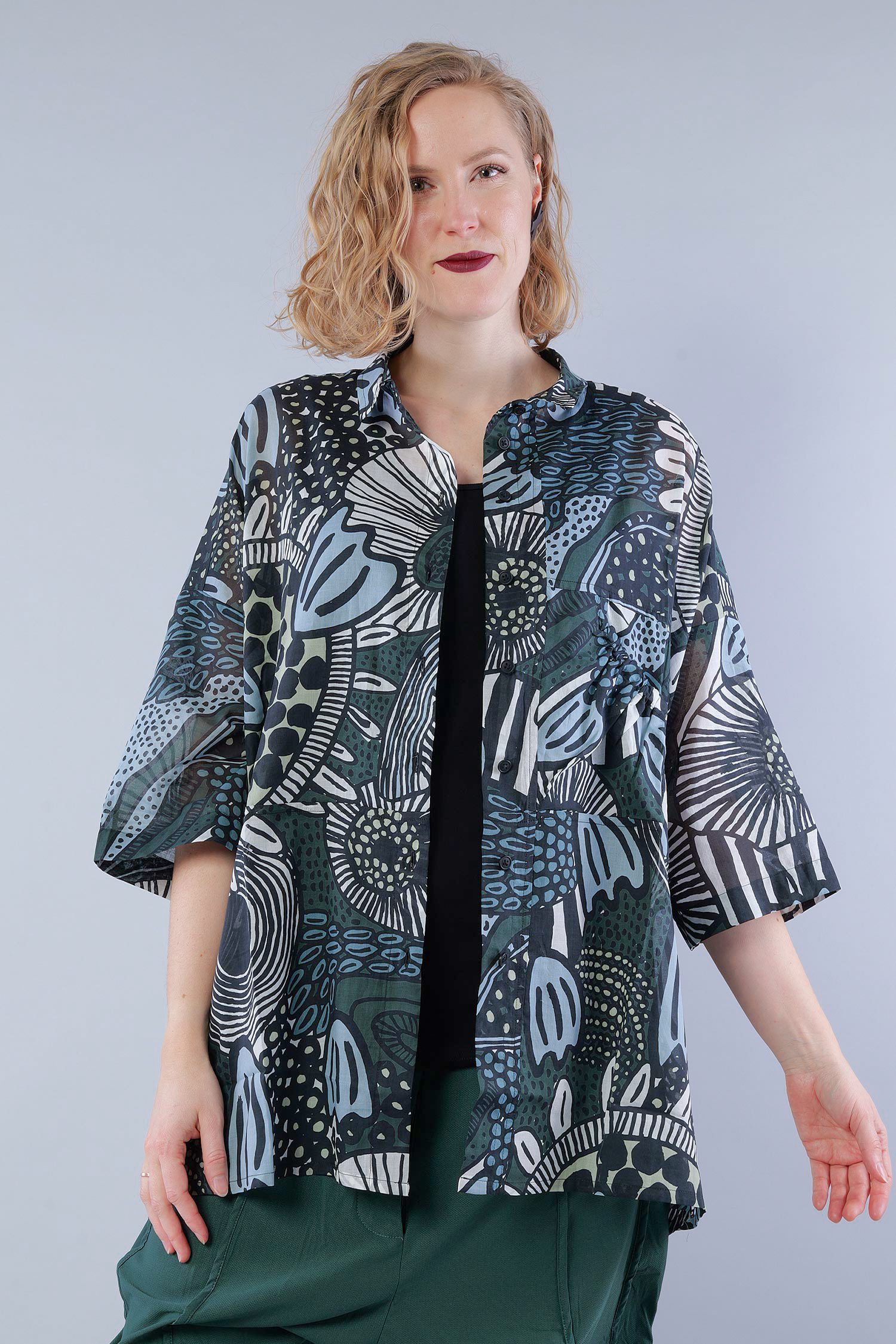 / 101cm (Brust / Taille / Hüfte) und sie ist 170cm groß. Sie trägt immer die
