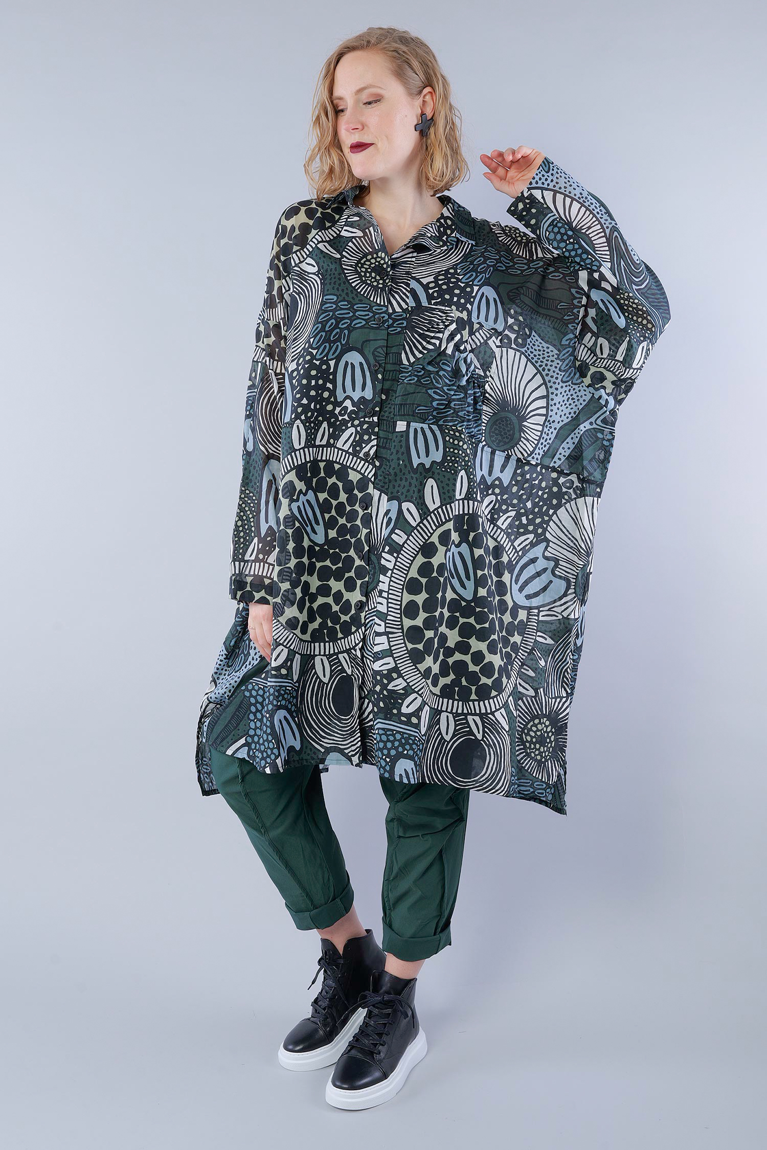/ 101cm (Brust / Taille / Hüfte) und sie ist 170cm groß. Sie trägt immer die