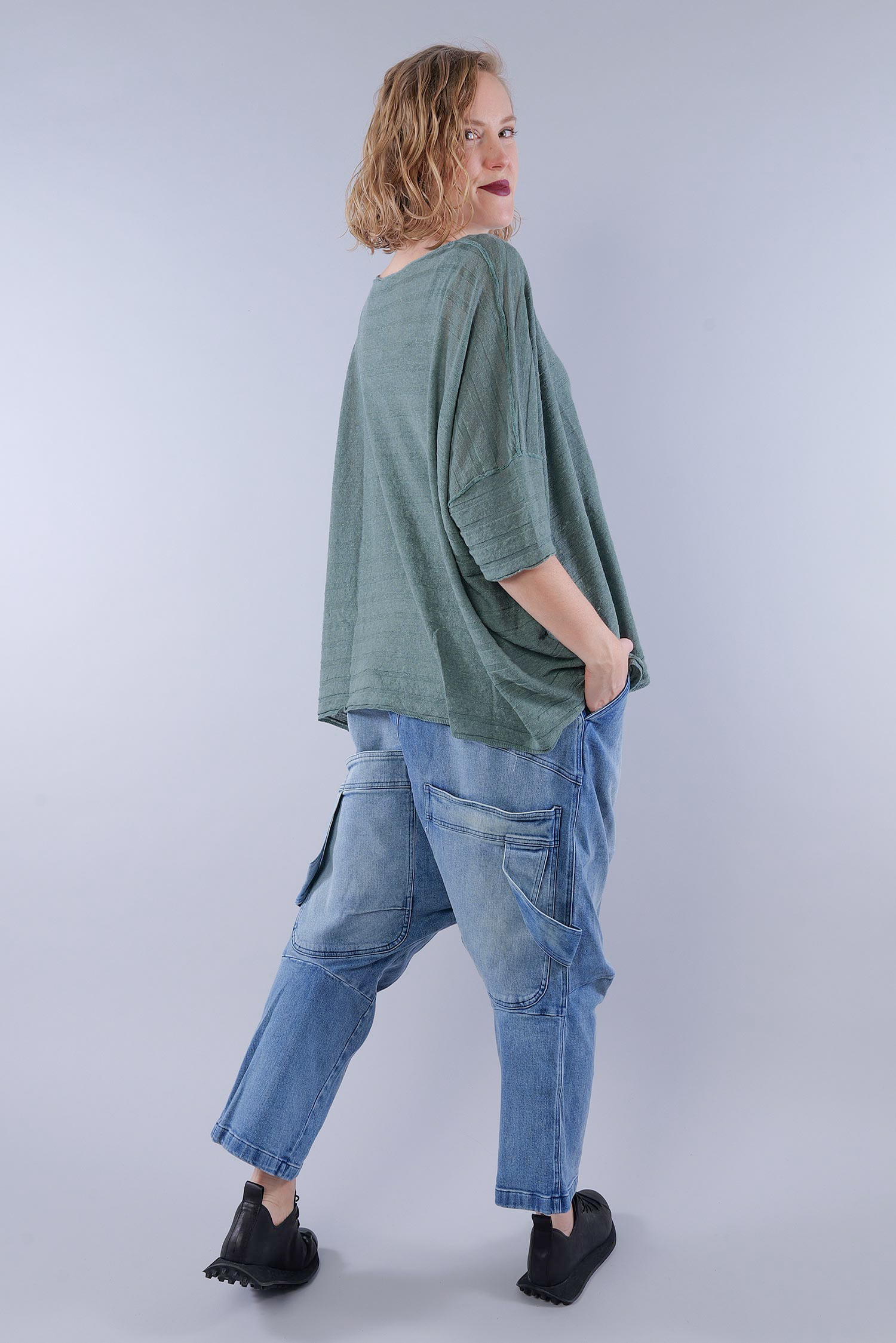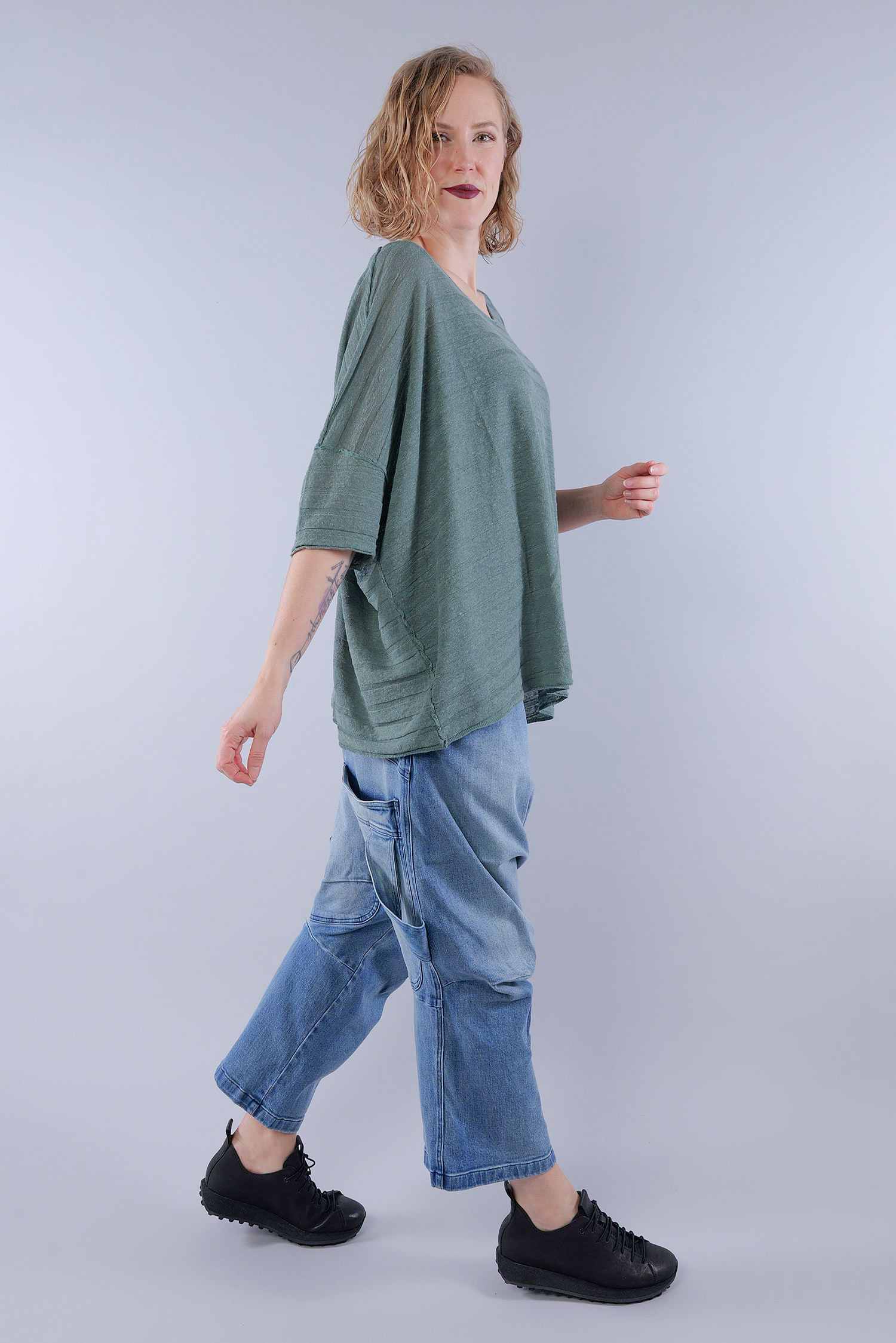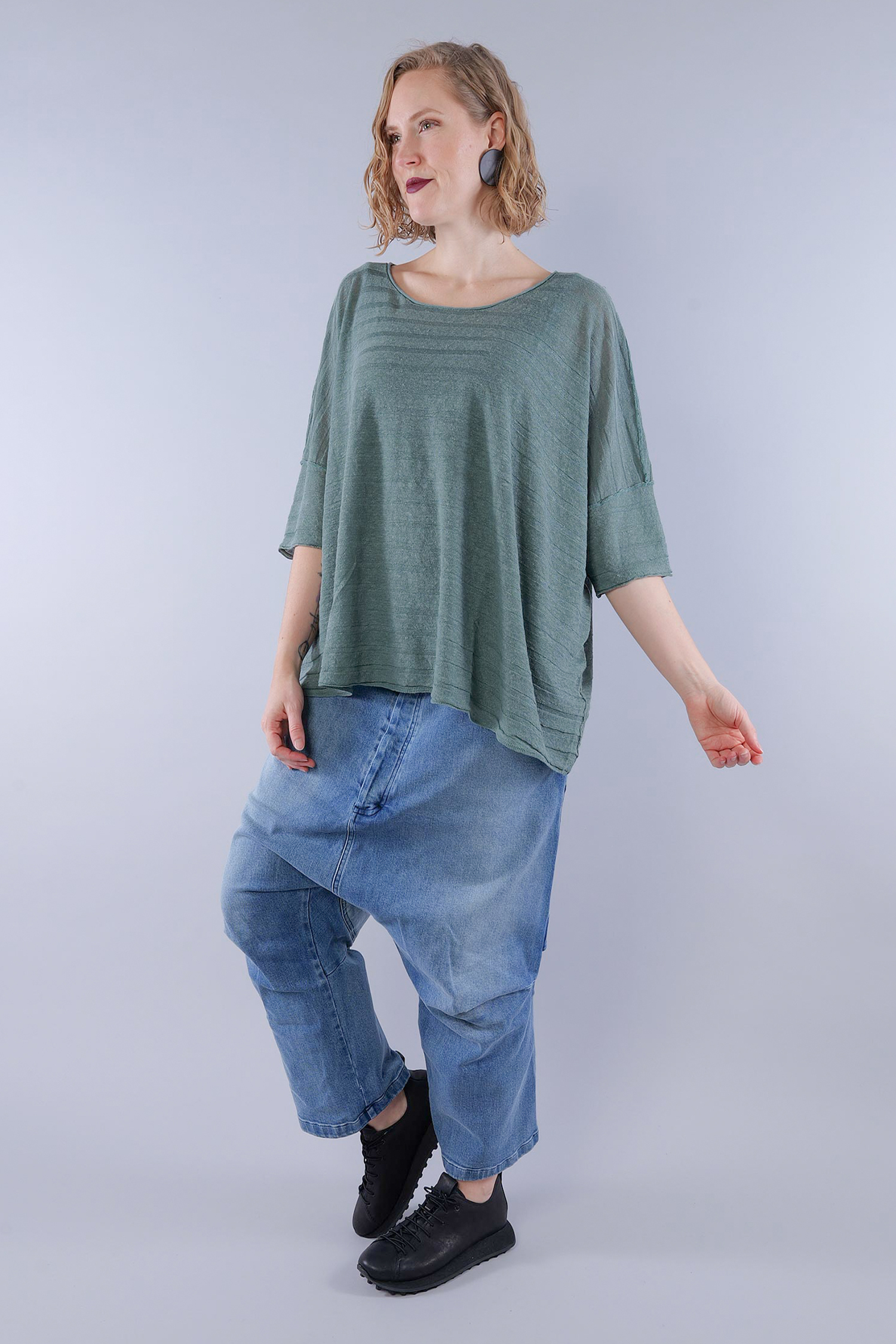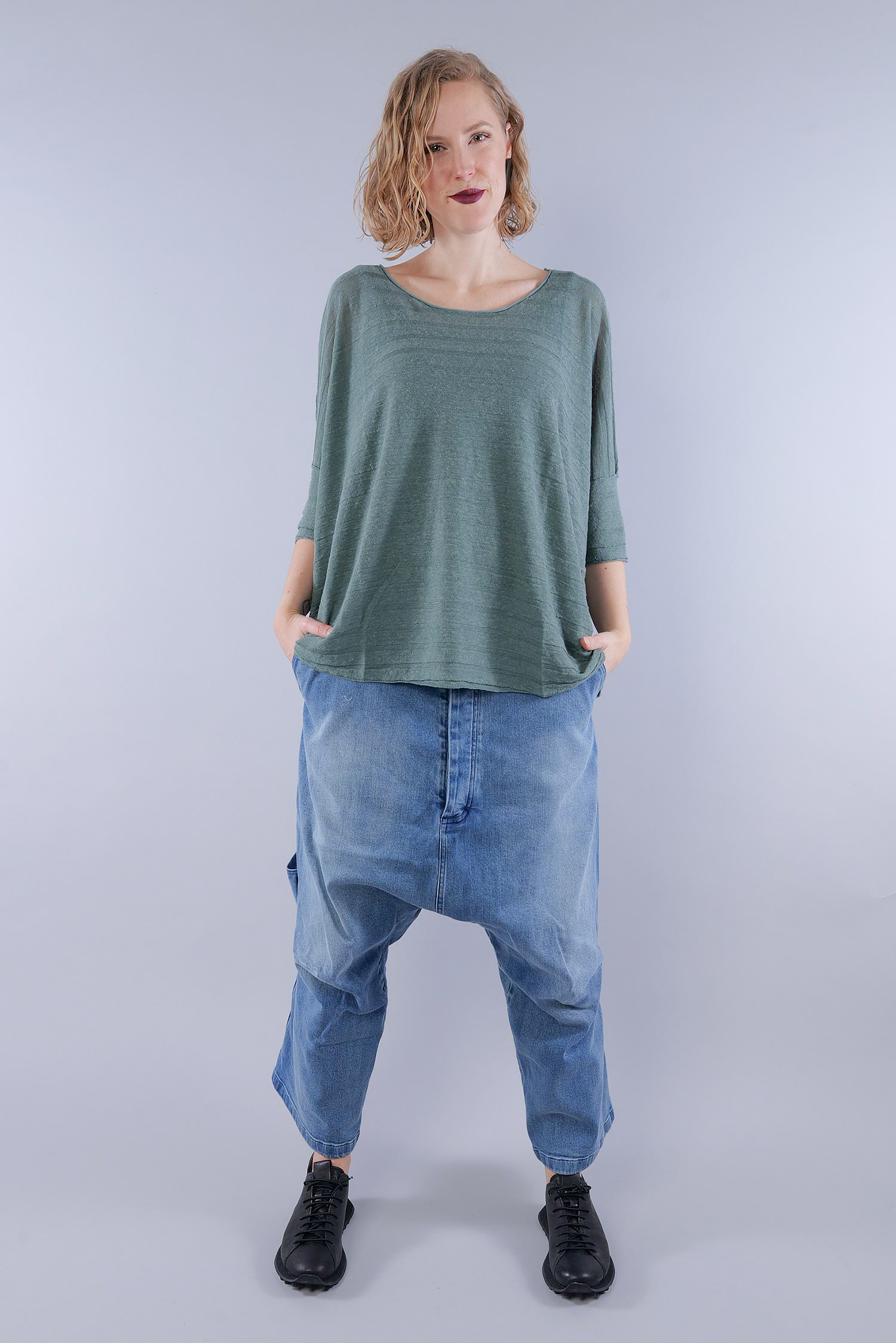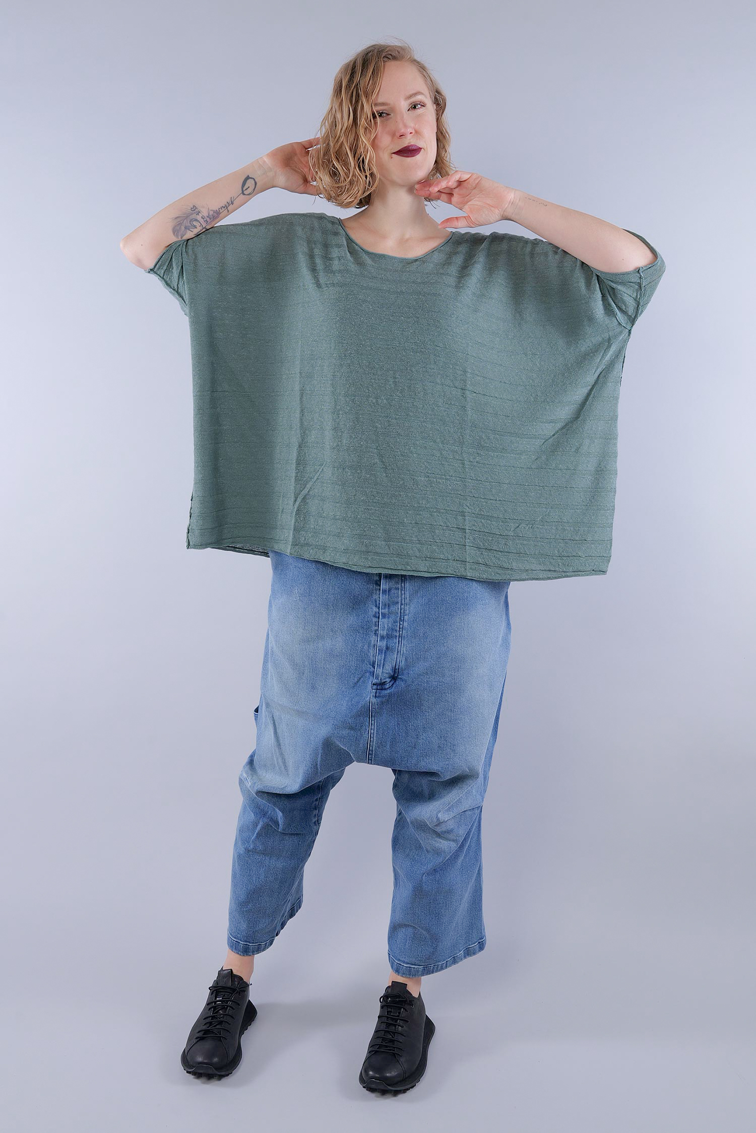 Leinen T-Shirt mit eingestrickten Streifen von Rundholz Black Label.