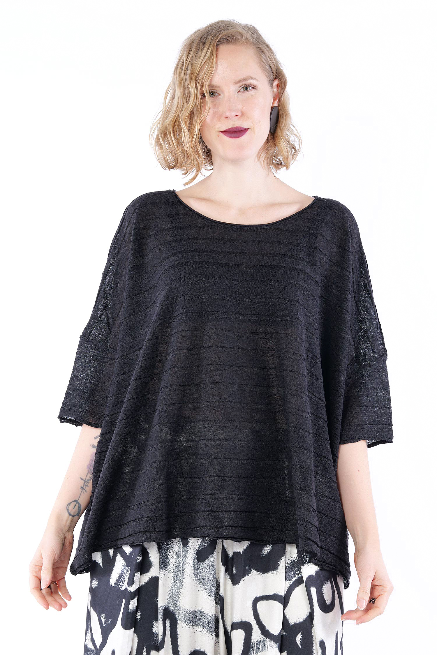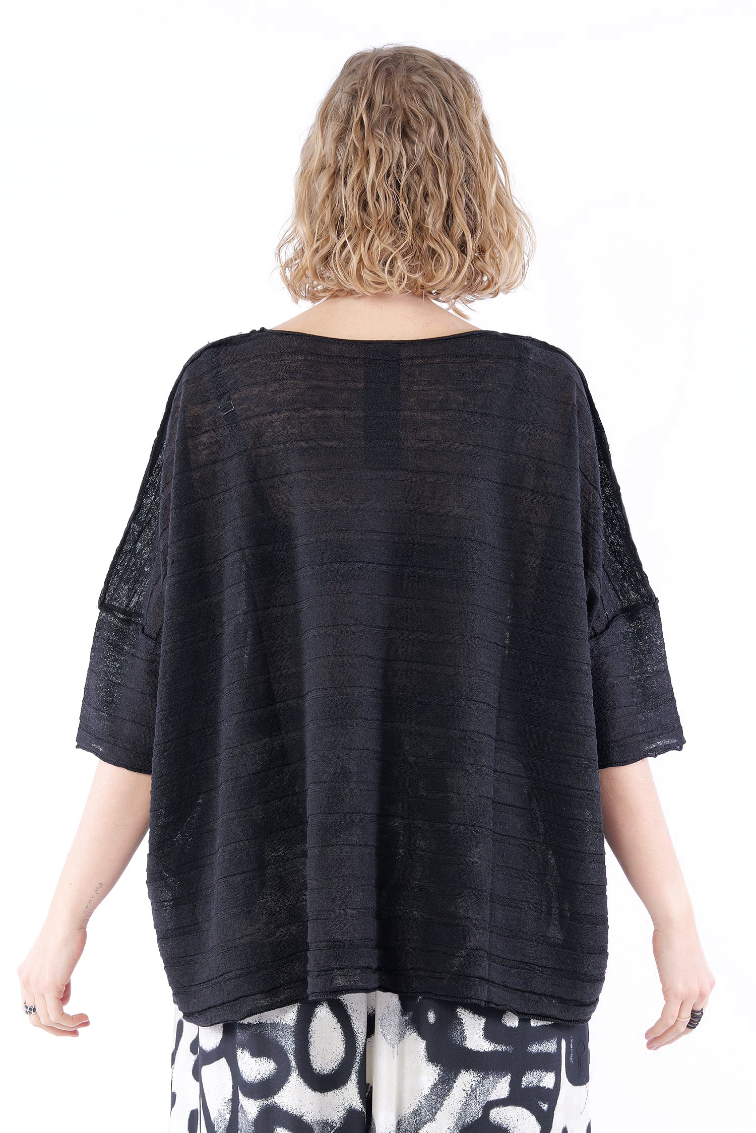 Leinen T-Shirt mit eingestrickten Streifen von Rundholz Black Label.