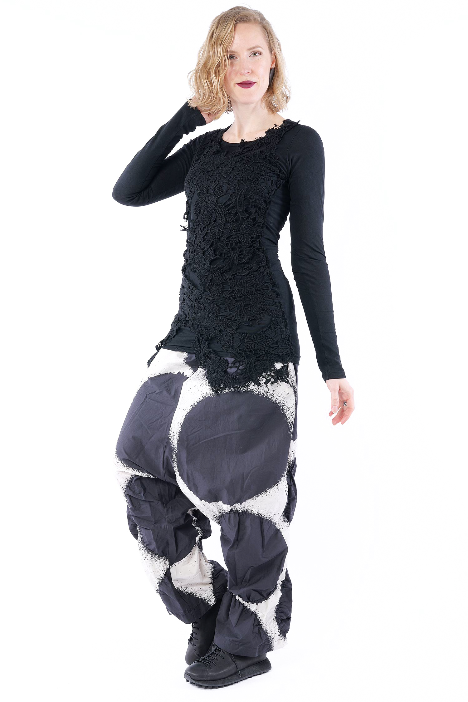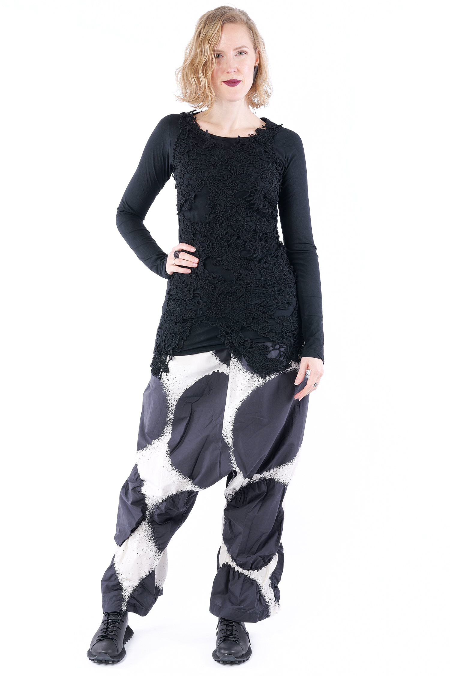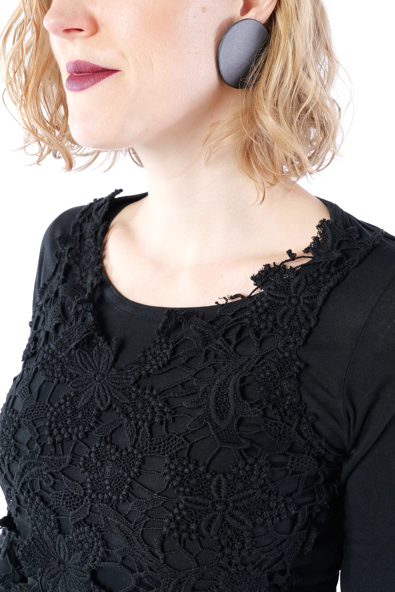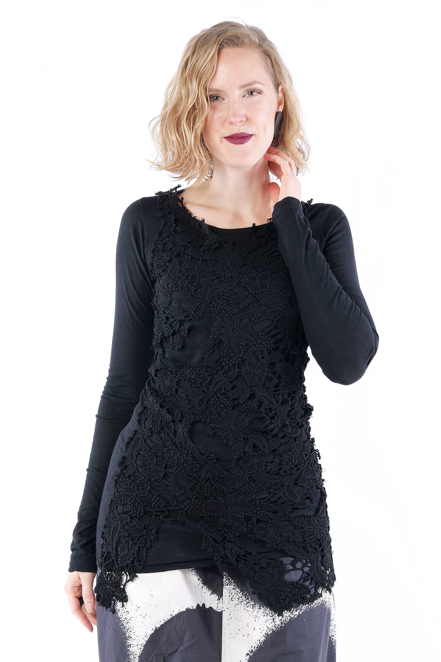 Longsleeve, vorne mit Spitzenbesatz von Rundholz Dip.