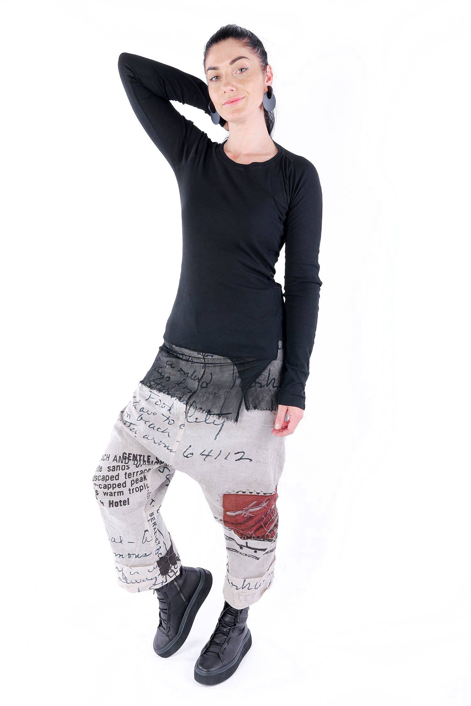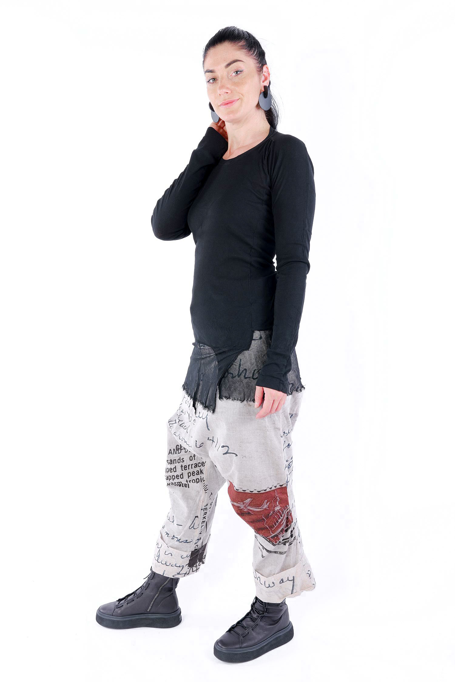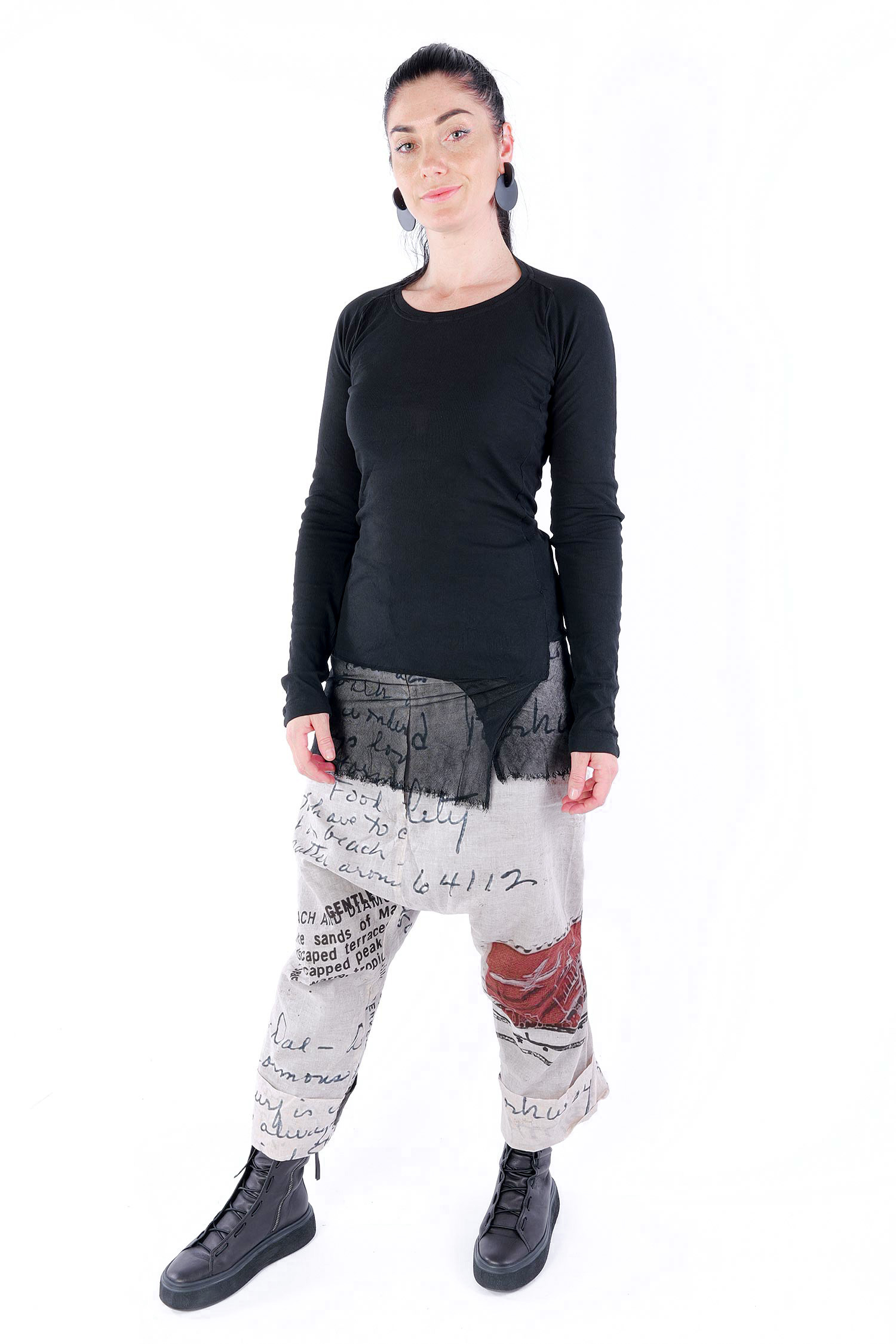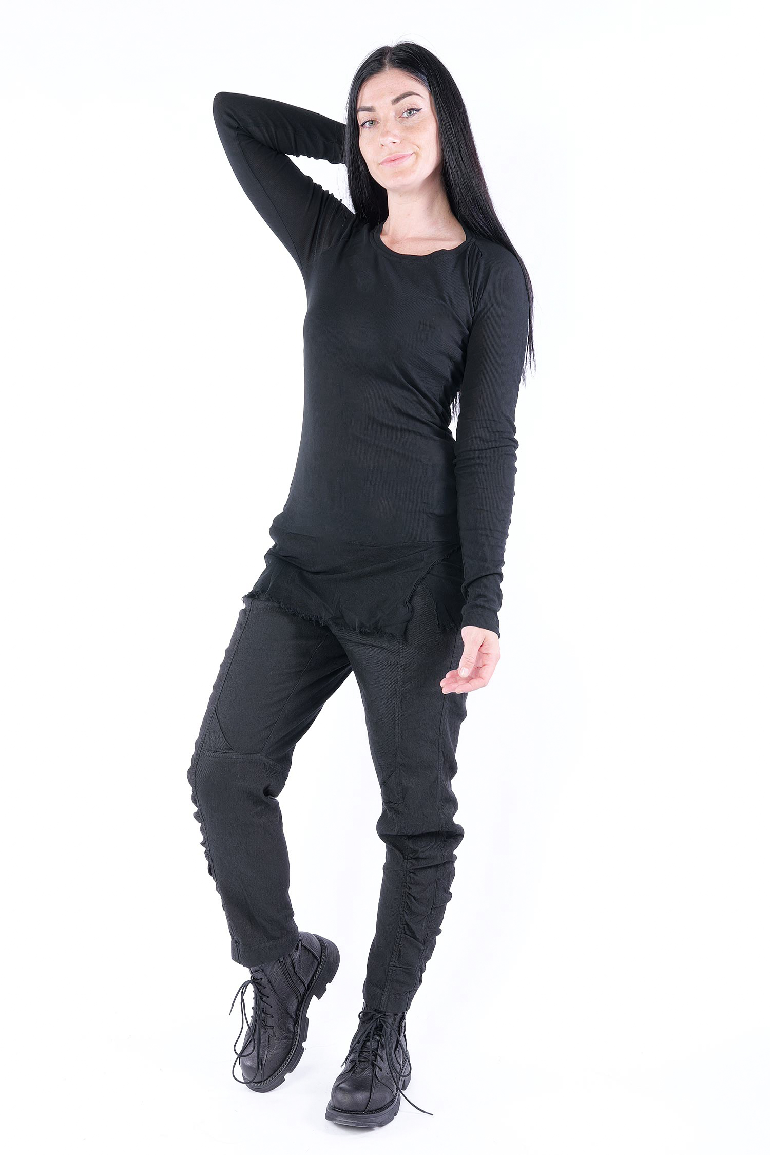 Details: - Dünnes Rippjersey - Tüll mit fransigen Kanten am Saum - Lange Ärmel - Schmaler Schnitt - Rundhalsausschnitt - Kanten beim Jersey versäubert