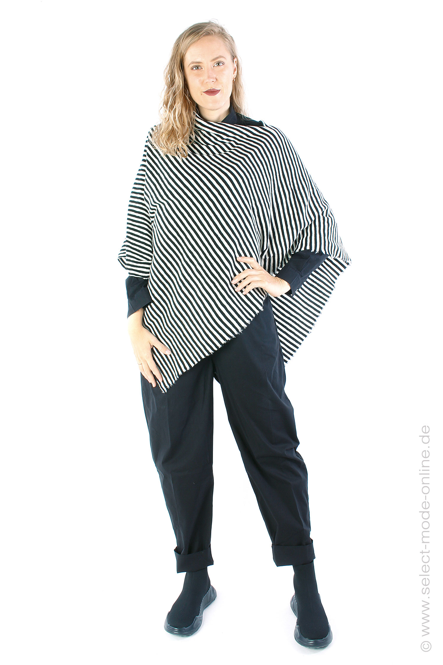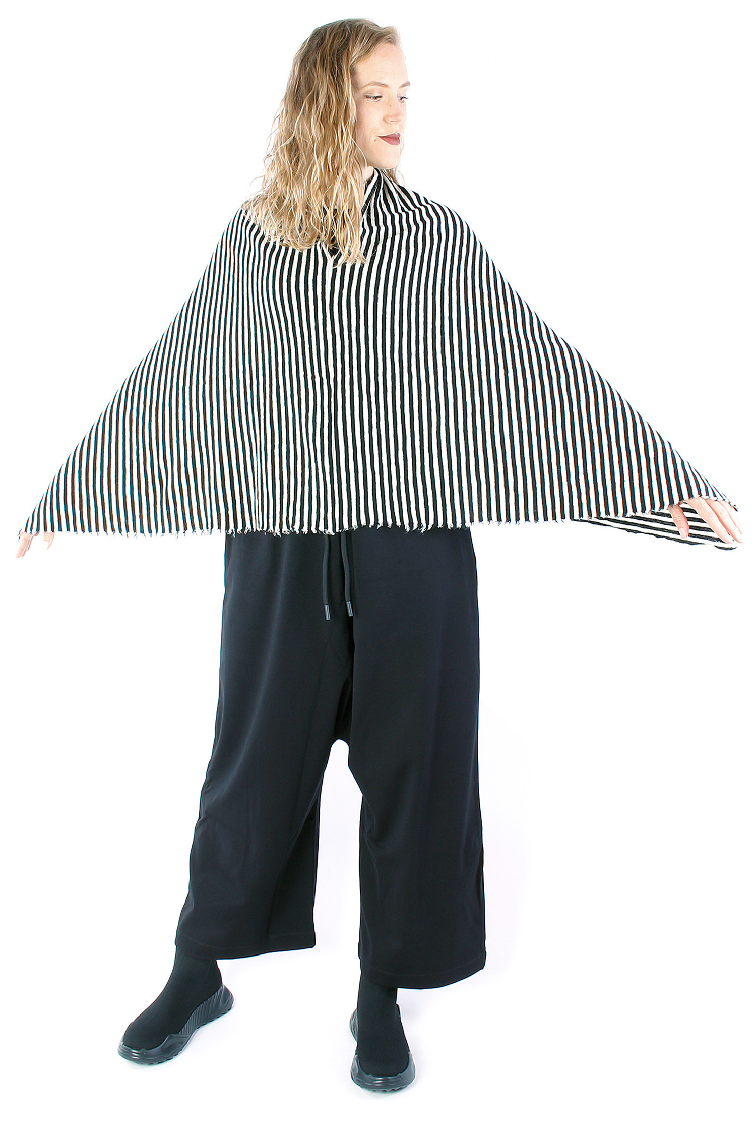 Merino Poncho - White-Black - 1001