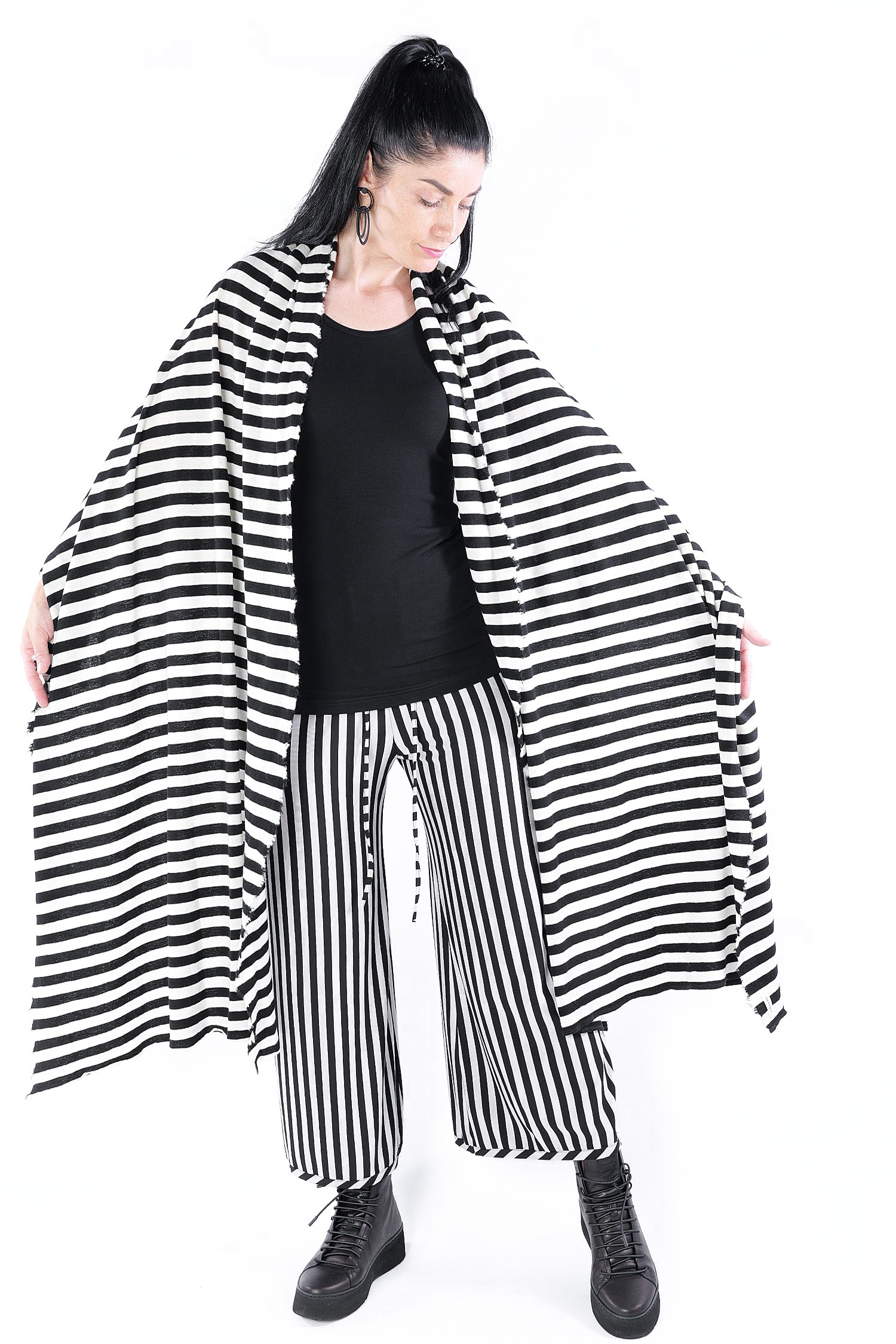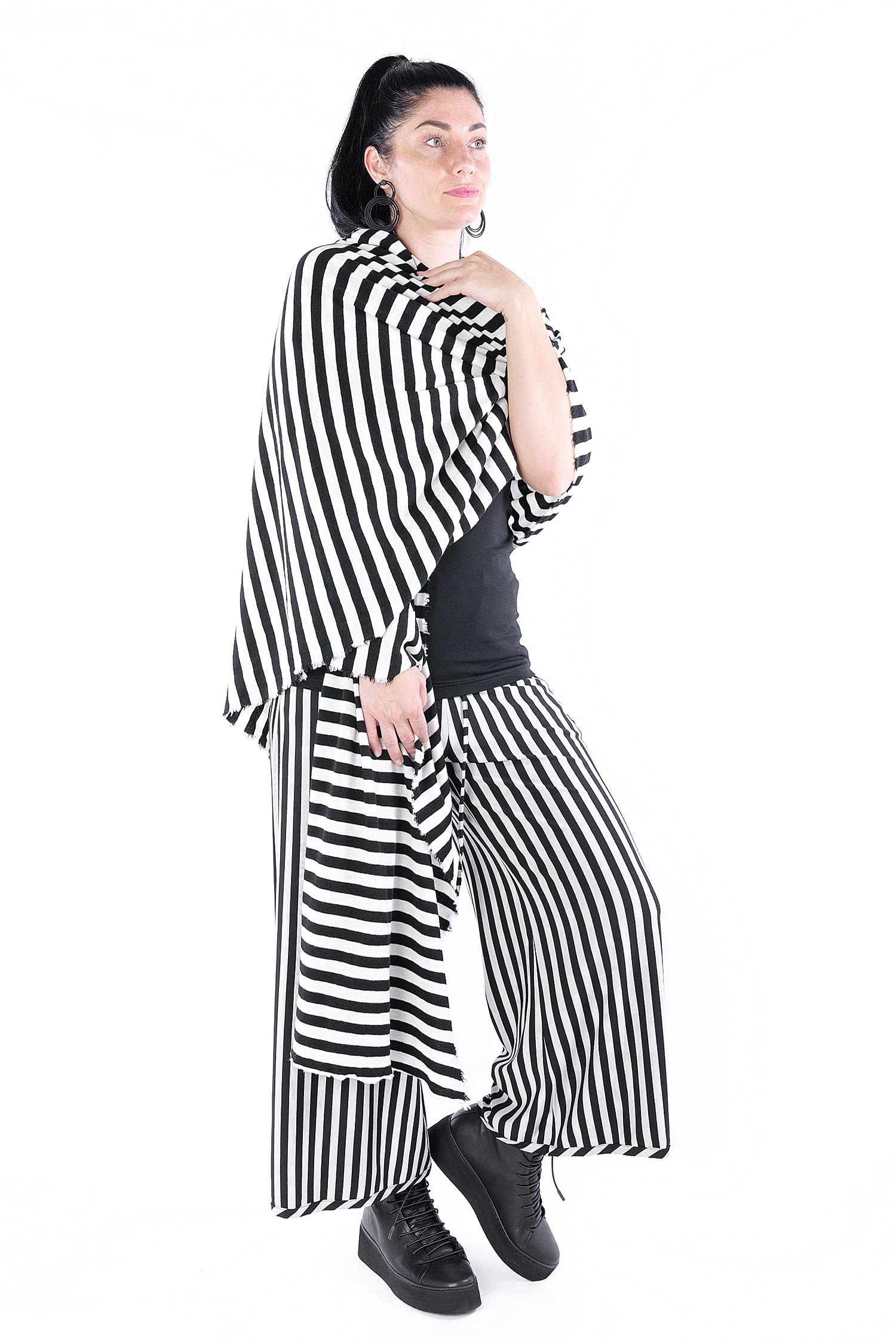 Gestreifte Merinohose - white/black-breite Streifen - 3010