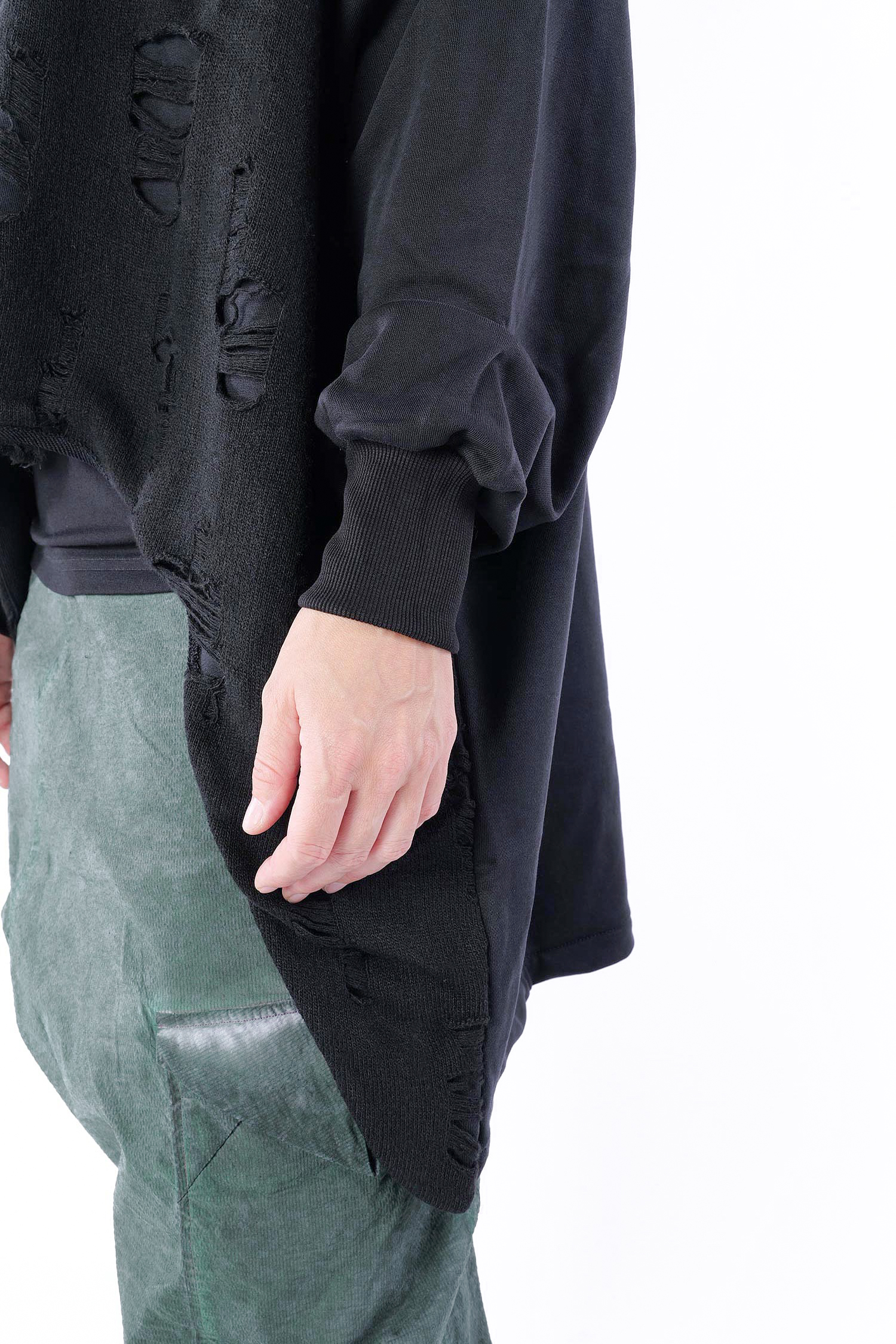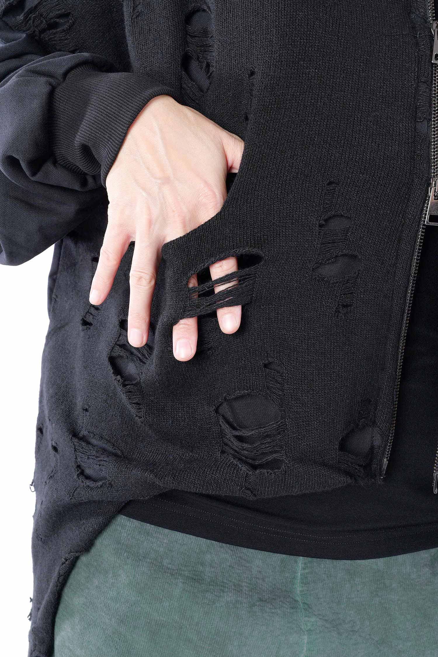 - Vorne doppellagig, oberere Lage Strick mit großem