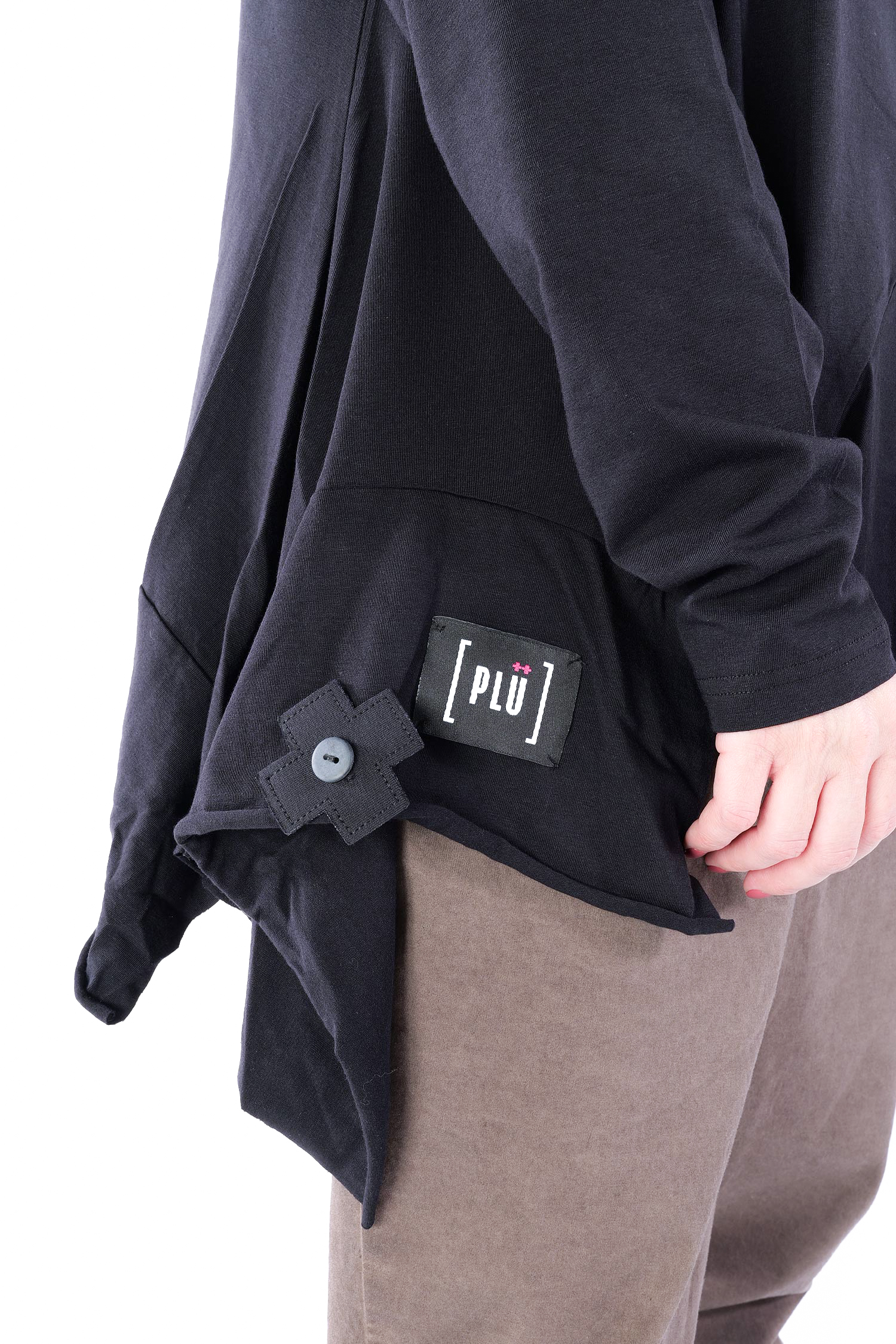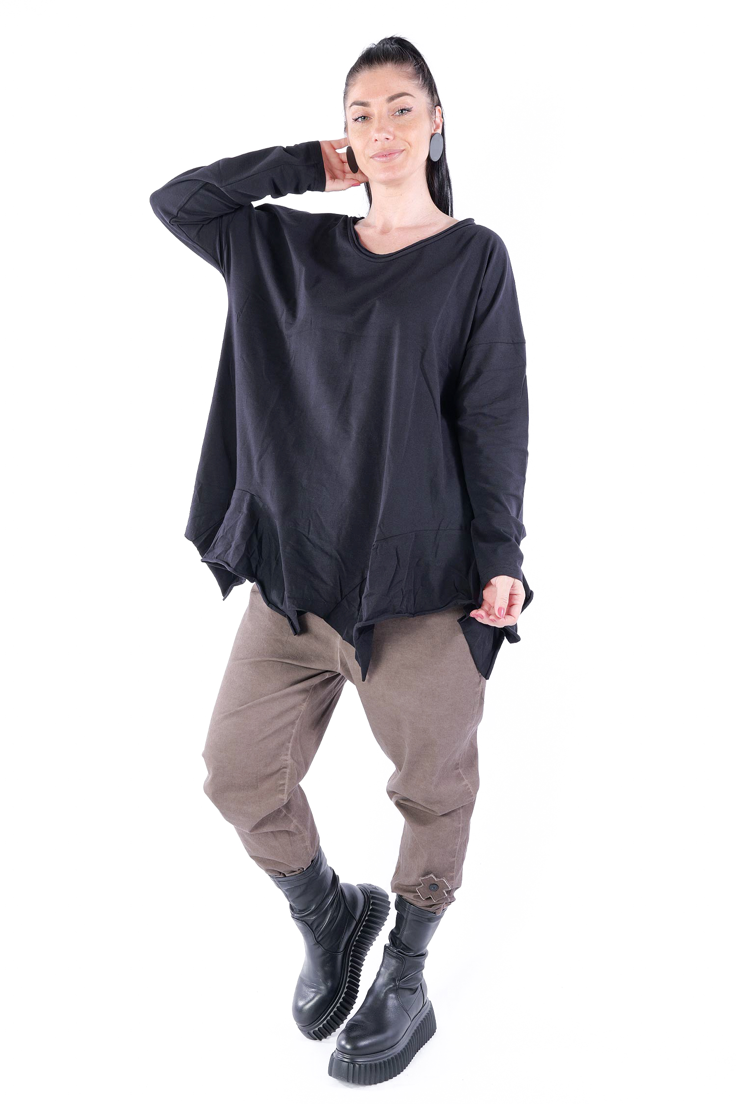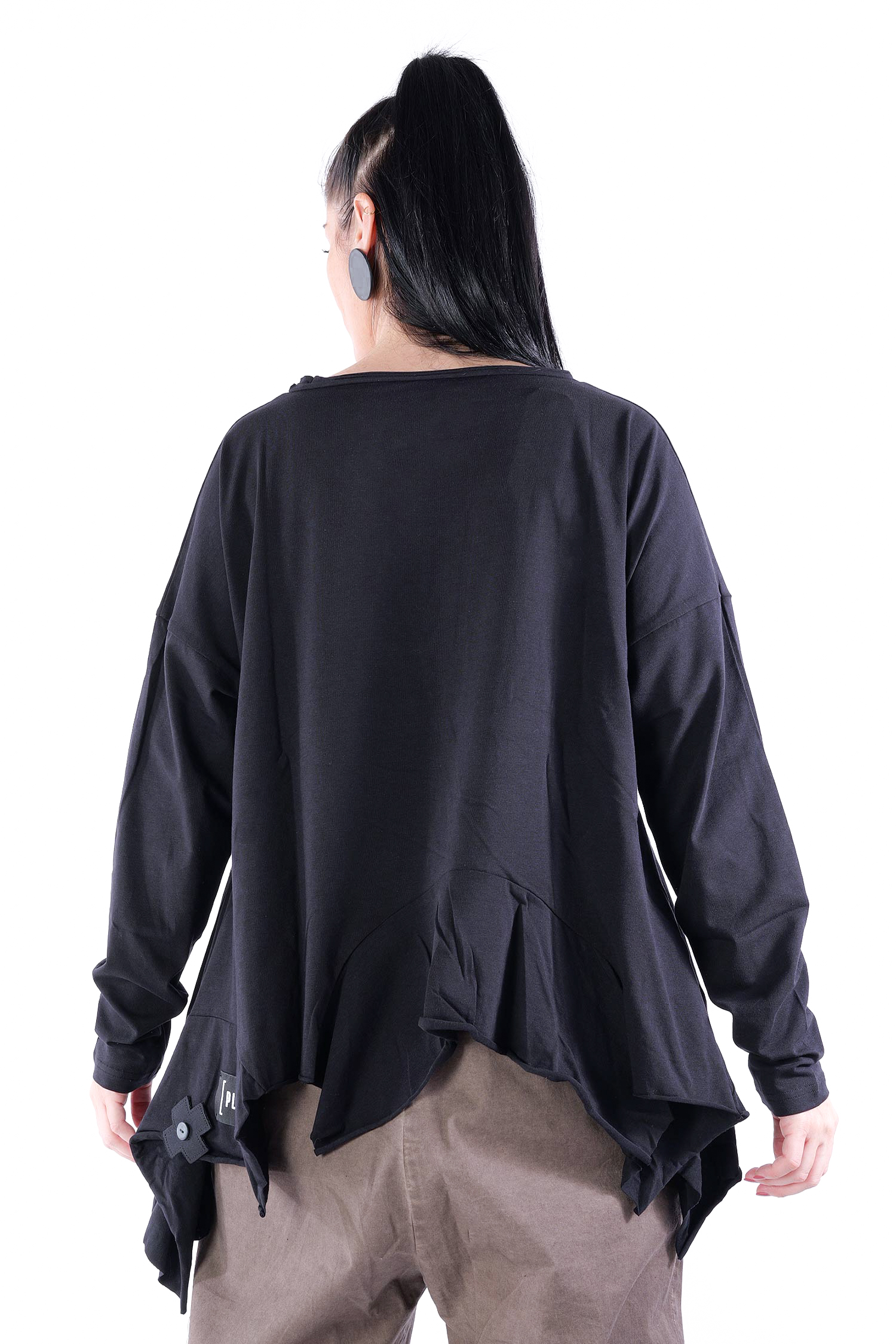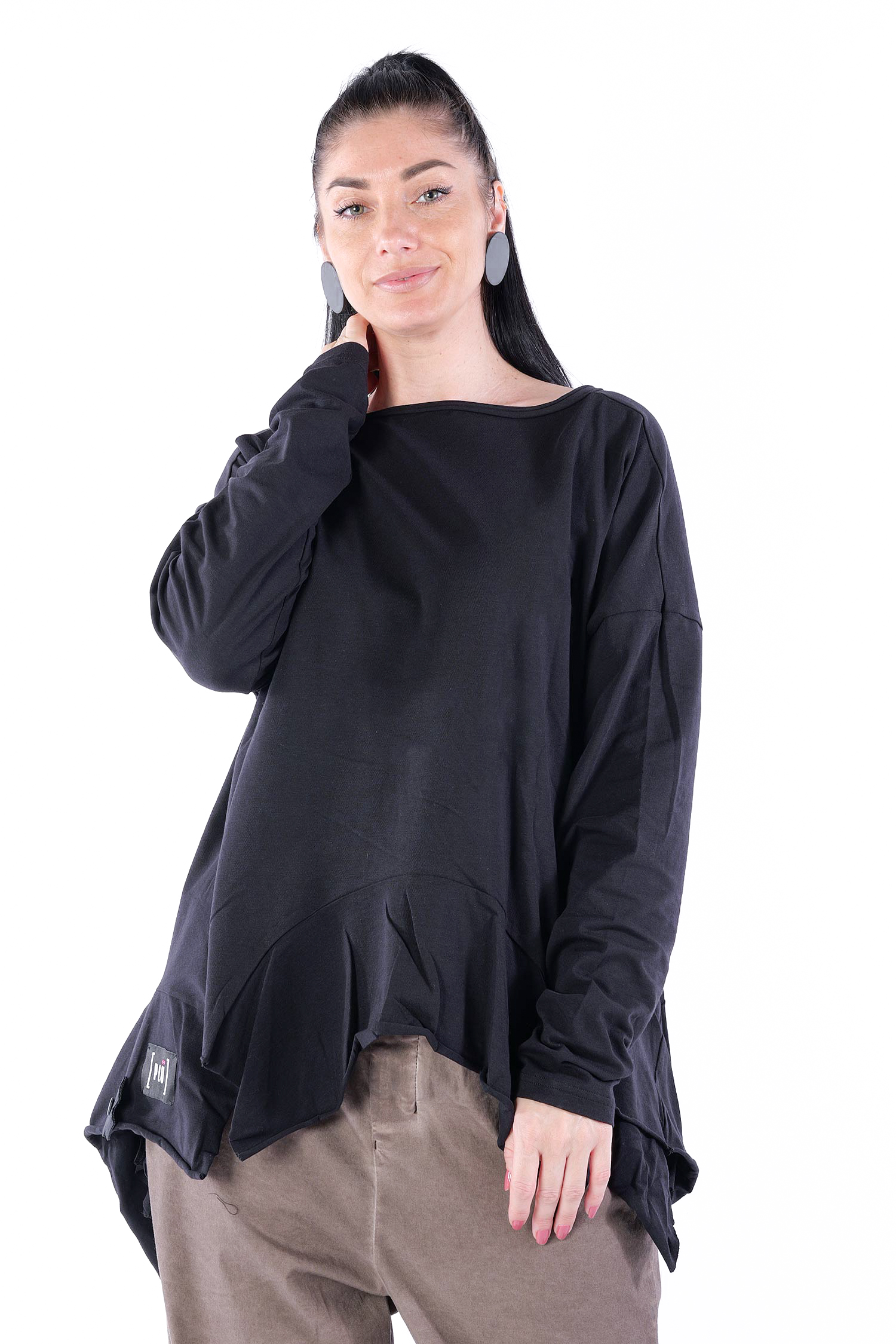 Jerseypullover mit asymmetrischem Saum in schwarz von Plü – Pluslavie.