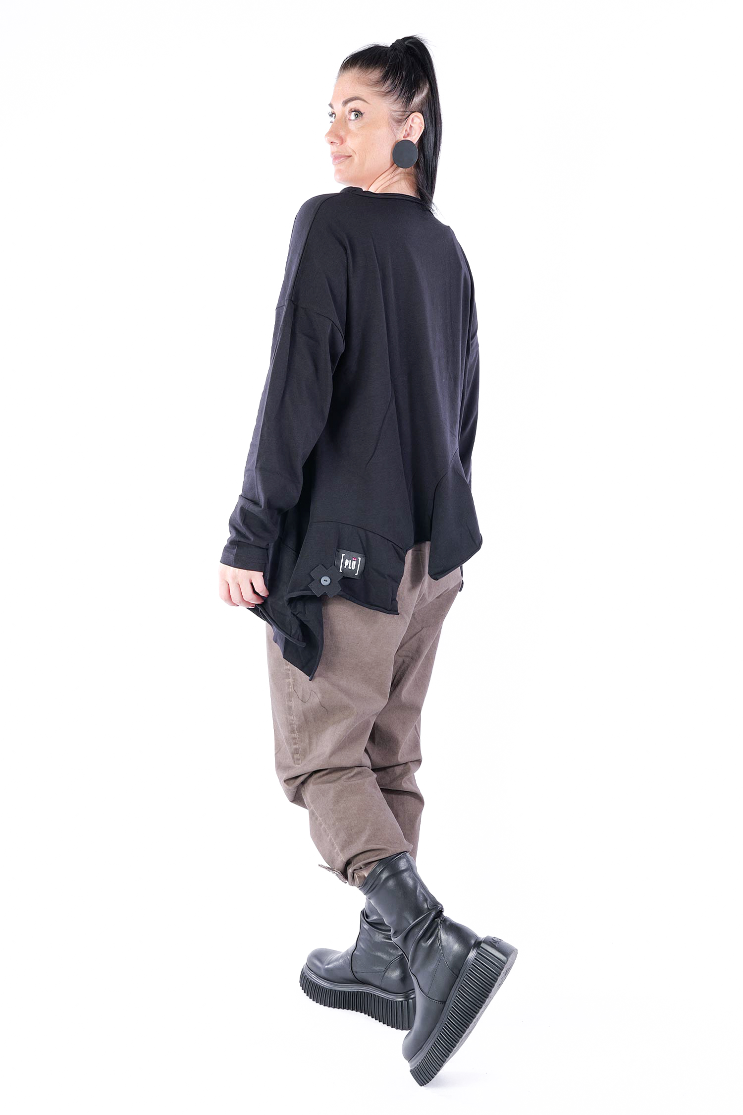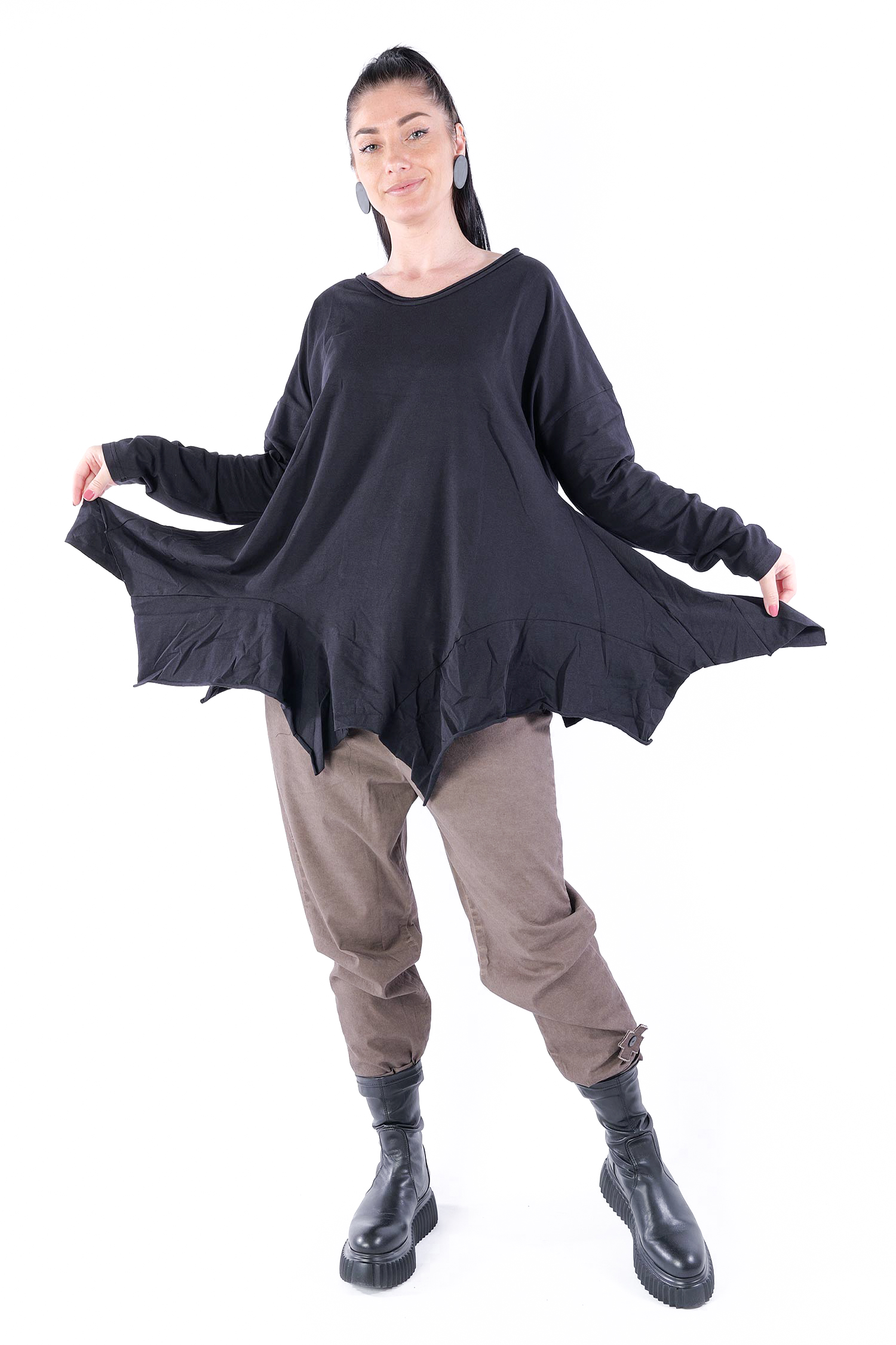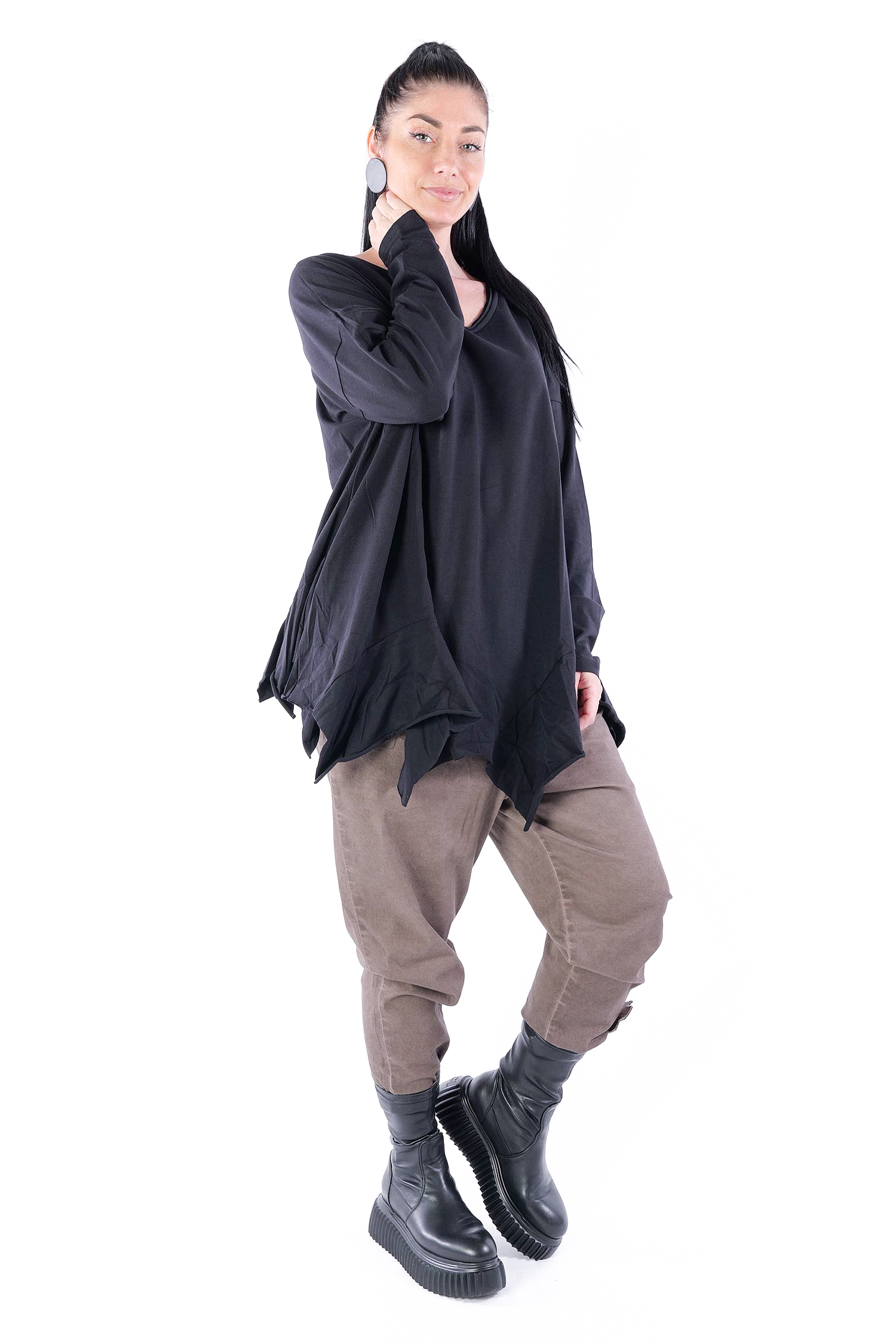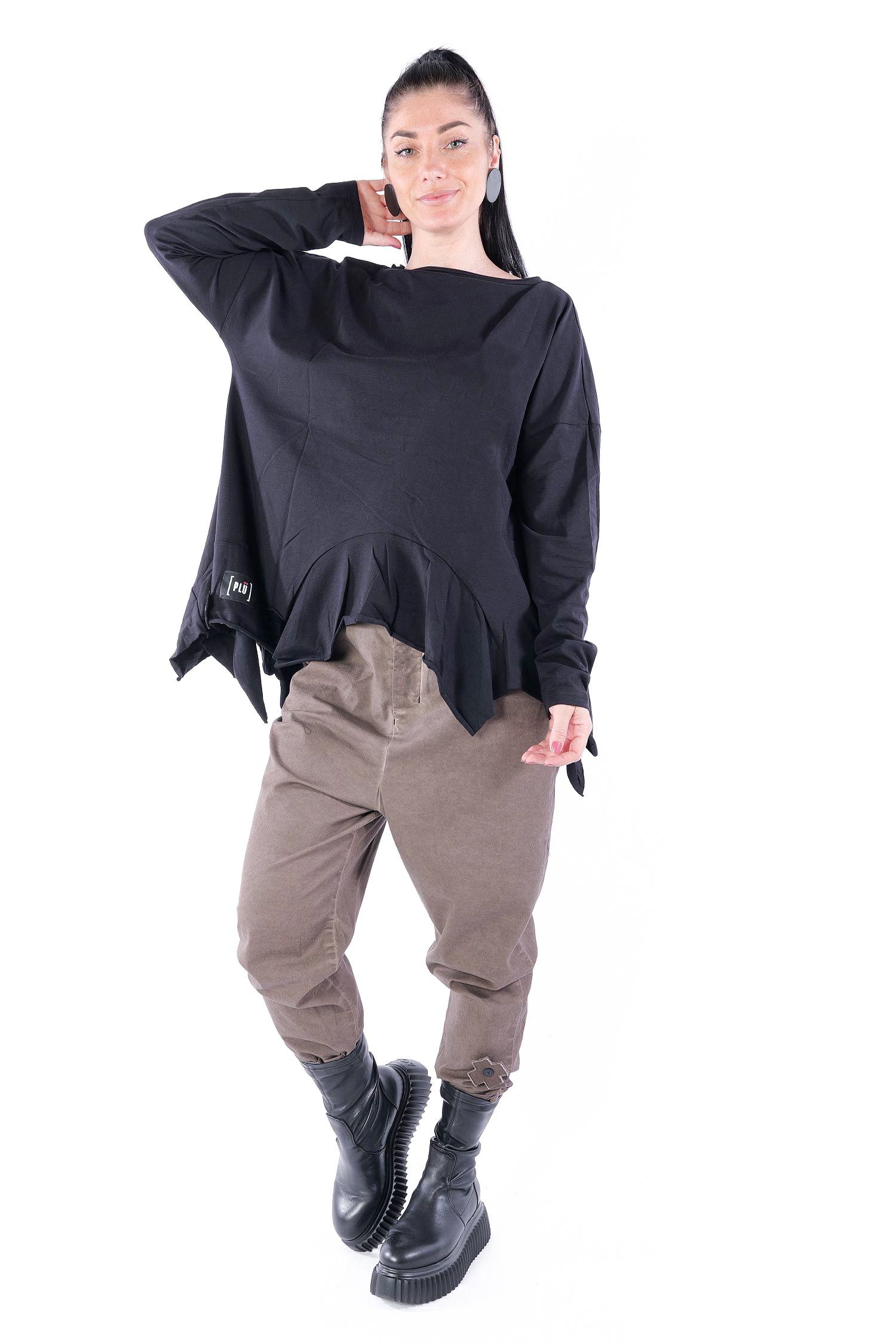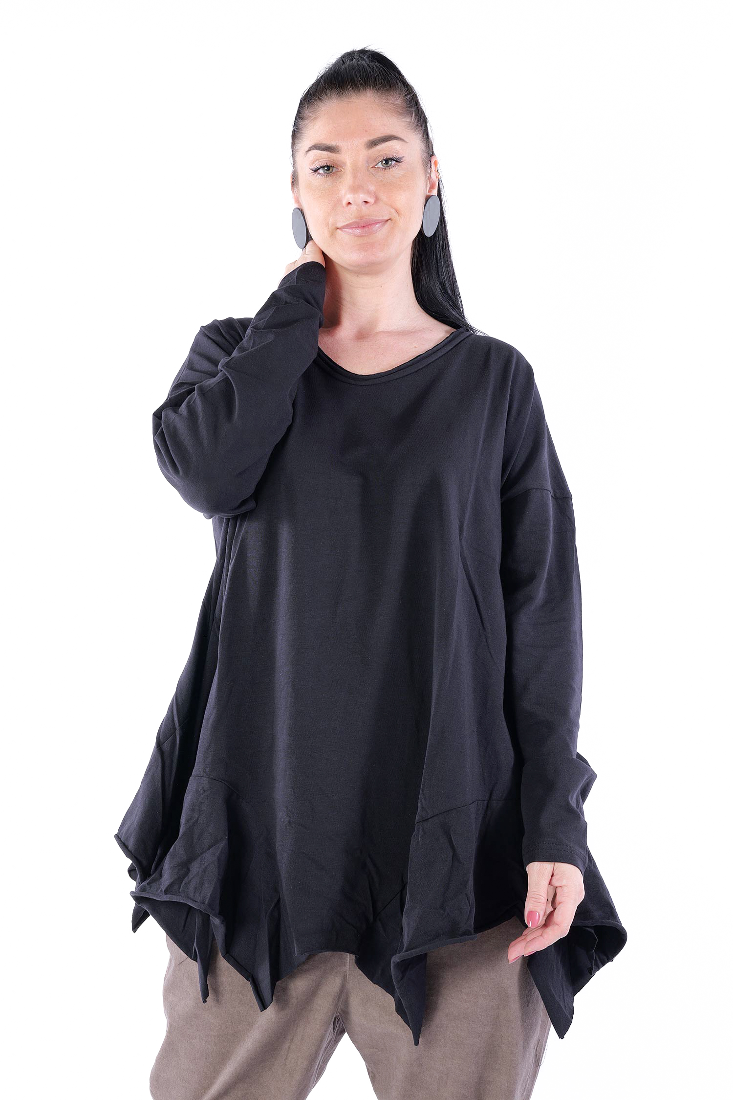 Jerseypullover mit asymmetrischem Saum in schwarz von Plü – Pluslavie.