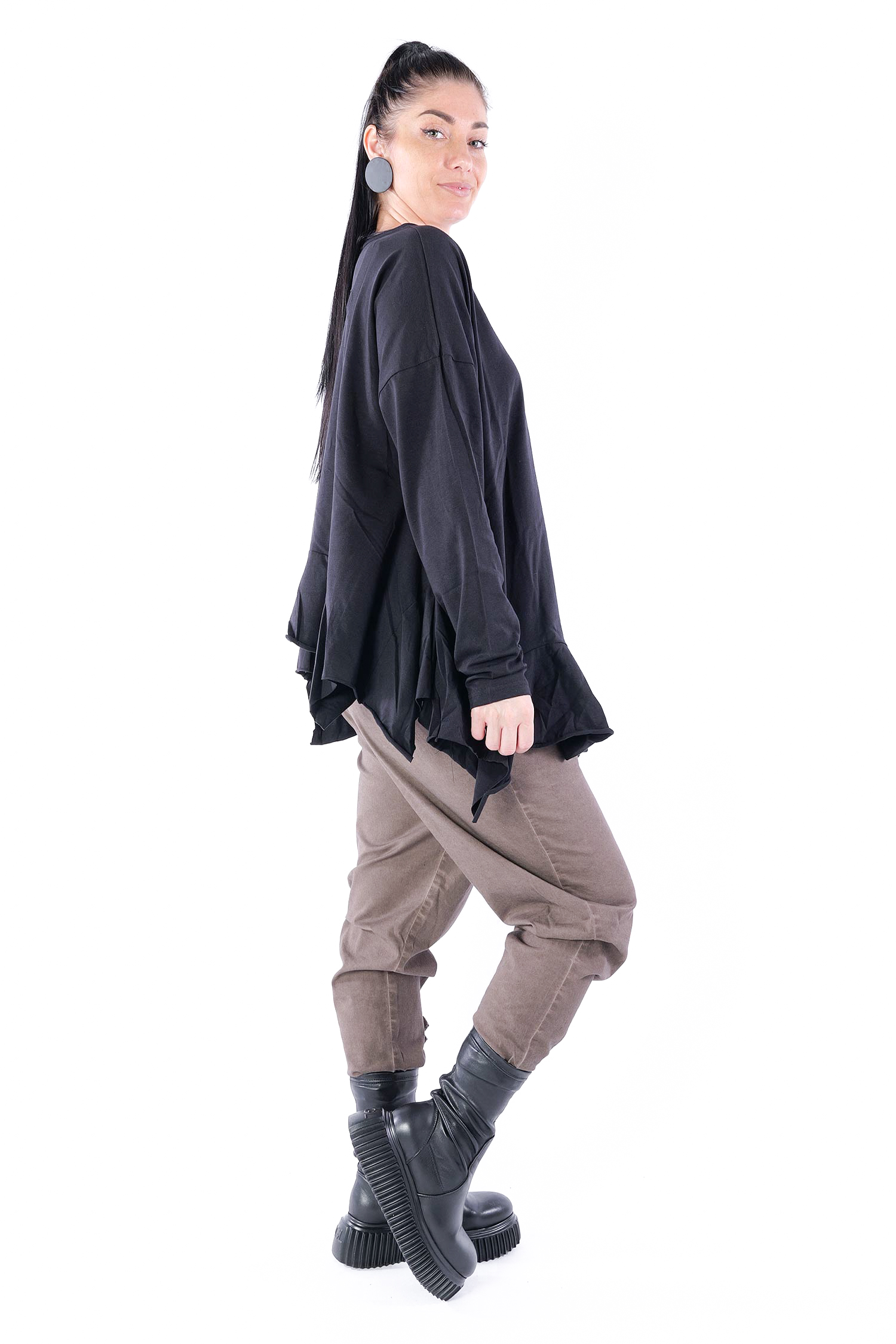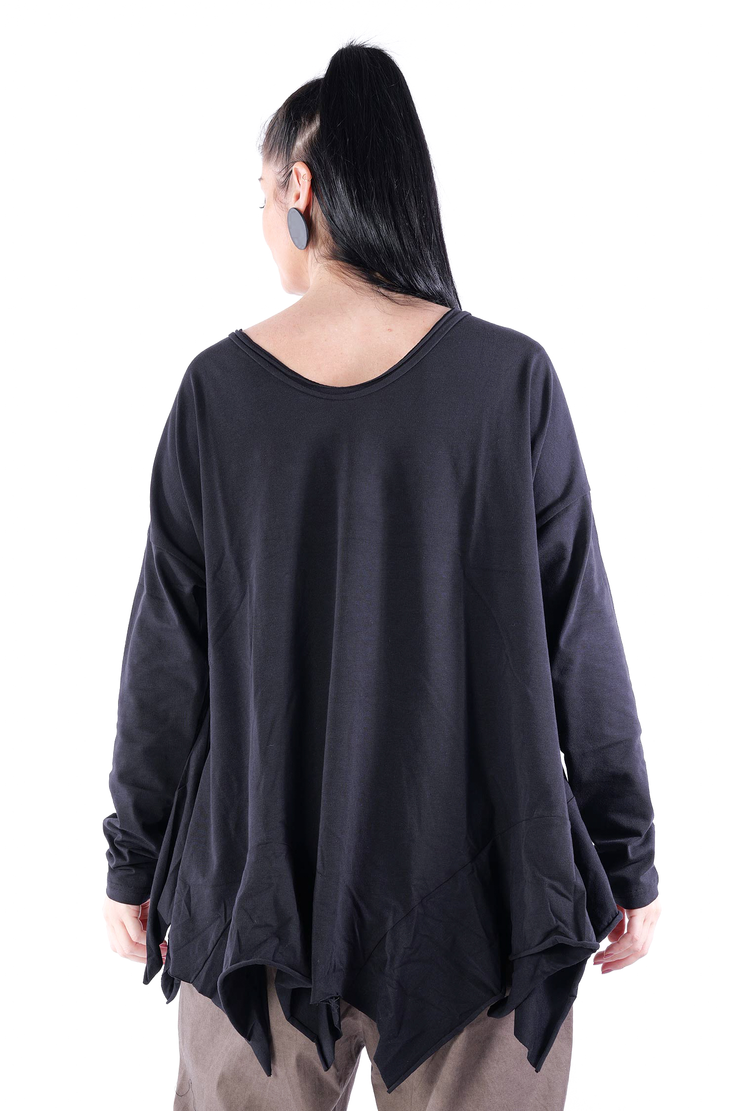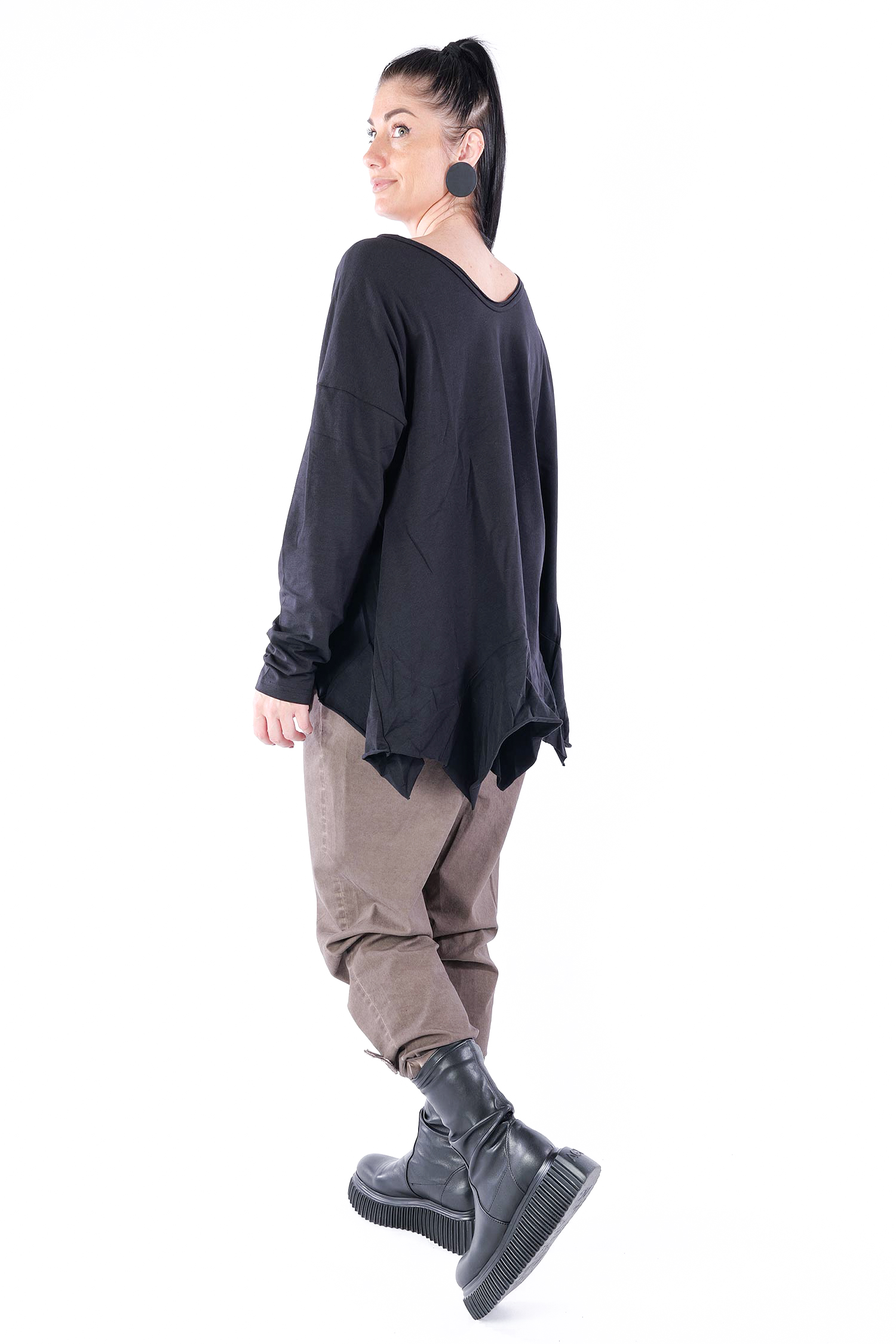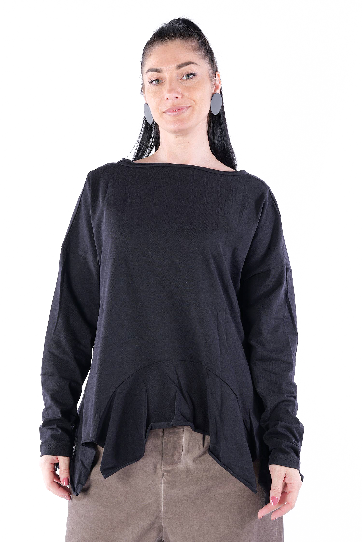 Jerseypullover mit asymmetrischem Saum in schwarz von Plü – Pluslavie.