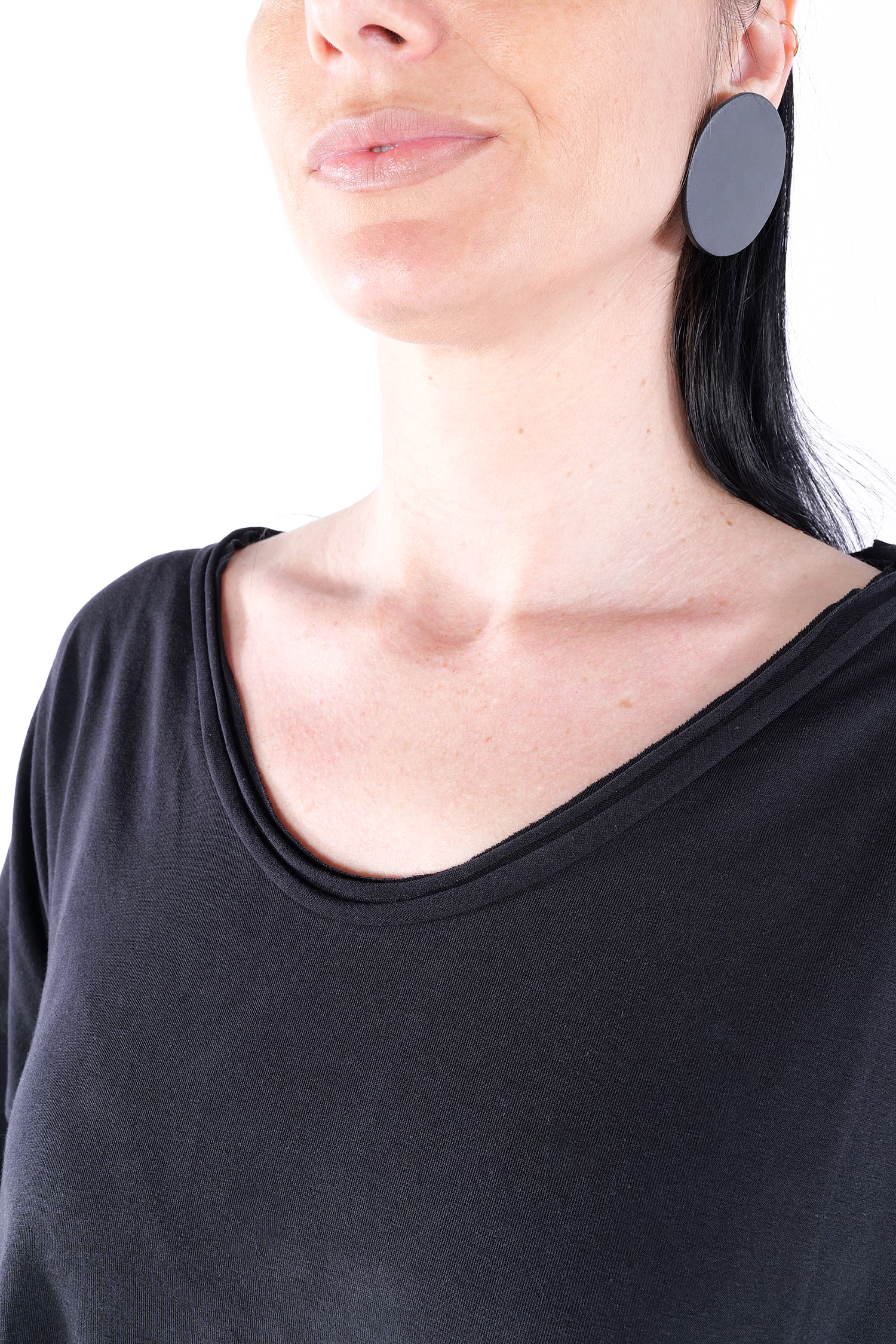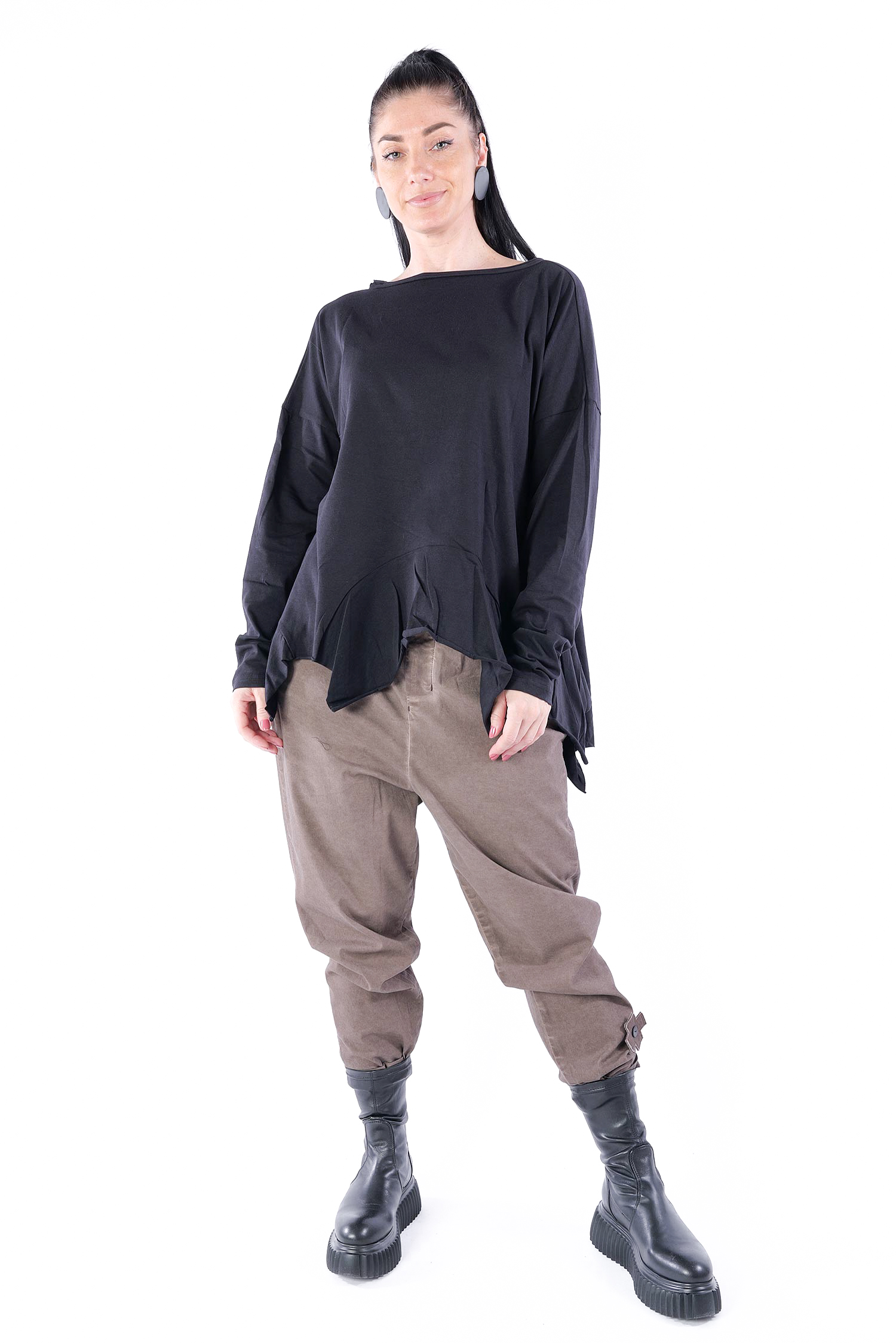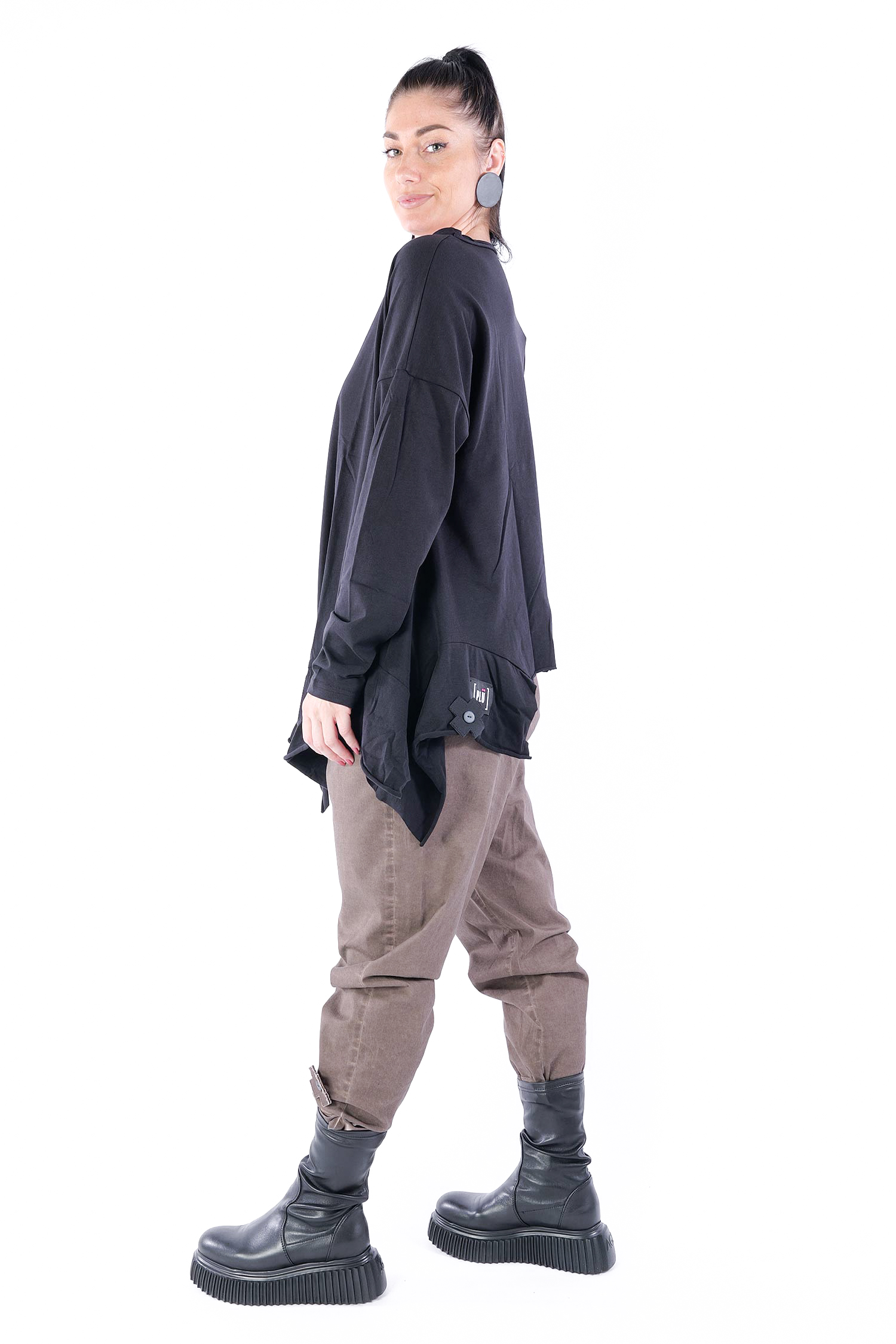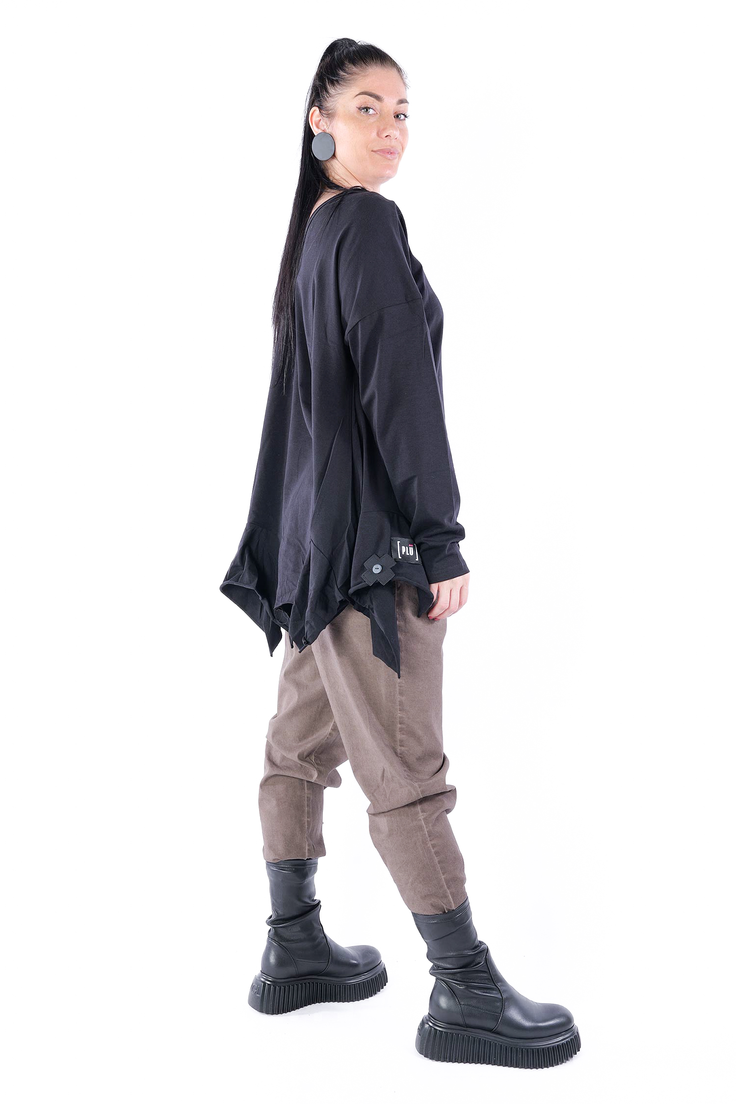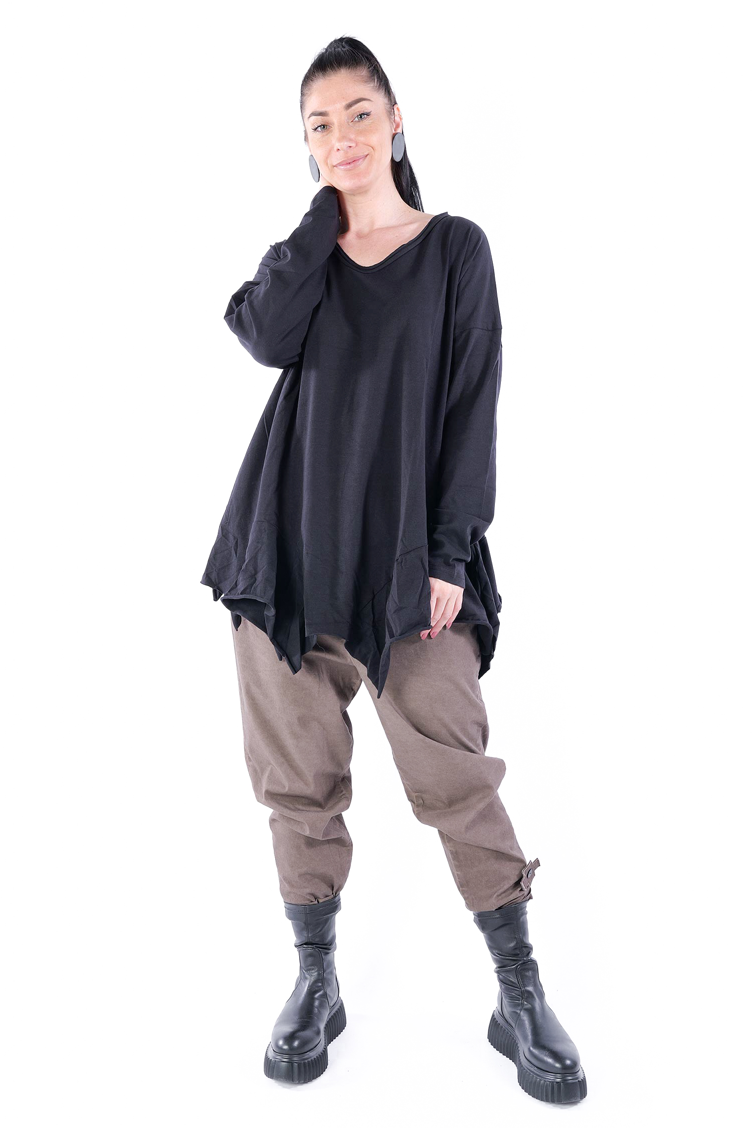Jerseypullover mit asymmetrischem Saum in schwarz von Plü – Pluslavie.