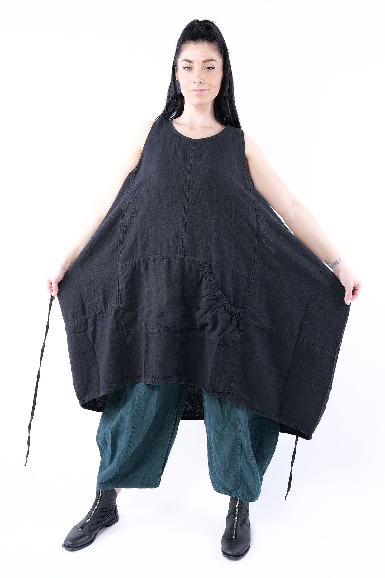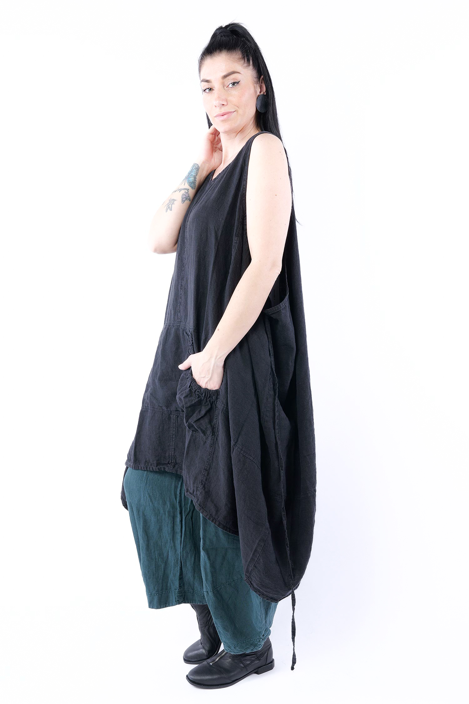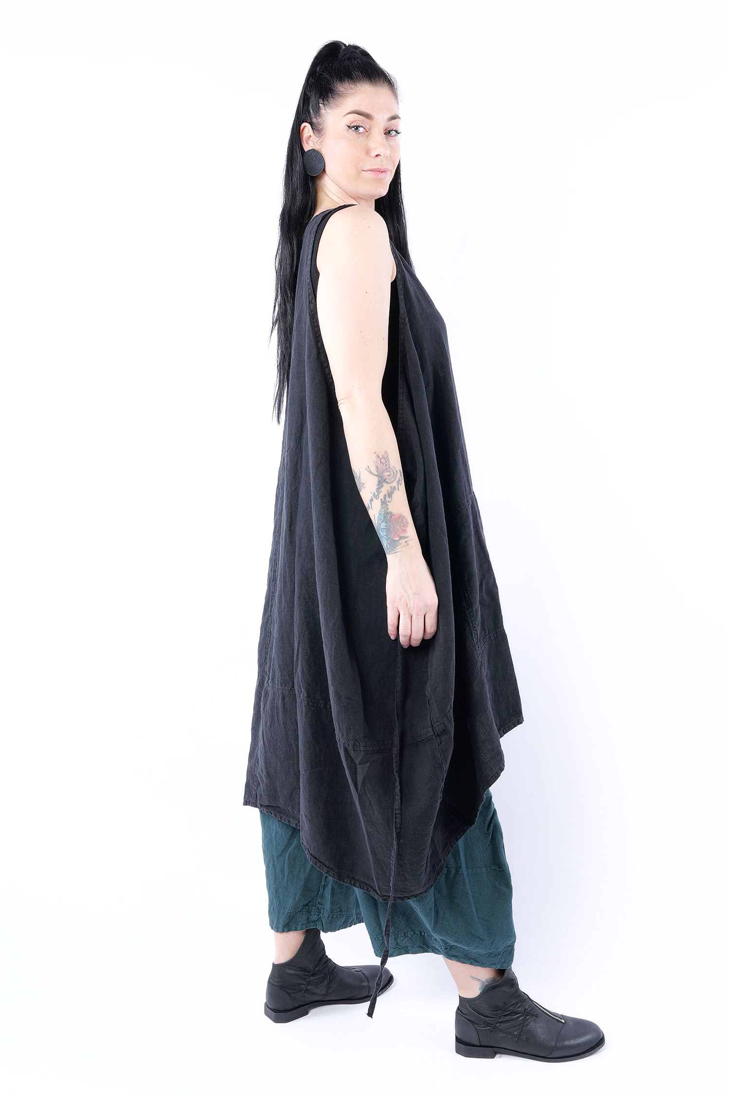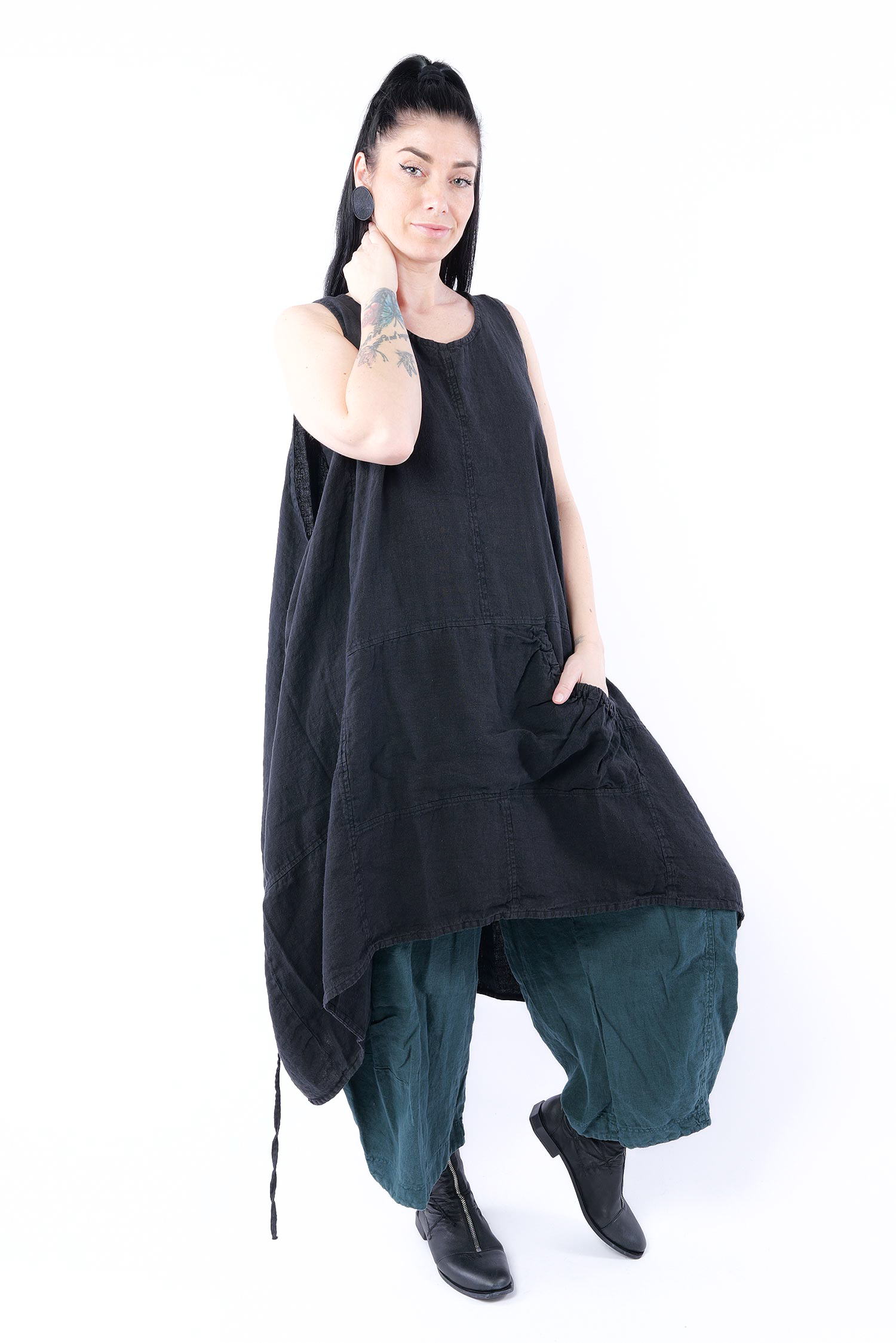 Oversize Leinenkleid - Schwarz - 1263540904