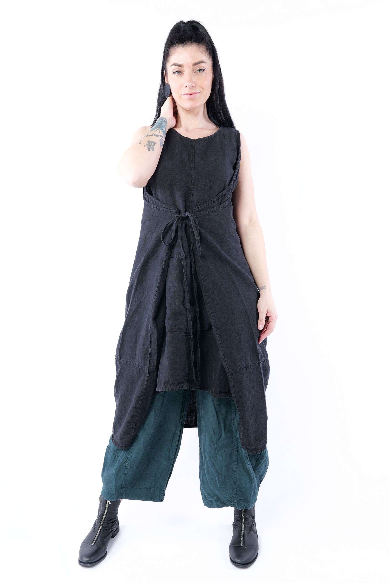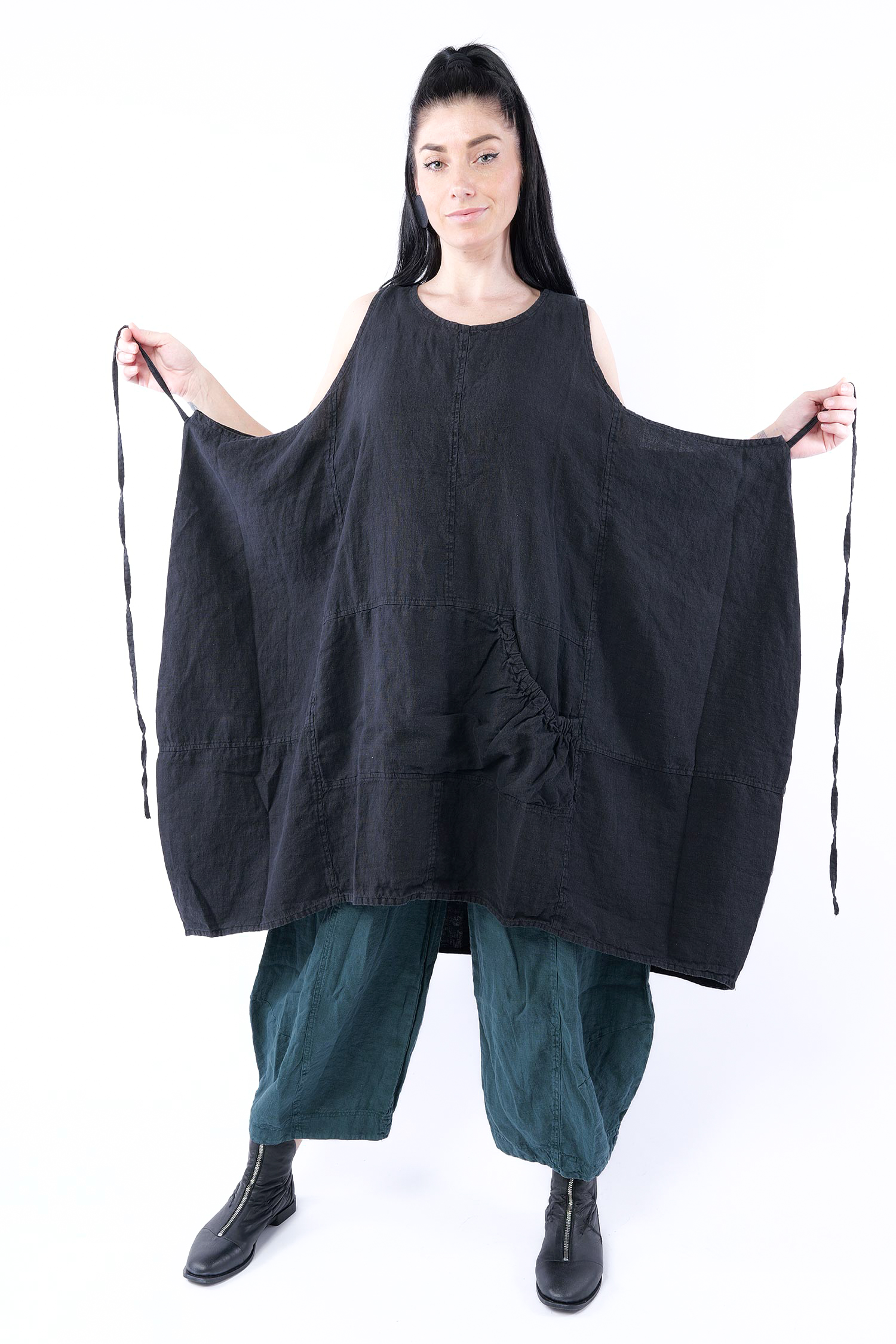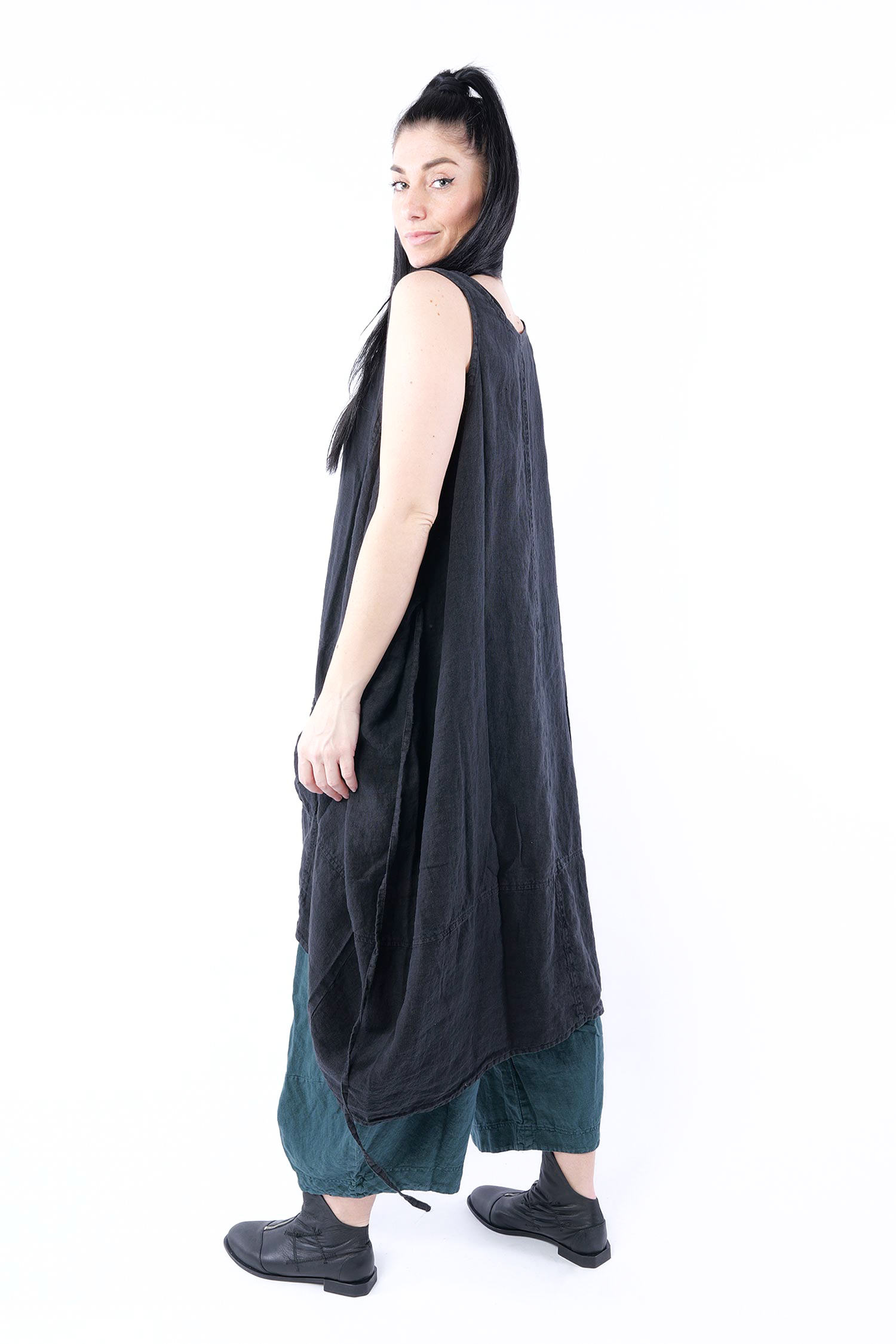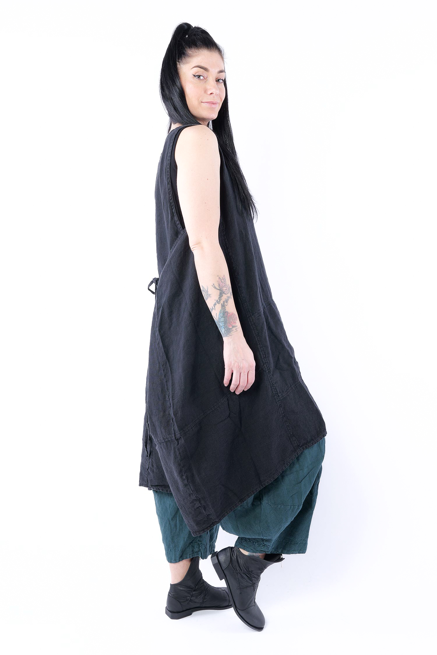 Oversize Leinenkleid - Schwarz - 1263540904