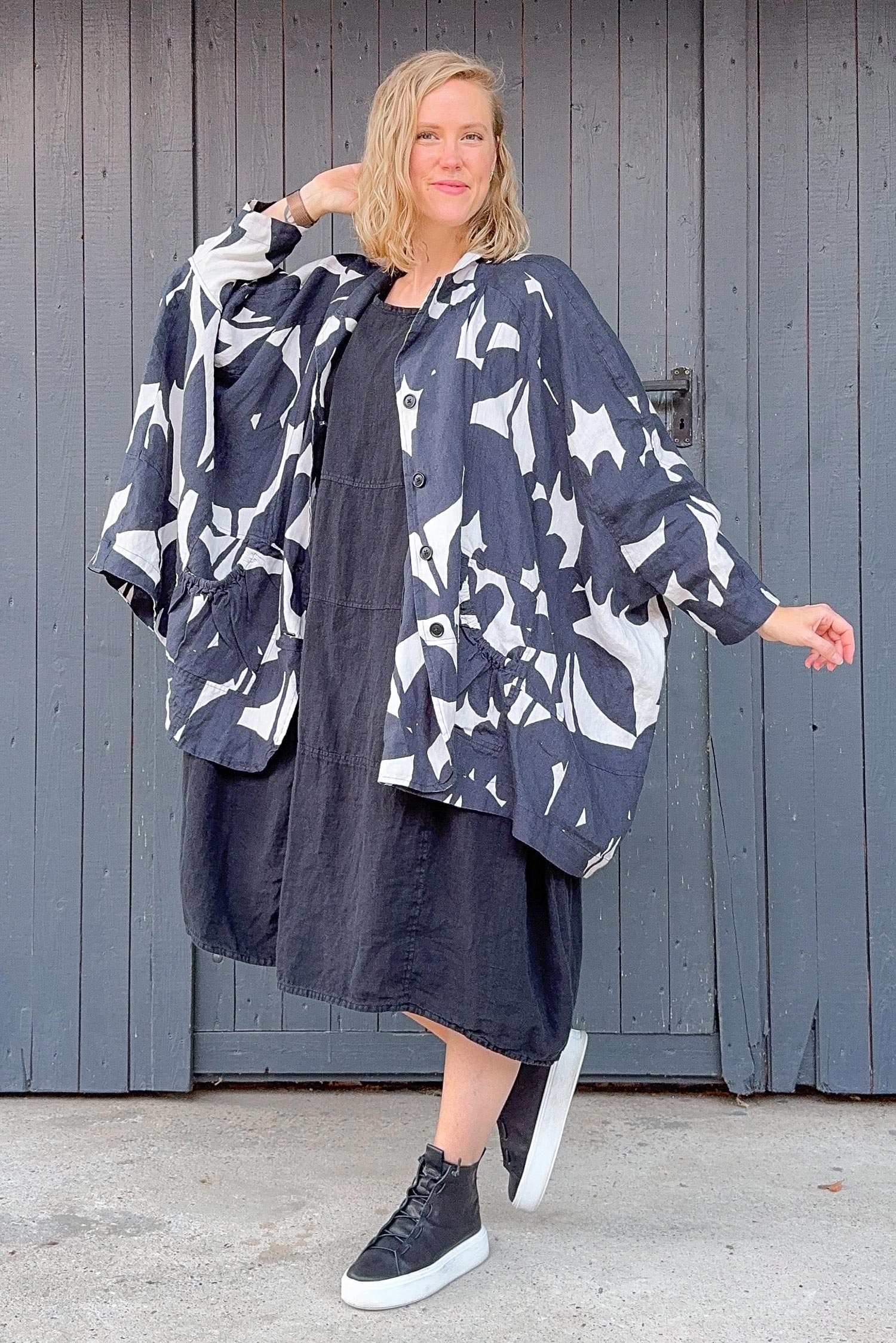 Oversize Leinenmantel - Schwarz - 1263541102