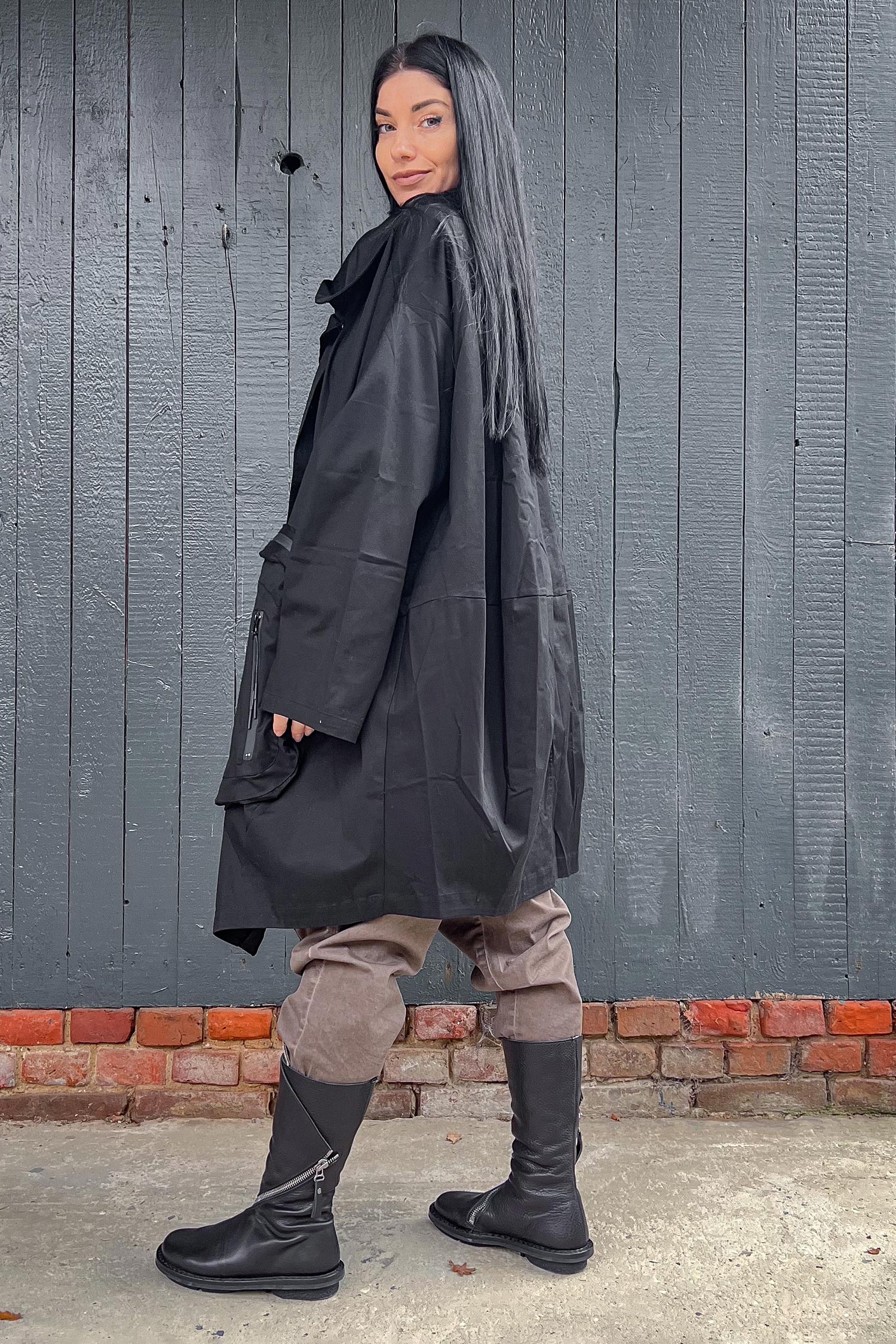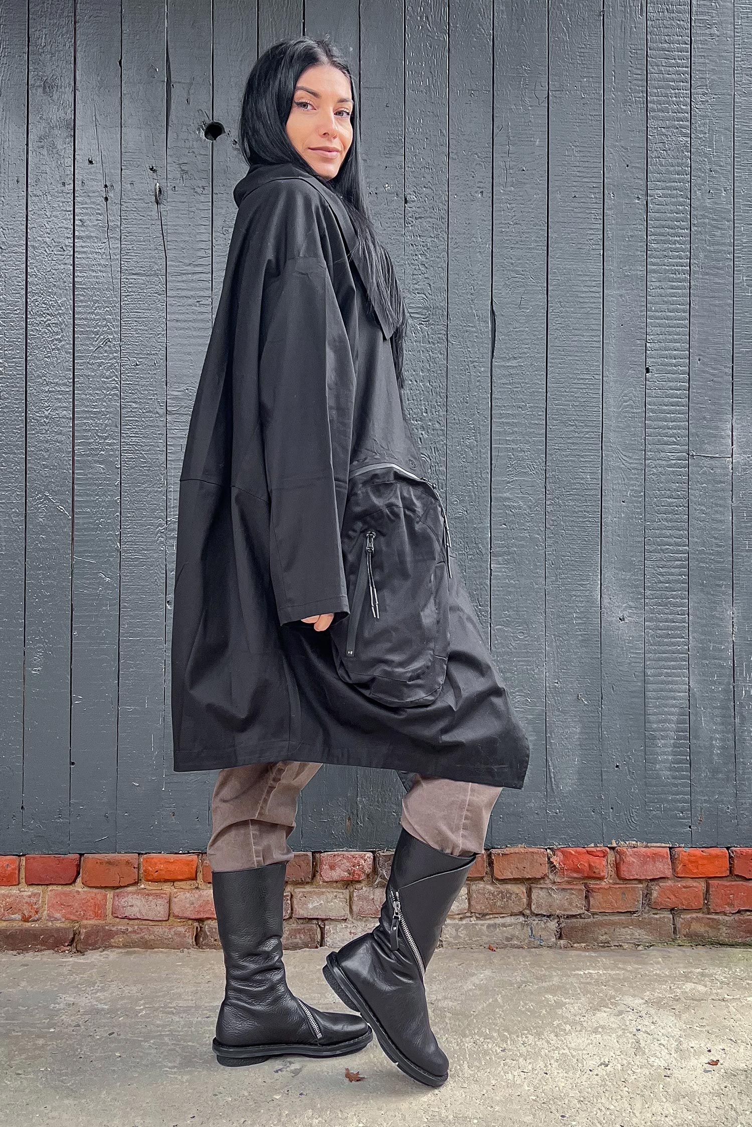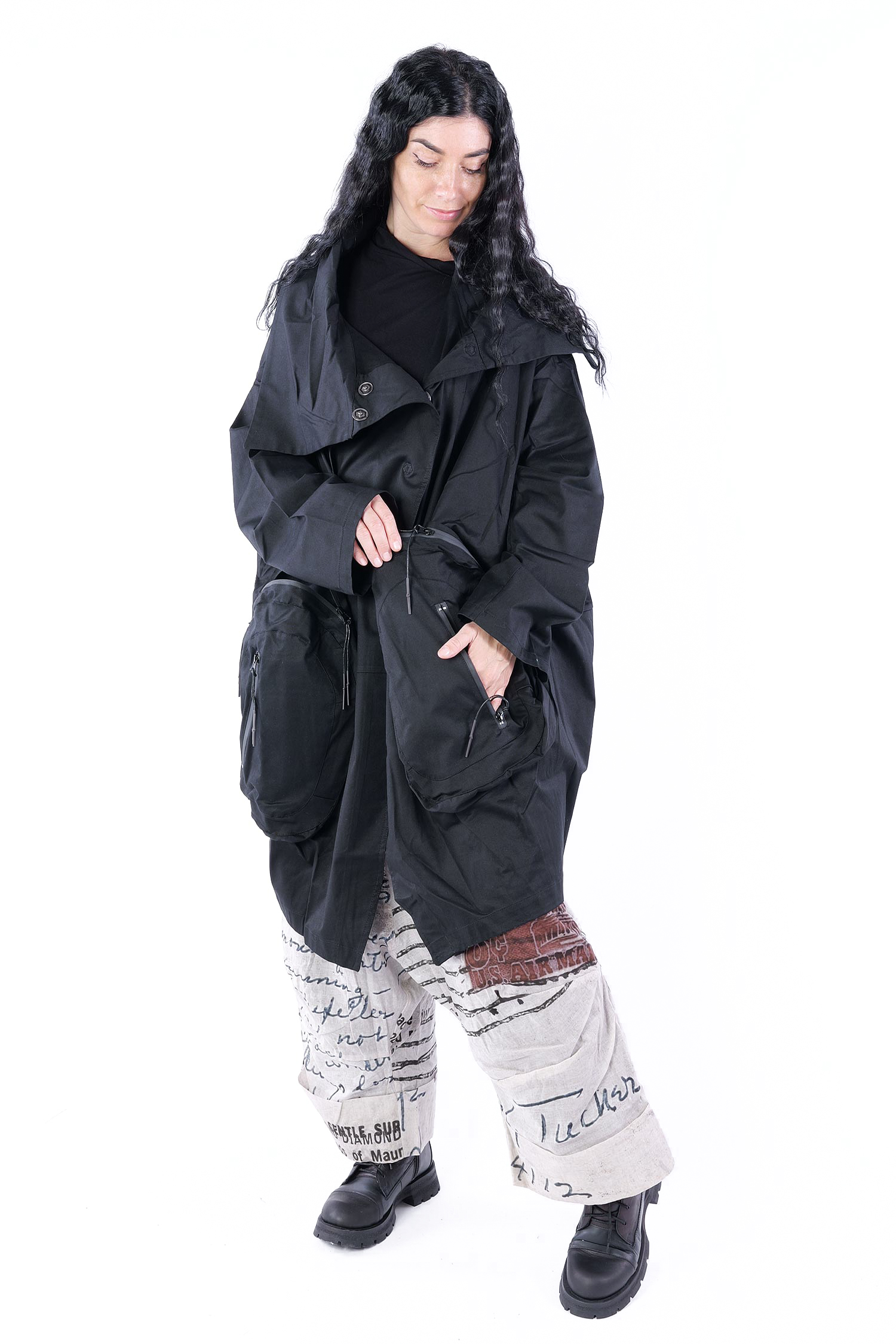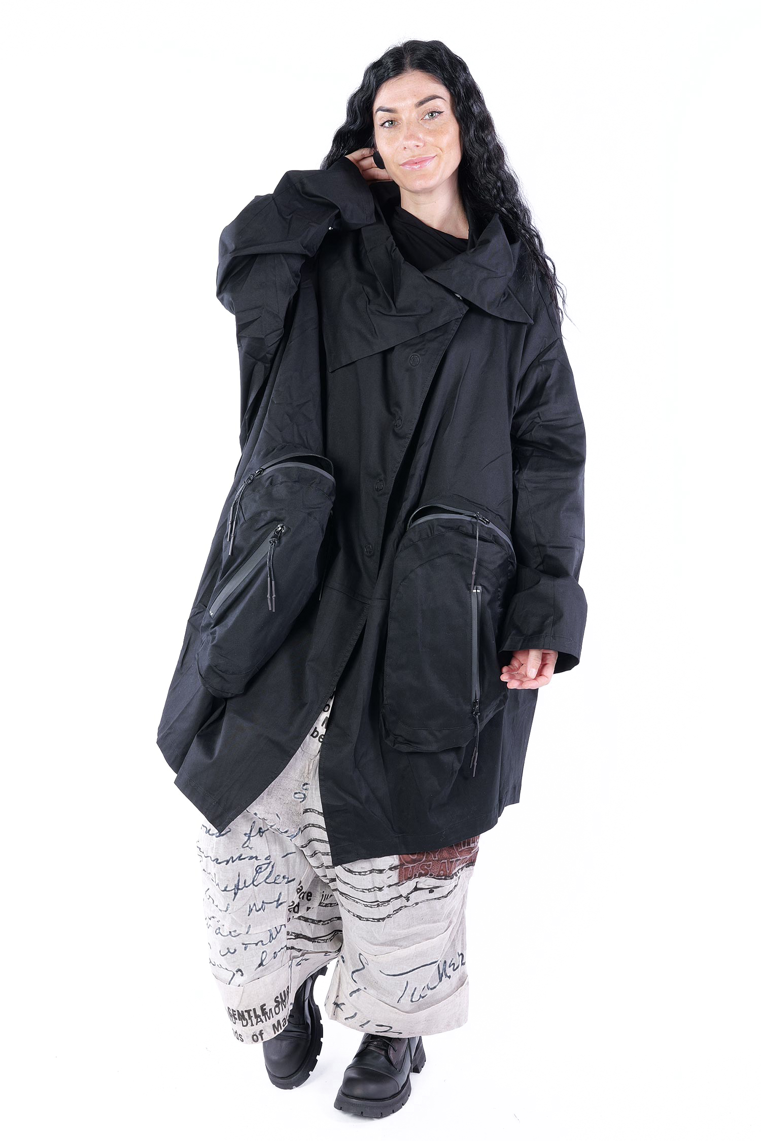 - Runde aufgesetzte Taschen mit zwei Reißverschlussfächern