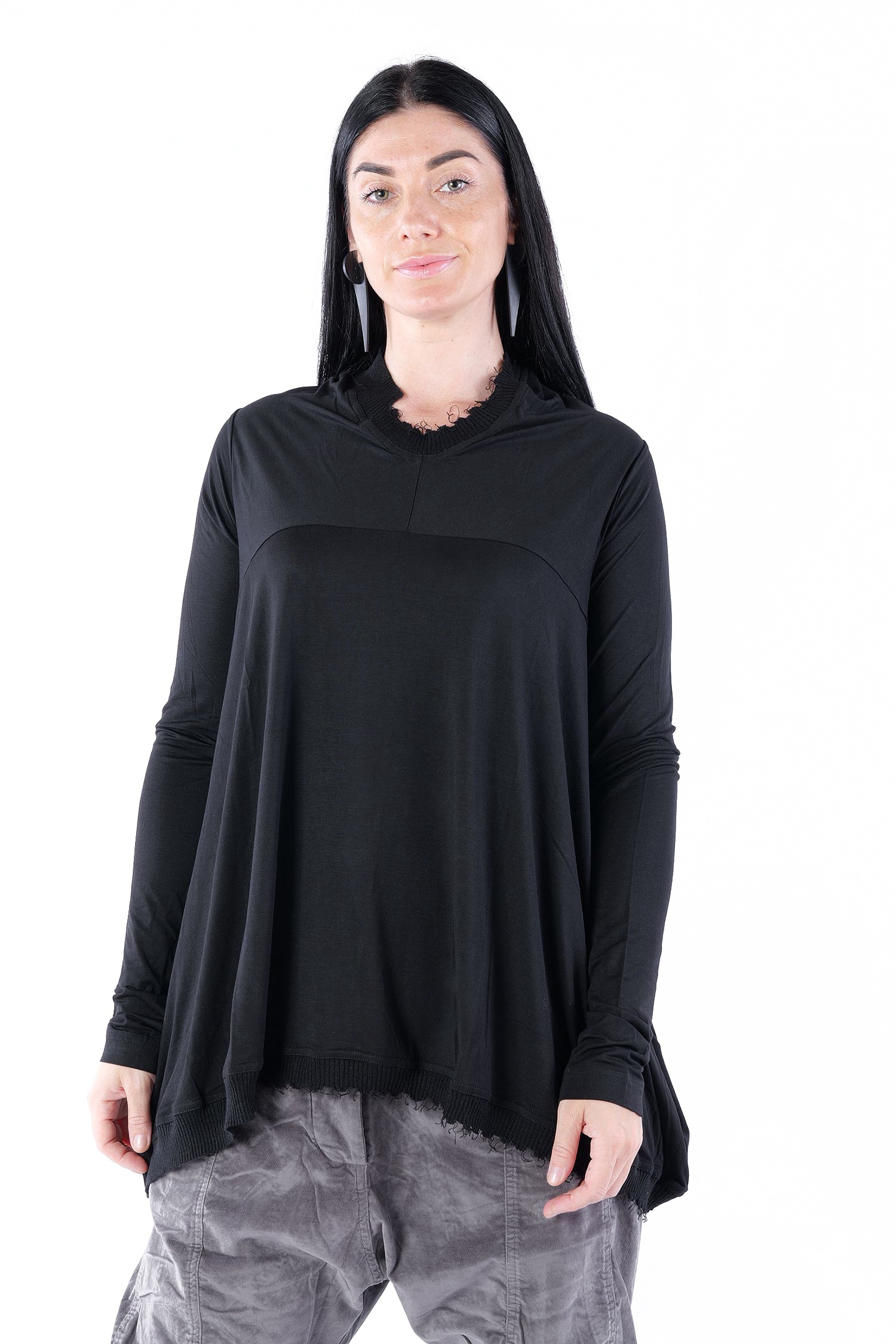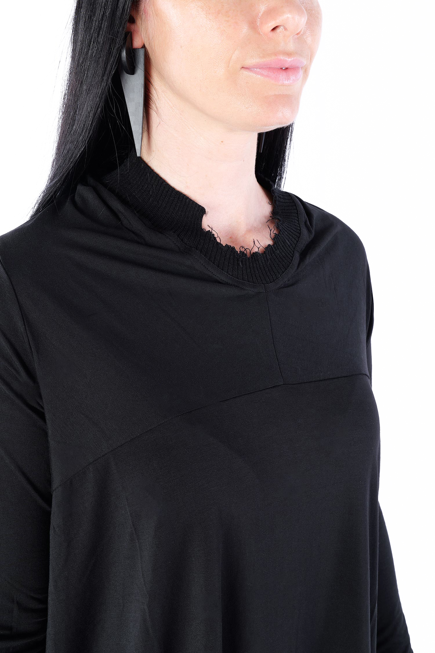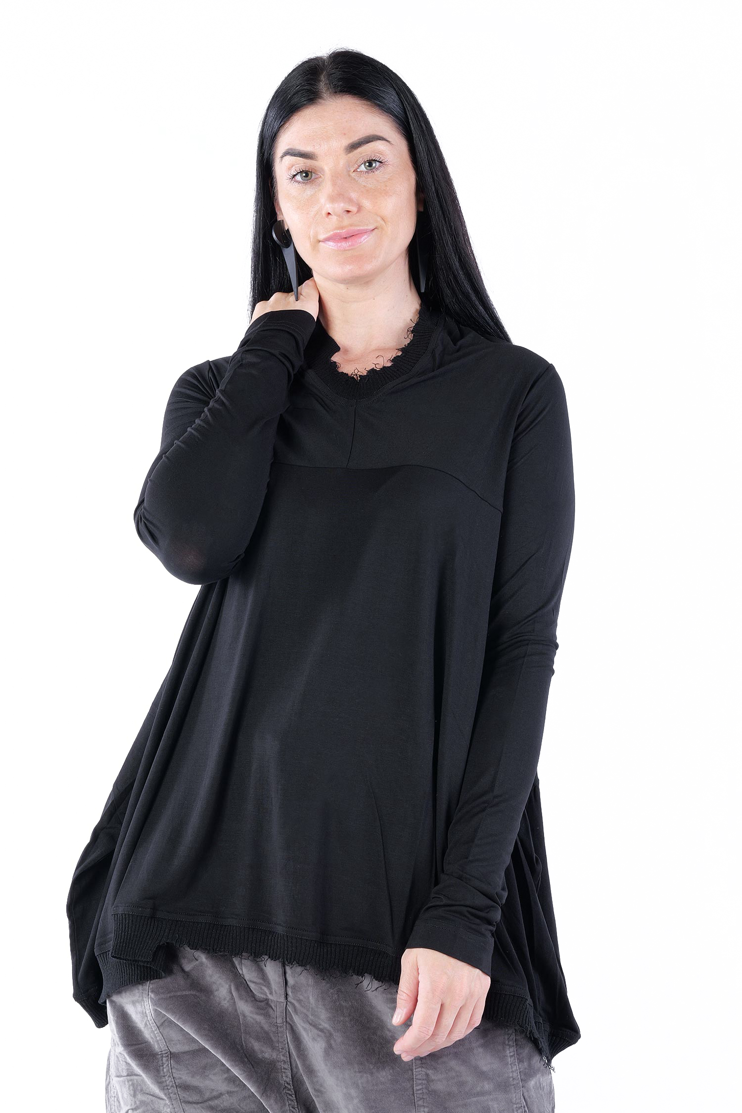 - Rippstrick mit fransigen Abschlüssen am Ausschnitt