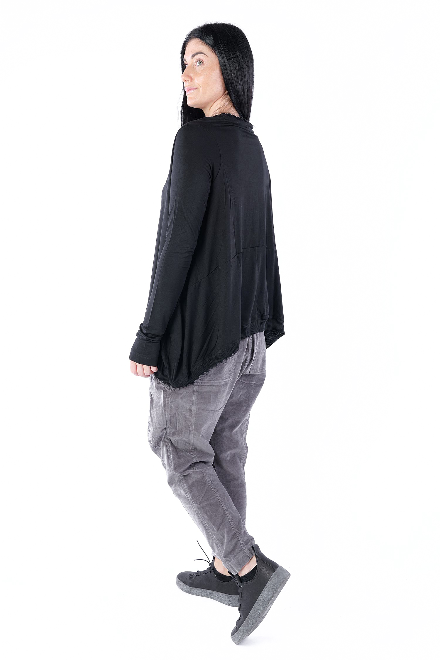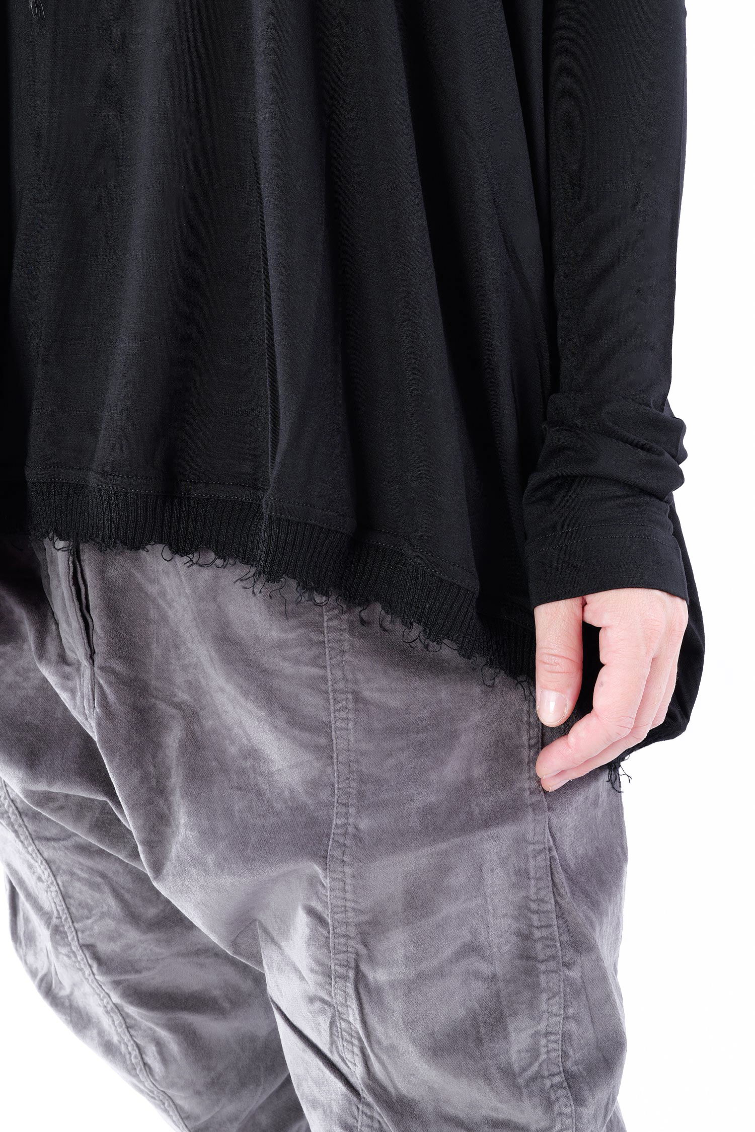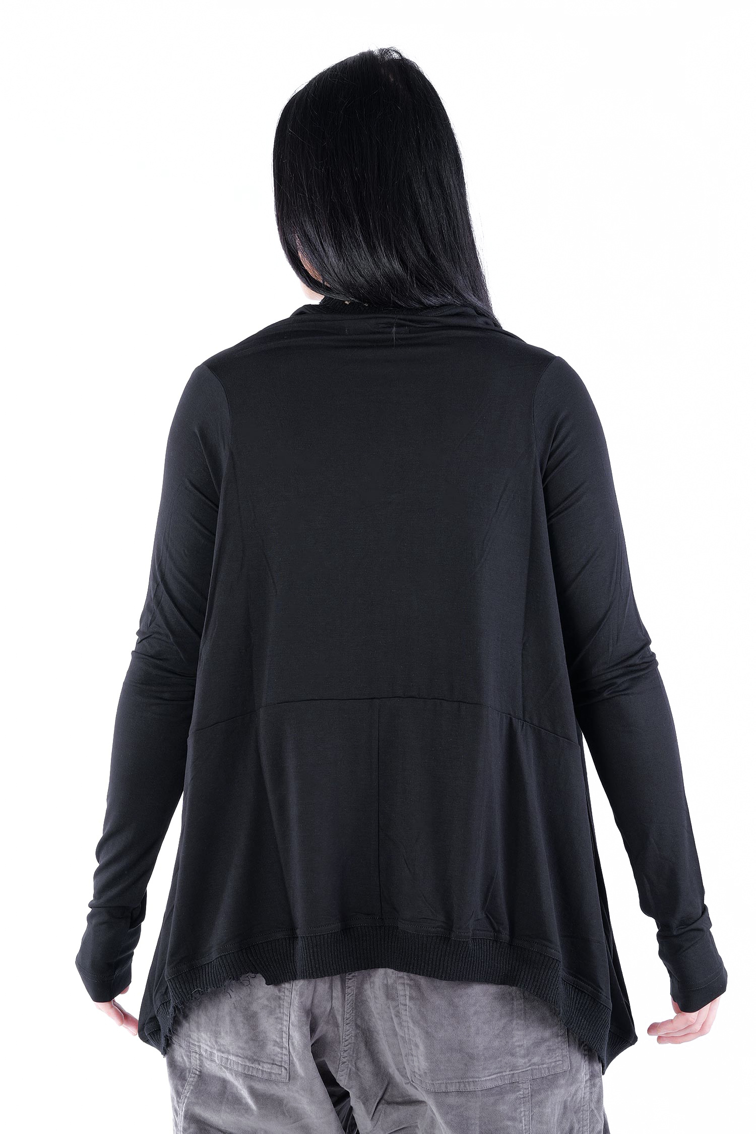 - Rippstrick mit fransigen Abschlüssen am Ausschnitt