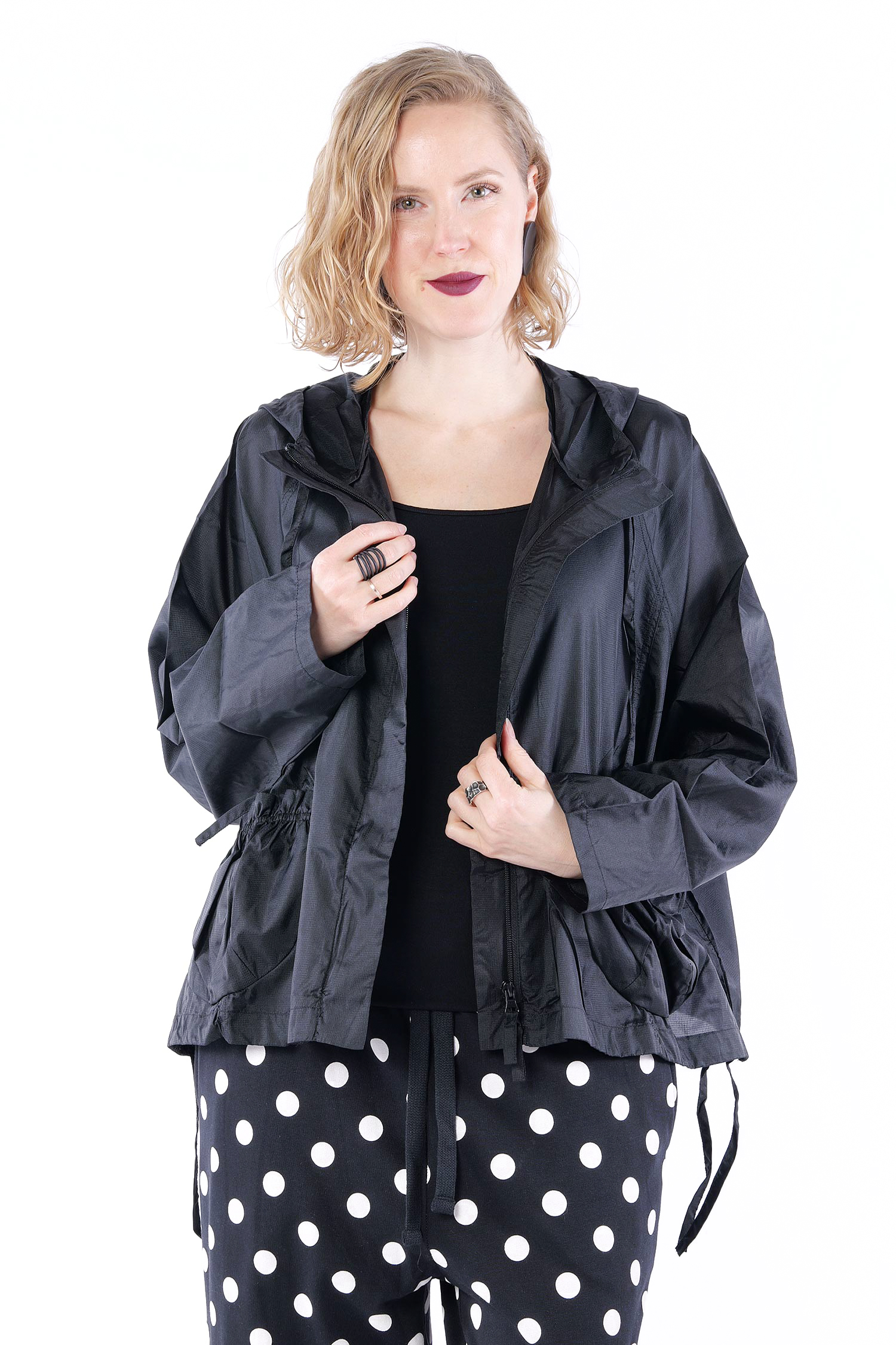 Oversize Regenjacke mit raffbarem Saum und Kapuze von Rundholz Black Label.