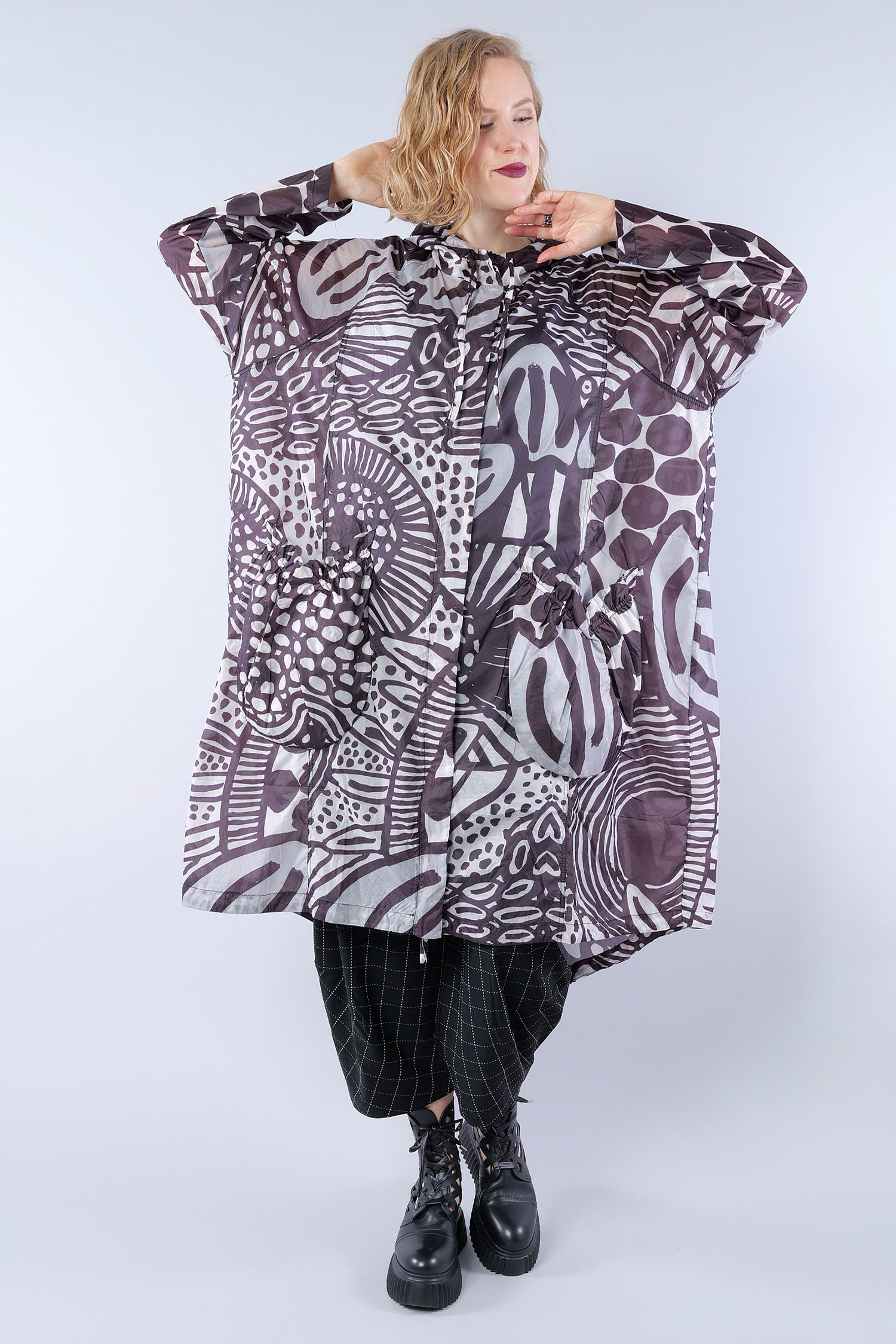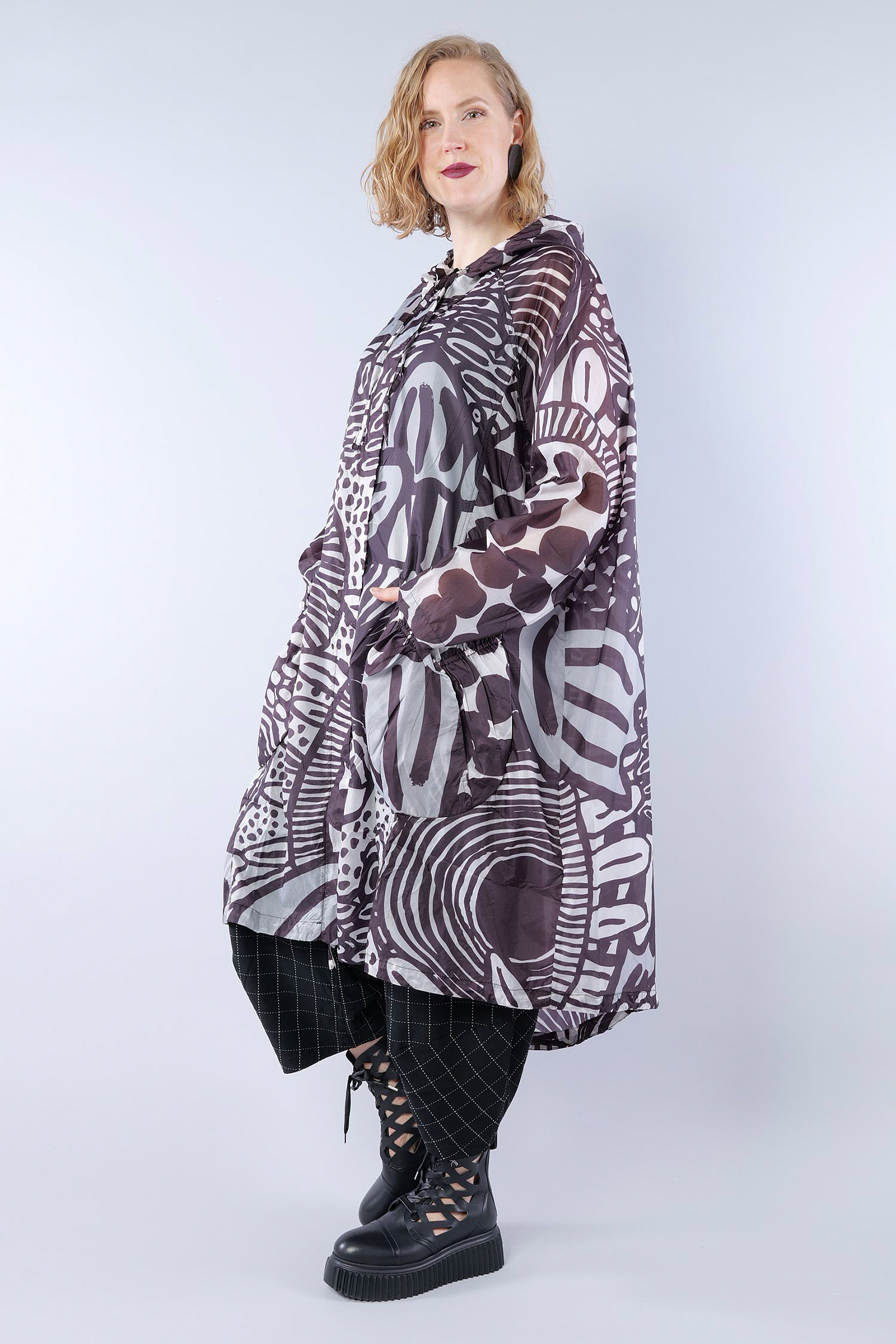 Oversize Regenmantel - Black print - 1263211202