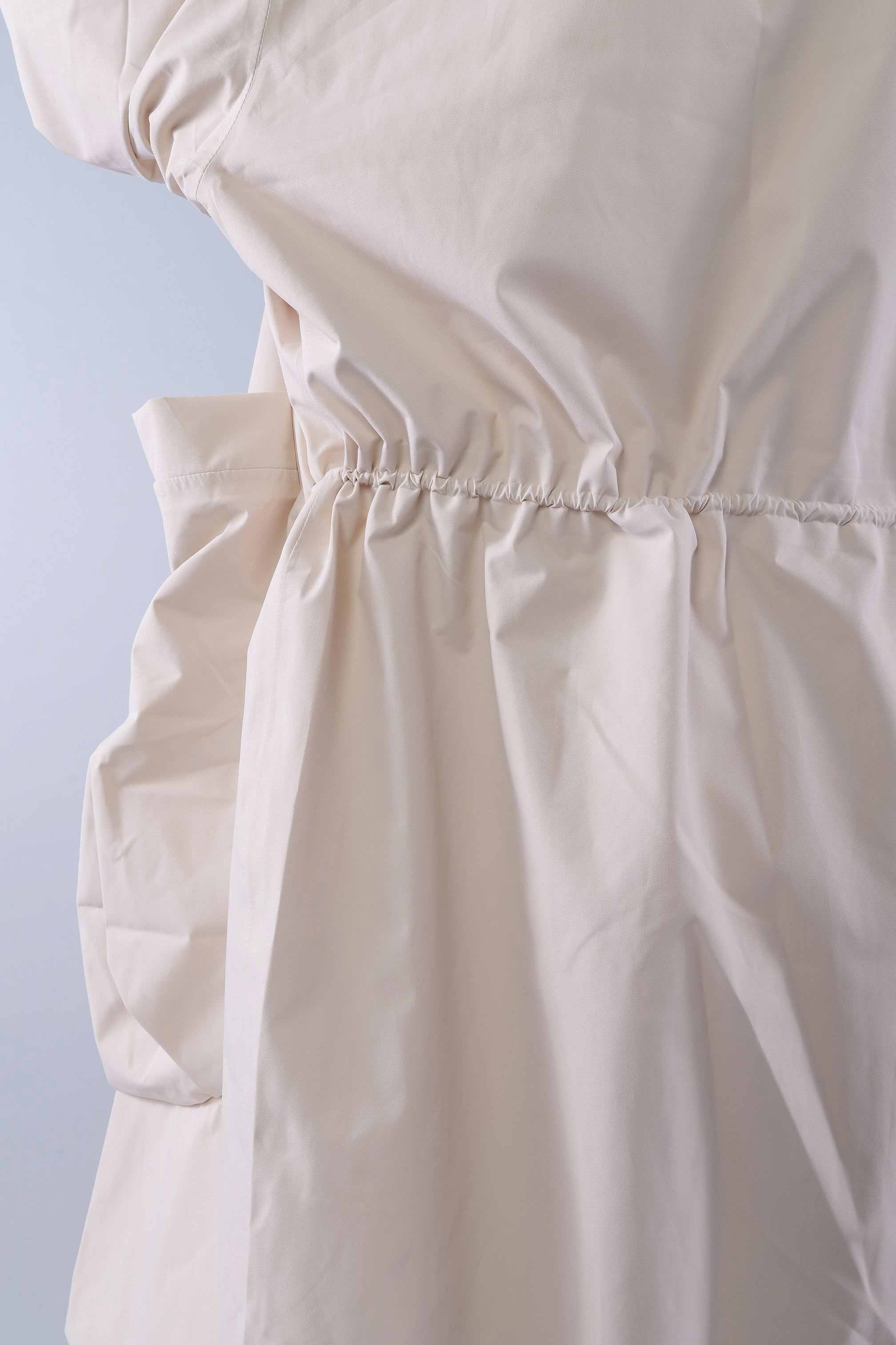 - Unterhalb der Taille ein Zugband horizontal zum raffen