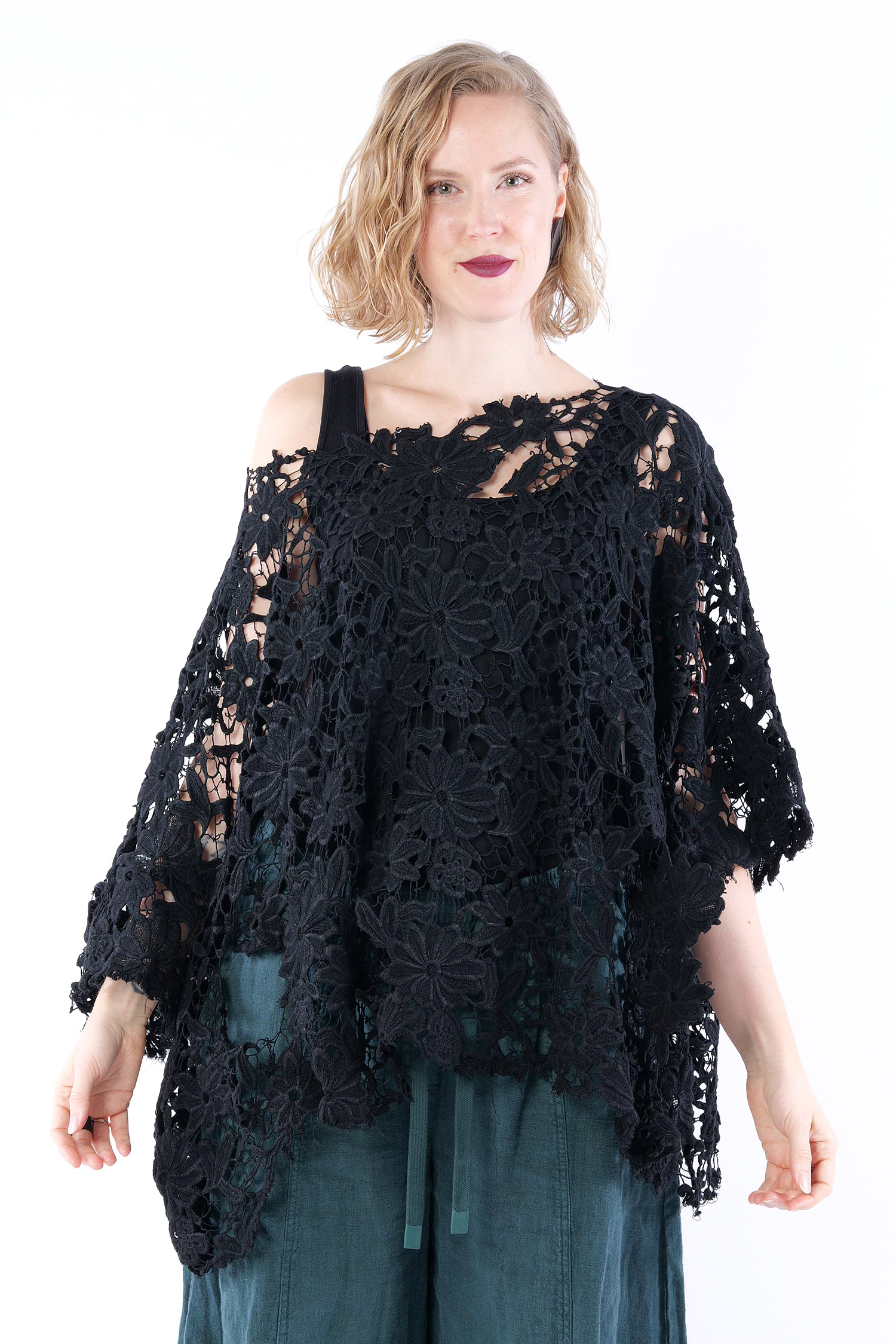 Oversize Spitzenshirt - Black gloss - 1262090627