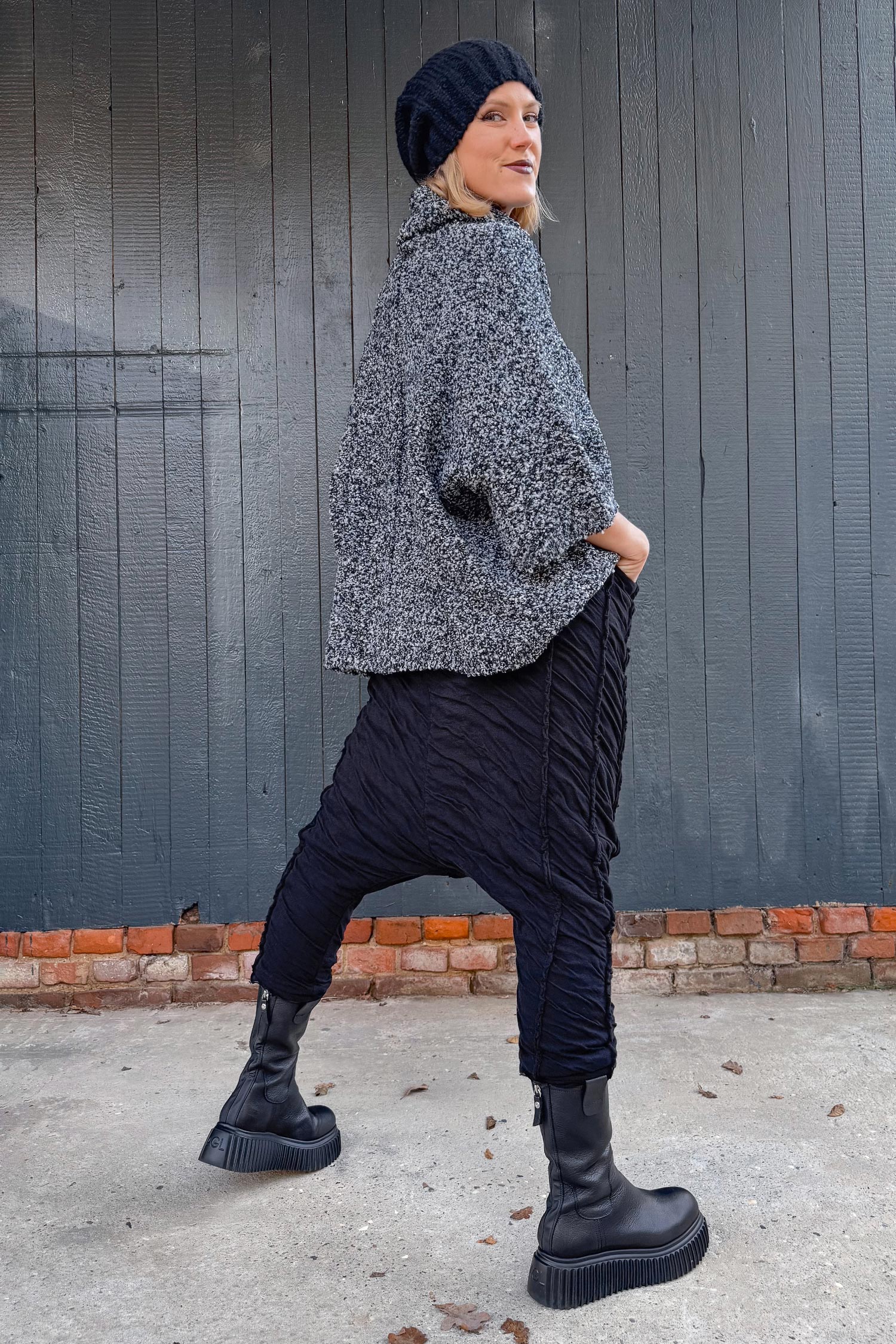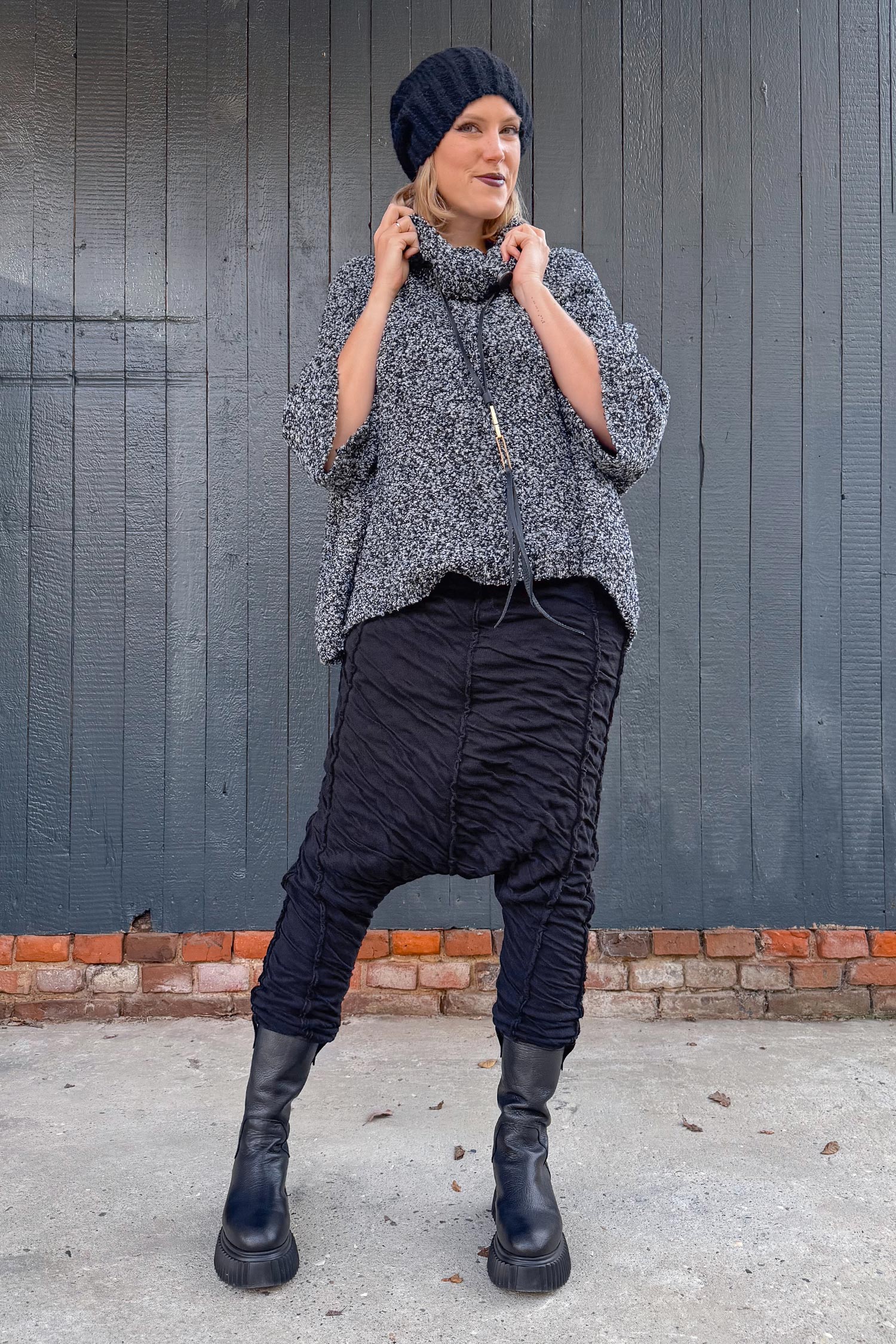 - Strukturierter Bouclé-Wollstrick