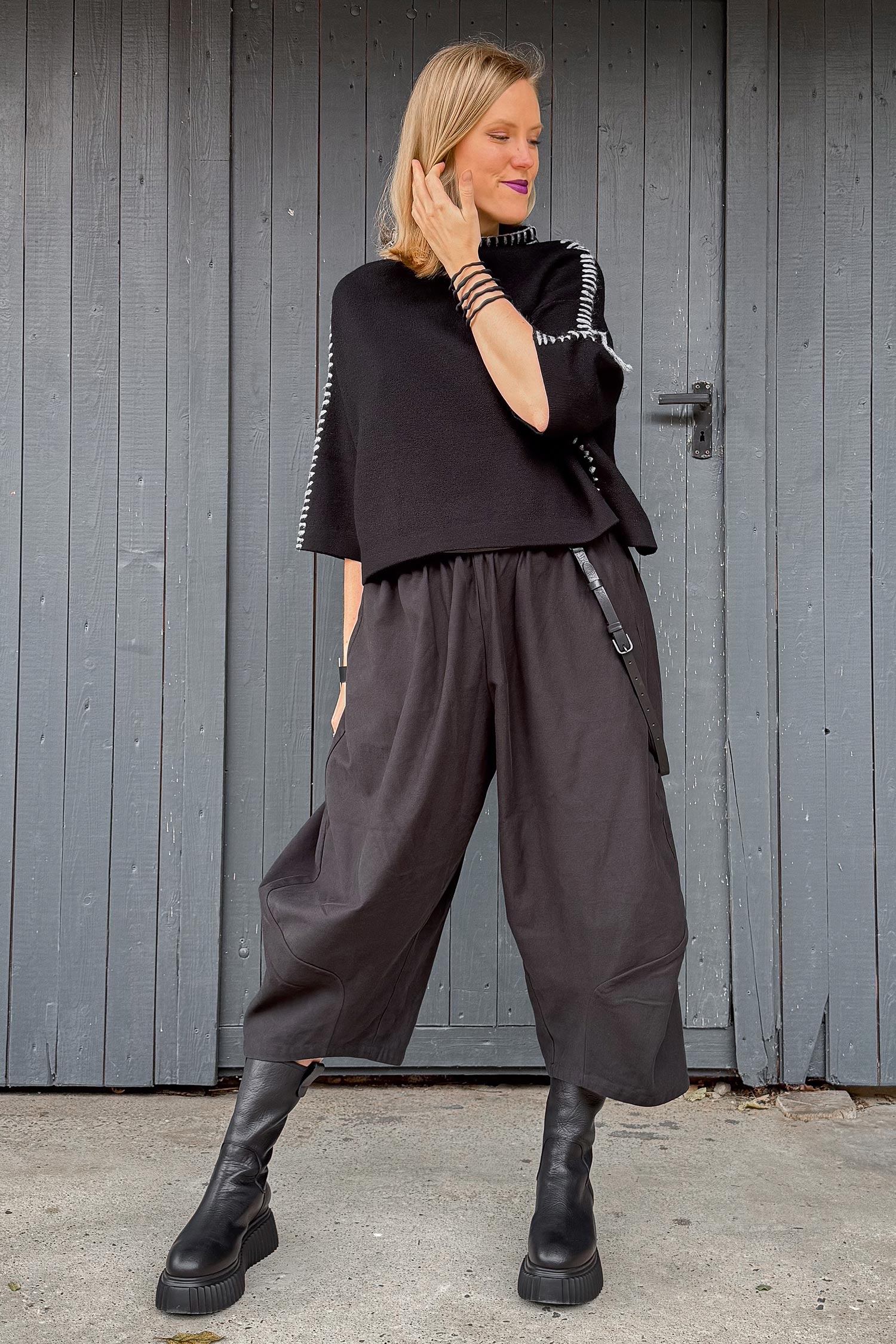 Kurzer oversize Strickpullover mit Ziernähten von Moyuru.