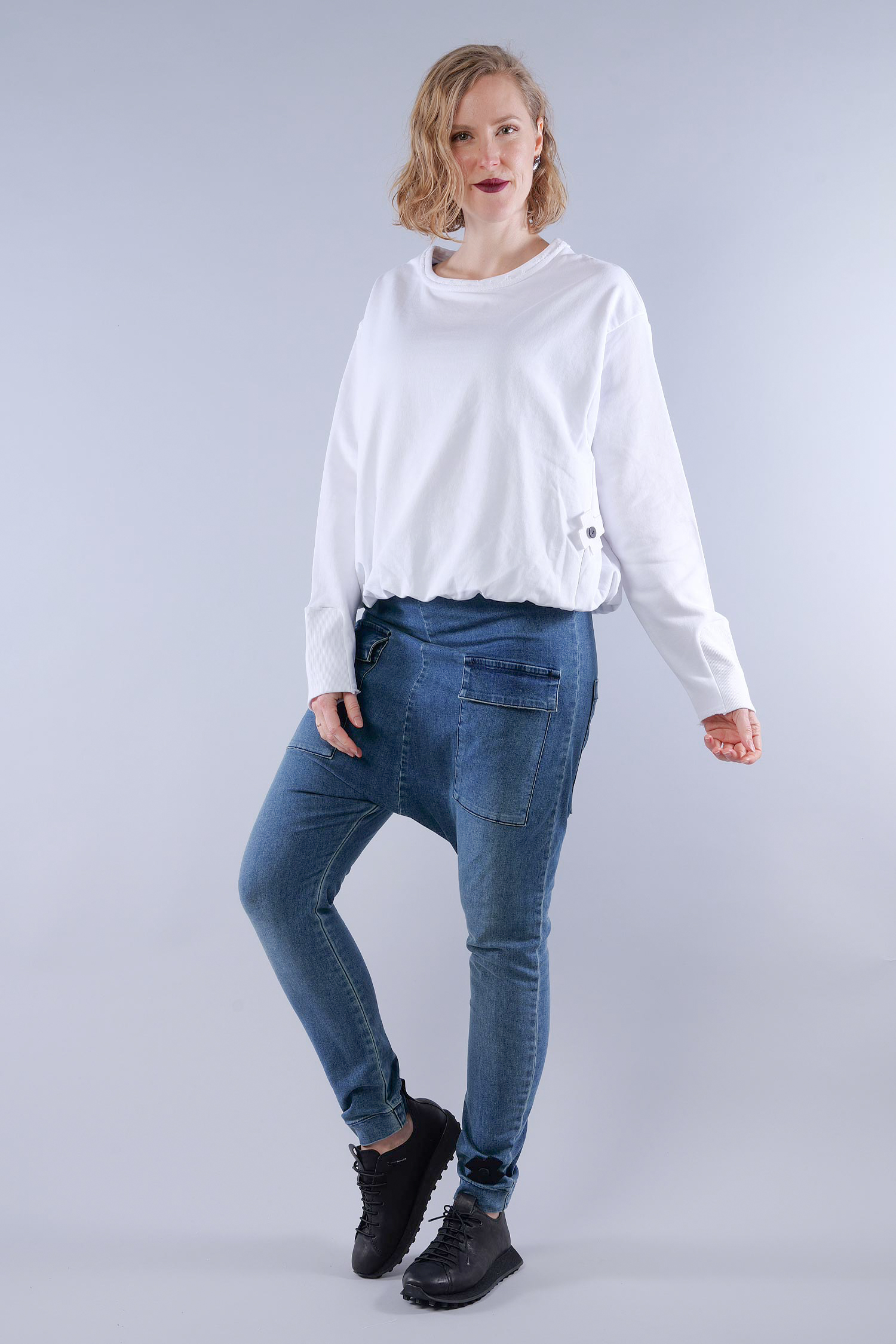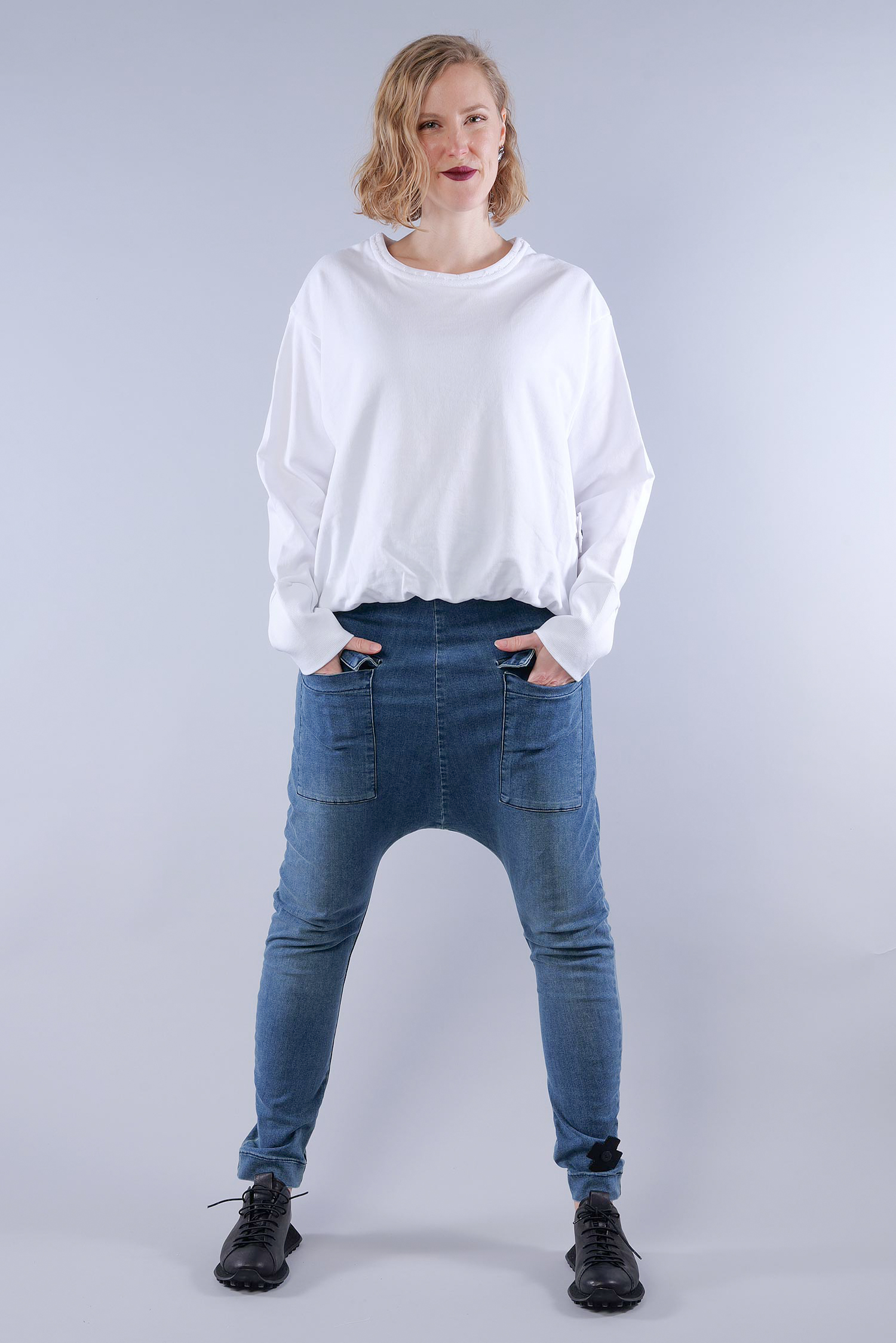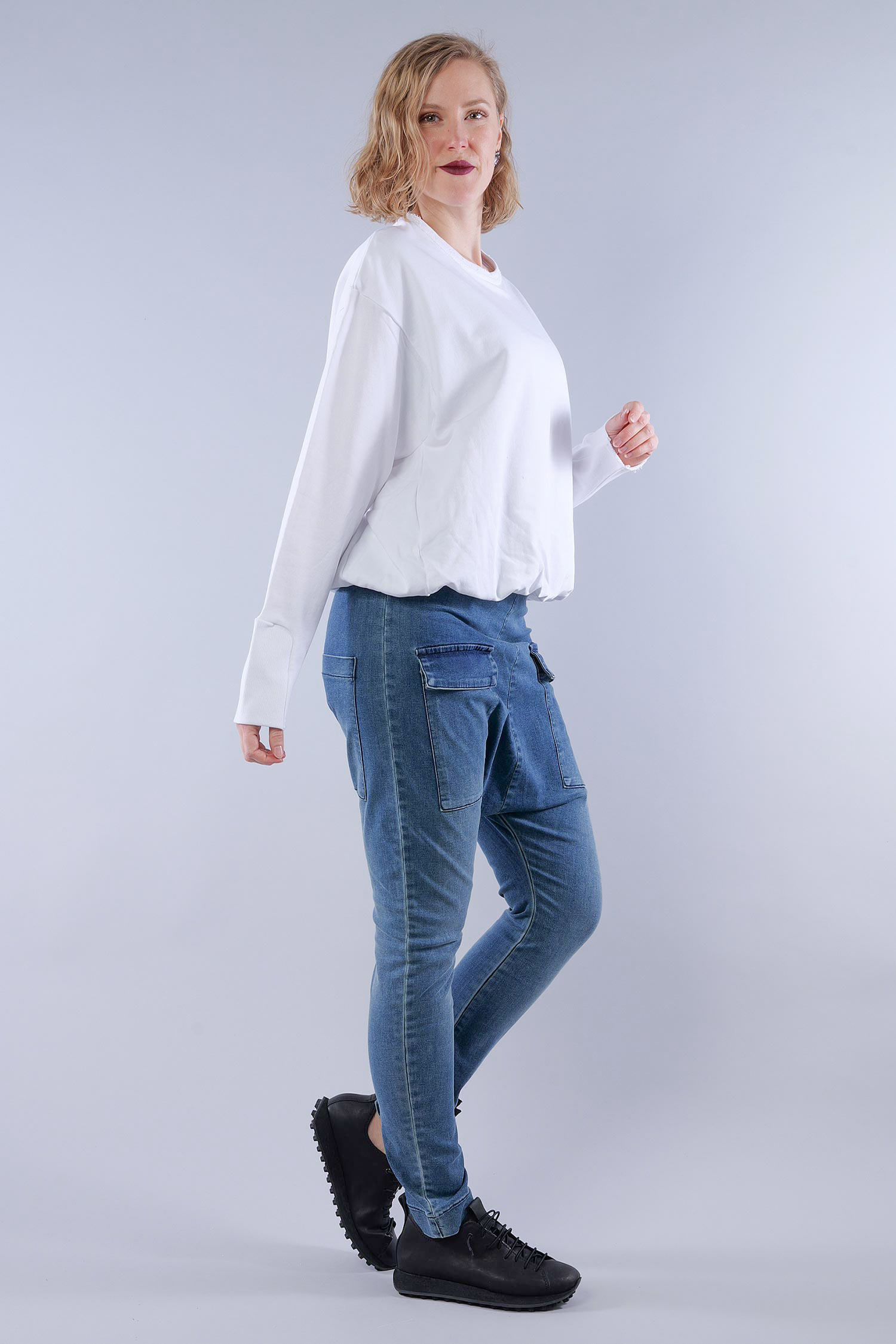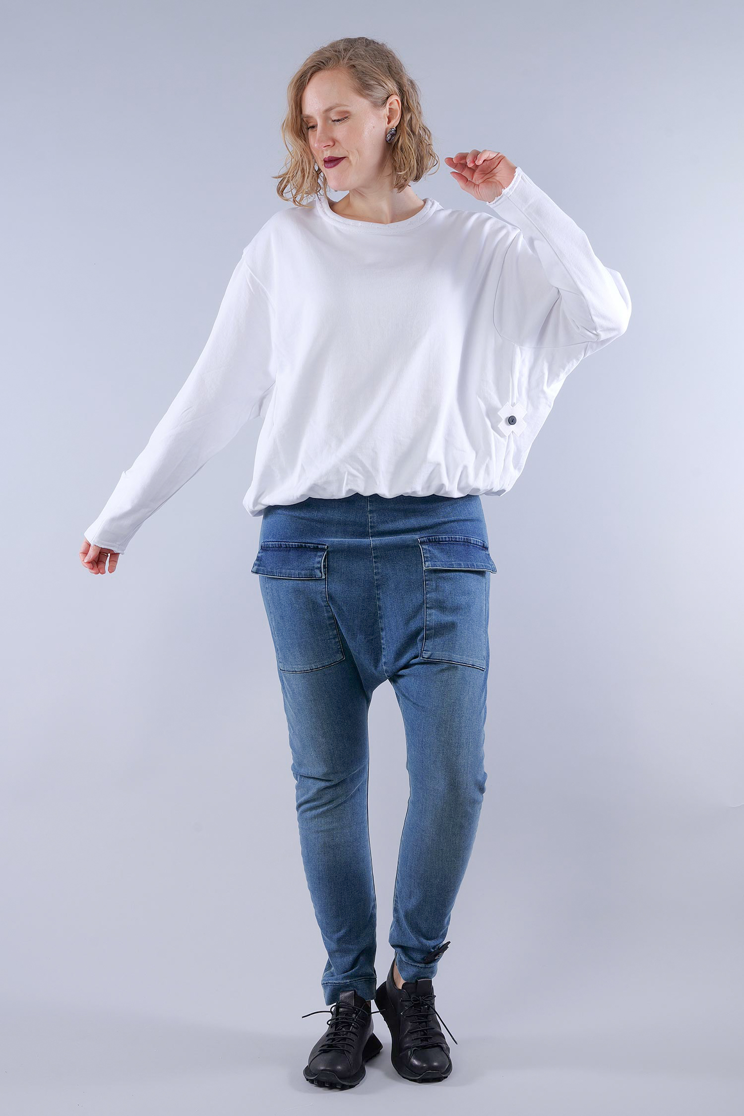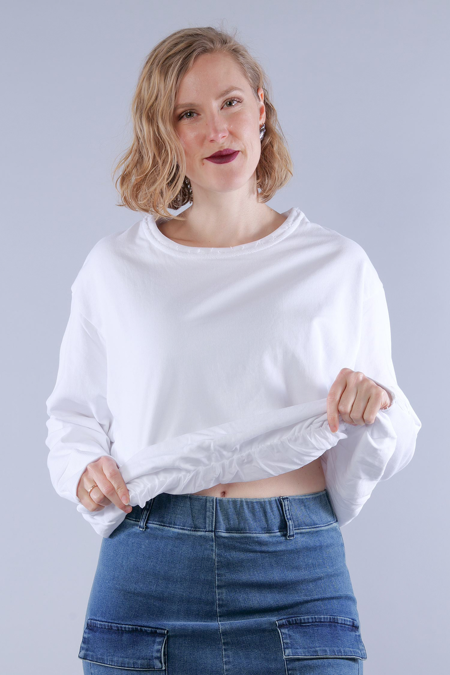 Größe L: Brust = 77 cm / Länge = 59 cm / Saum ungedehnt = 38 cm, gedehnt = 72 cm