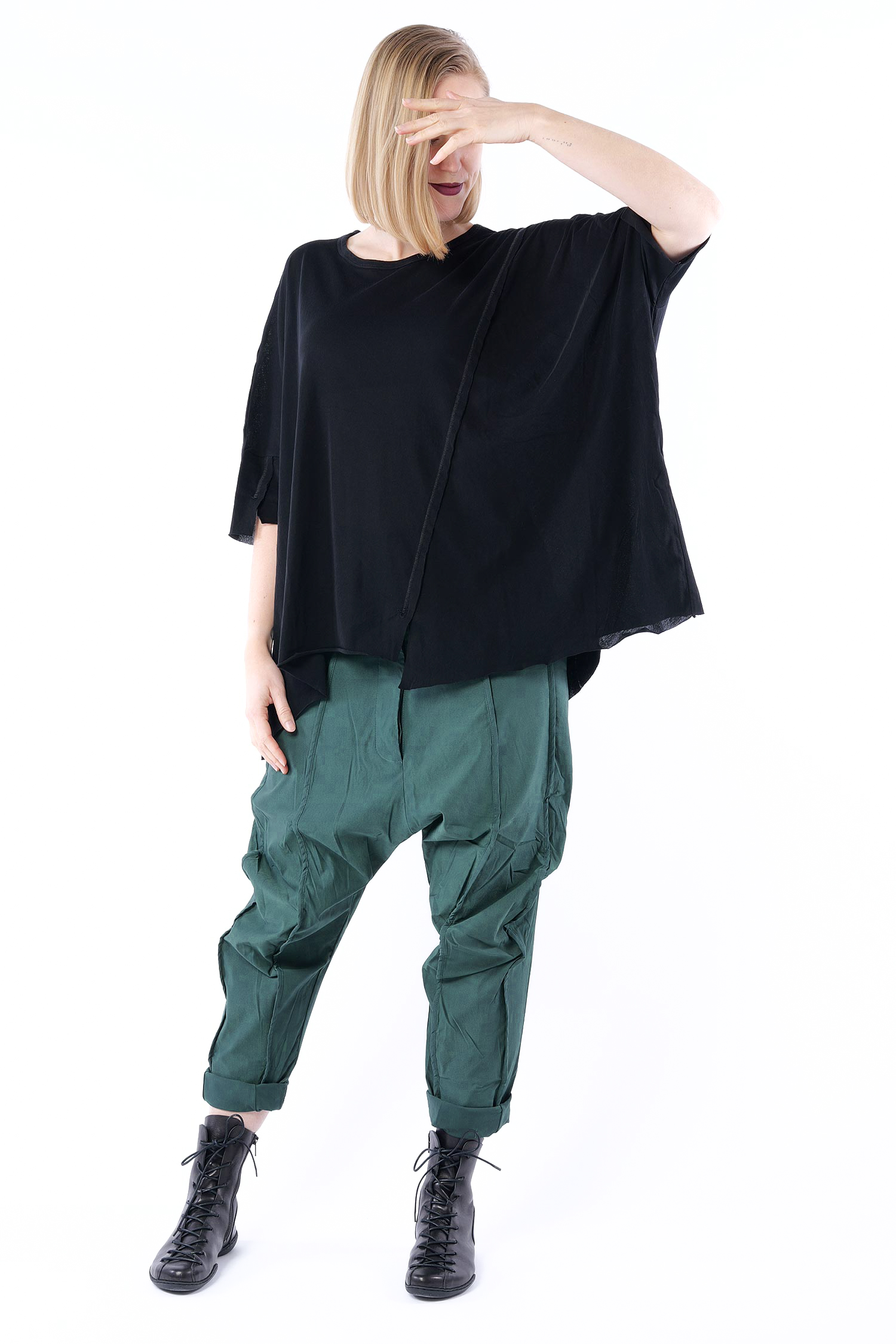 Sehr weites oversize T-Shirt mit Ziernähten und weitem Rundhalsausschnitt Rundholz Black Label.