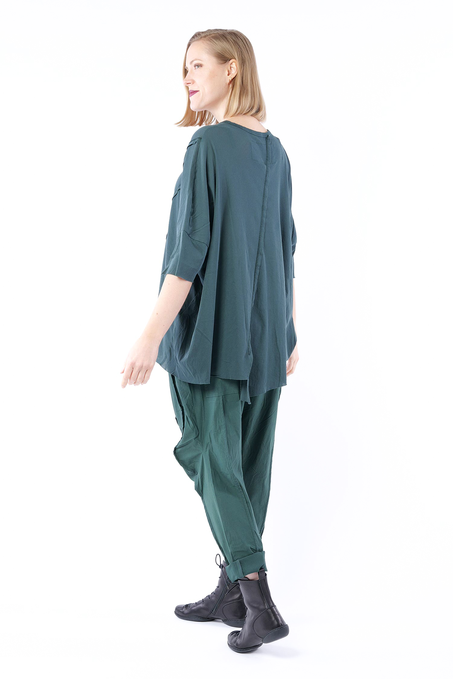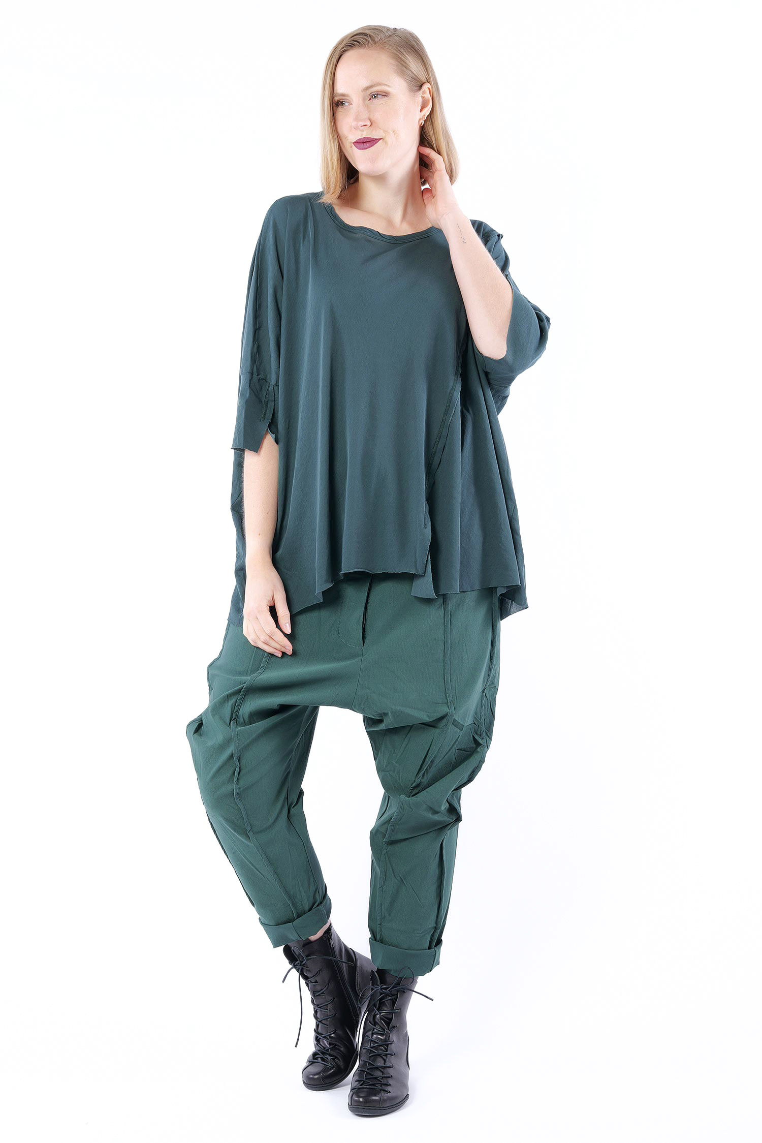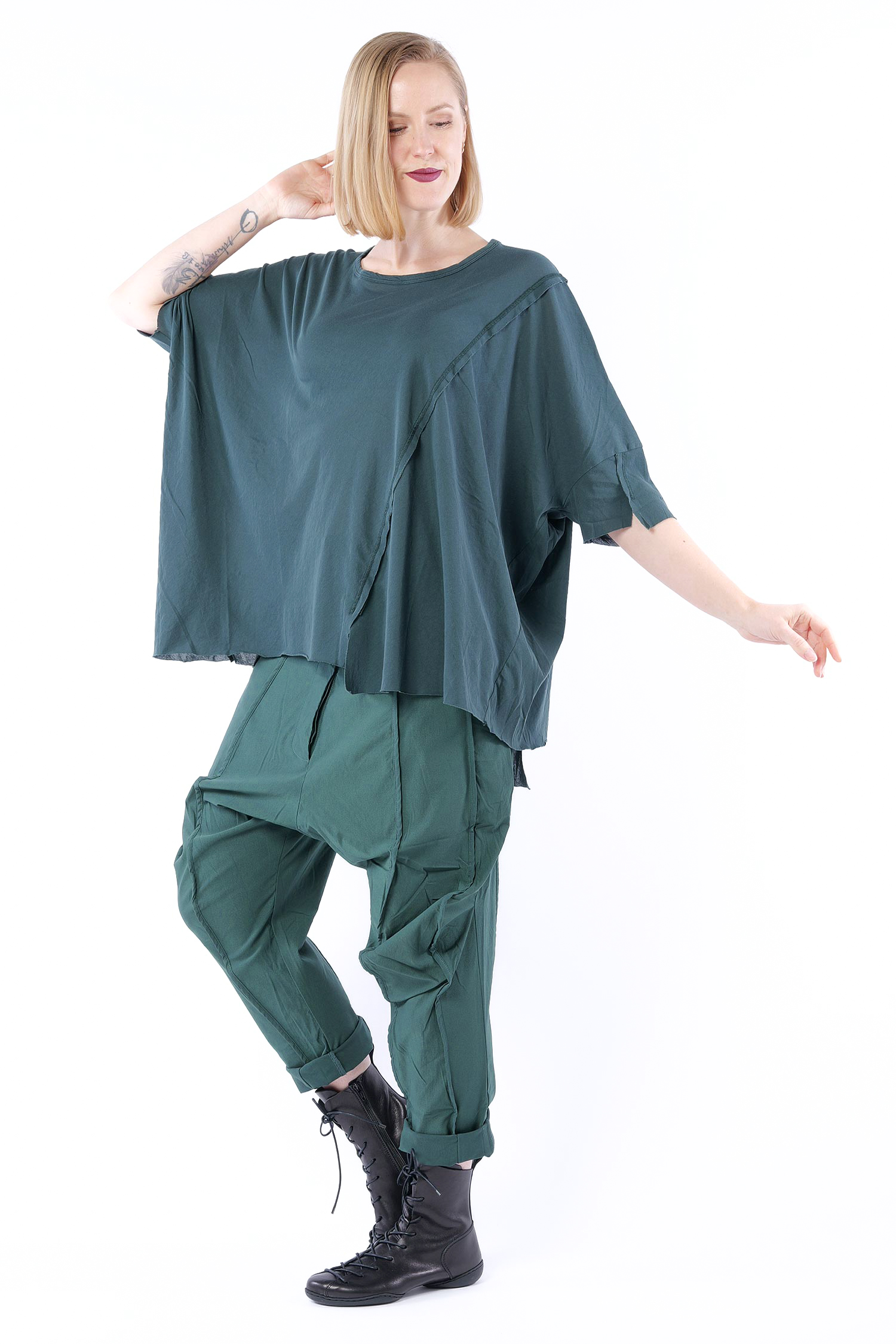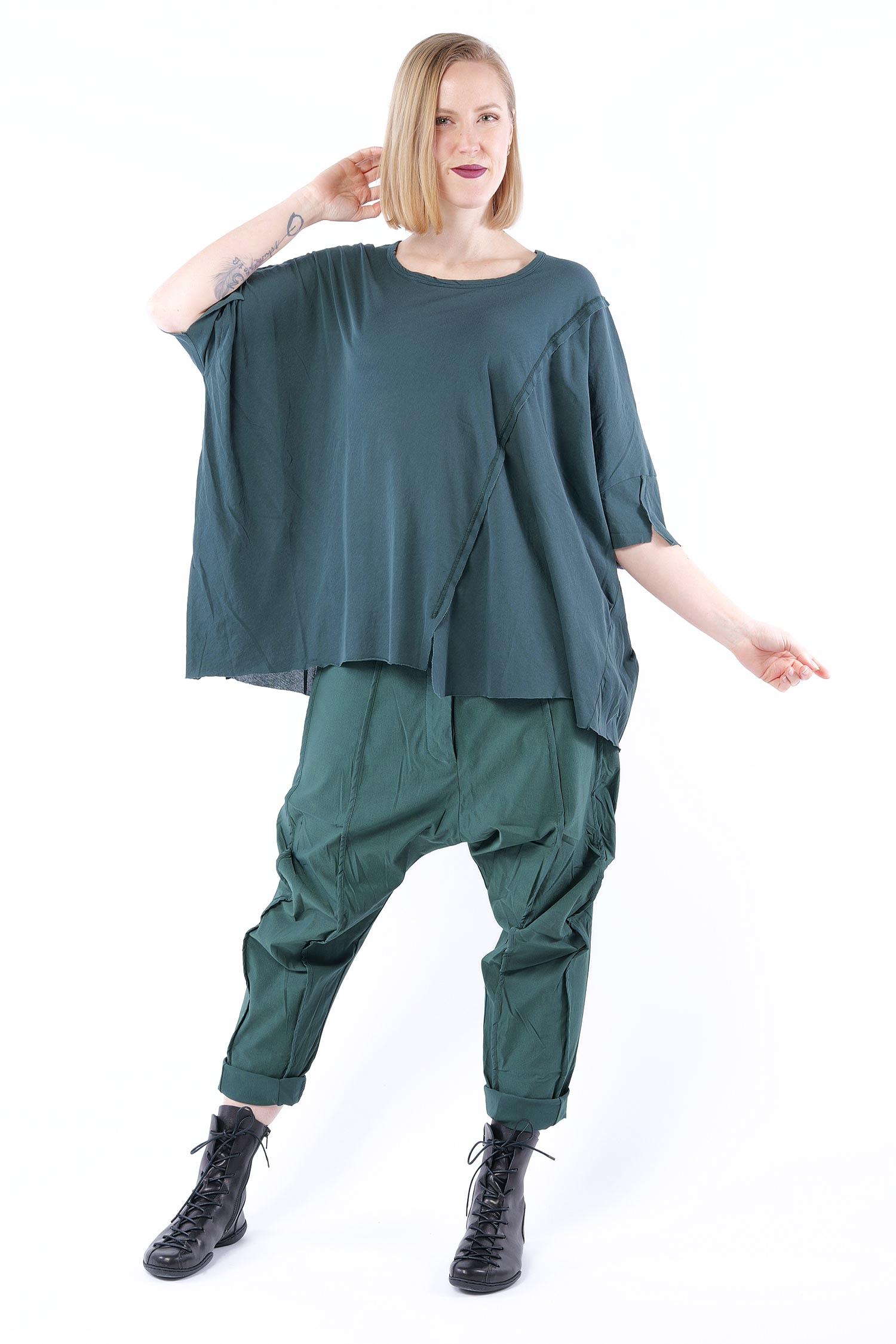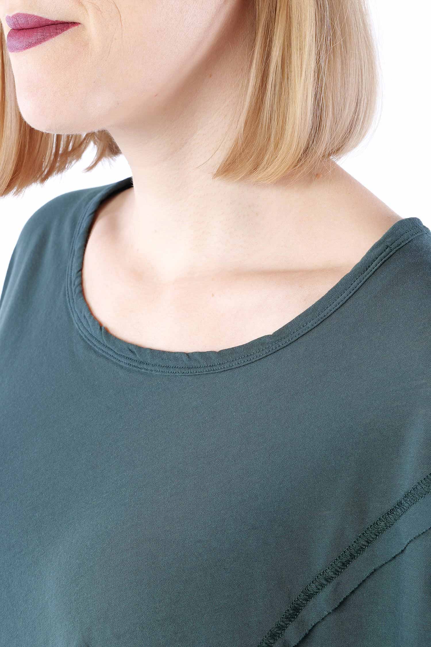 Details: - Weit und kastig - Ziernähte nach außen - Weiter, halsferner Rundhalsausschnitt - Griffiges T-Shirt Jersey - Asymmetrischer Saum mit kleinen Schlitzen - Überschnittene Schulter - Halblange Ärmel mit asymmetrischem Saum - Ärmeln und Saum offene Kanten - Ärmel geschlitzt - Hinten etwas länger