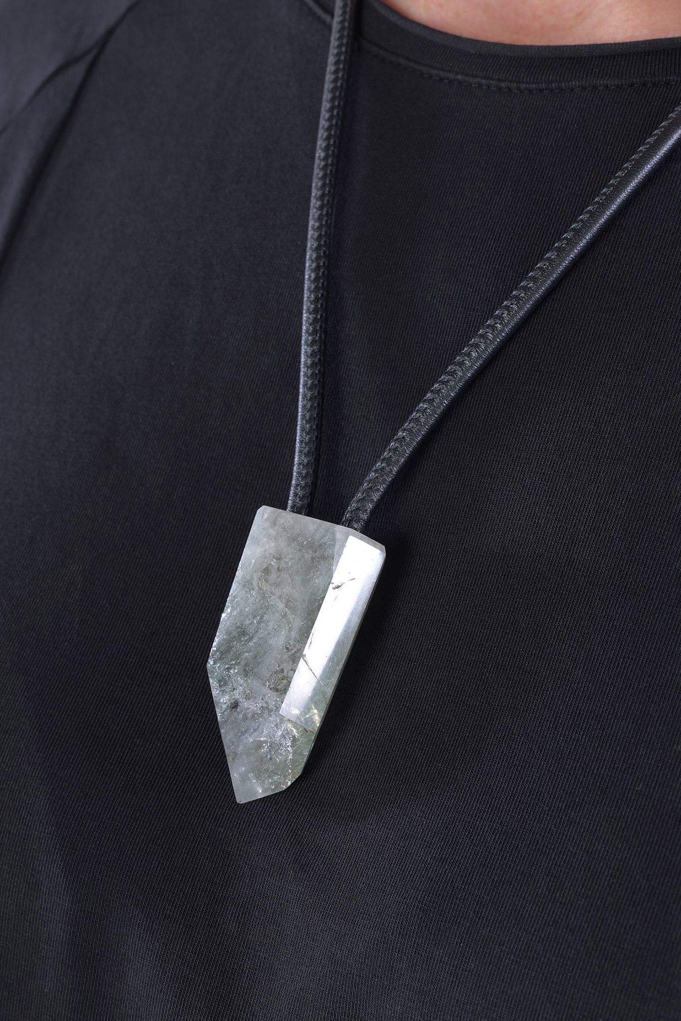 Lederkette mit Prasiolit-Anhänger von Darkgem.