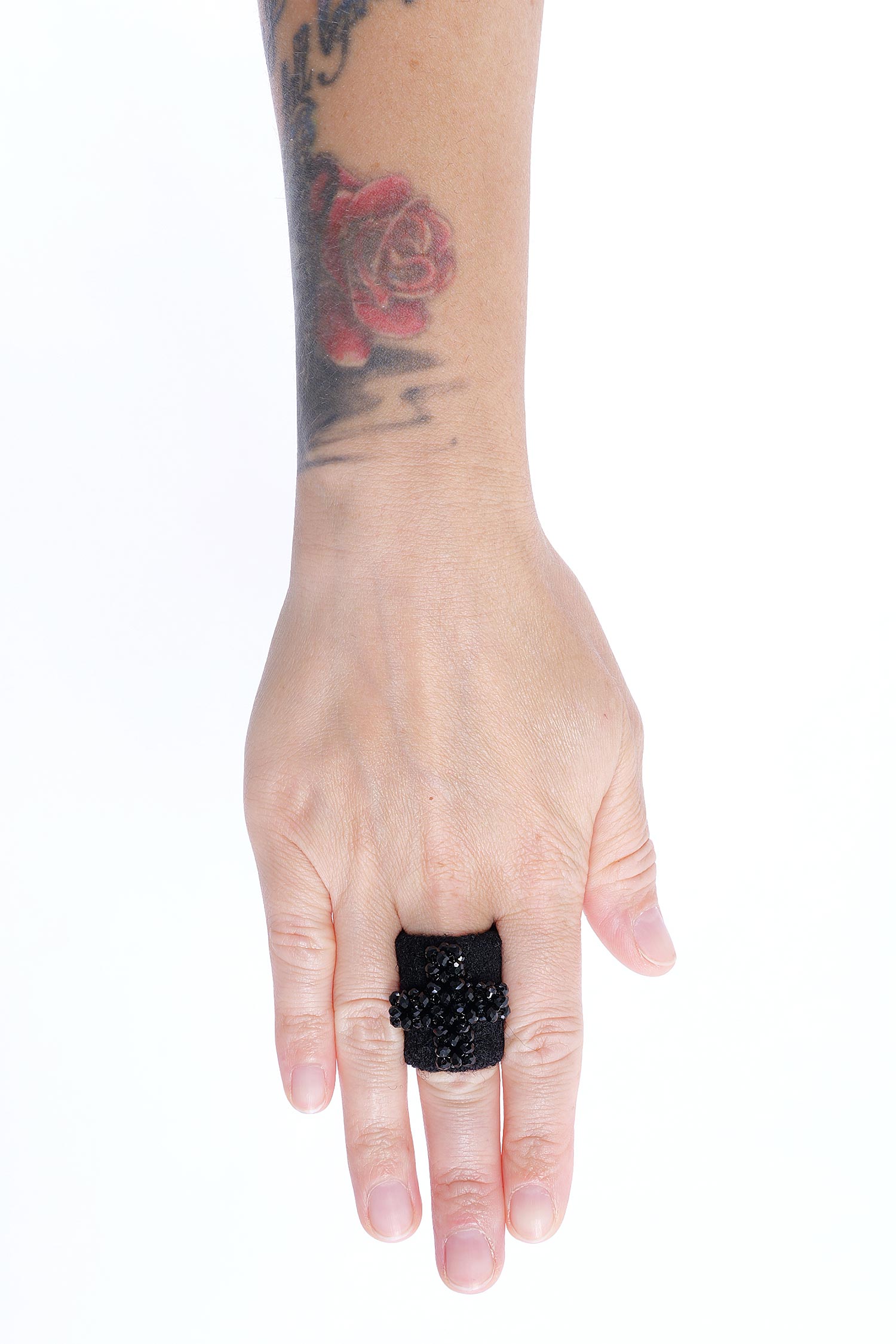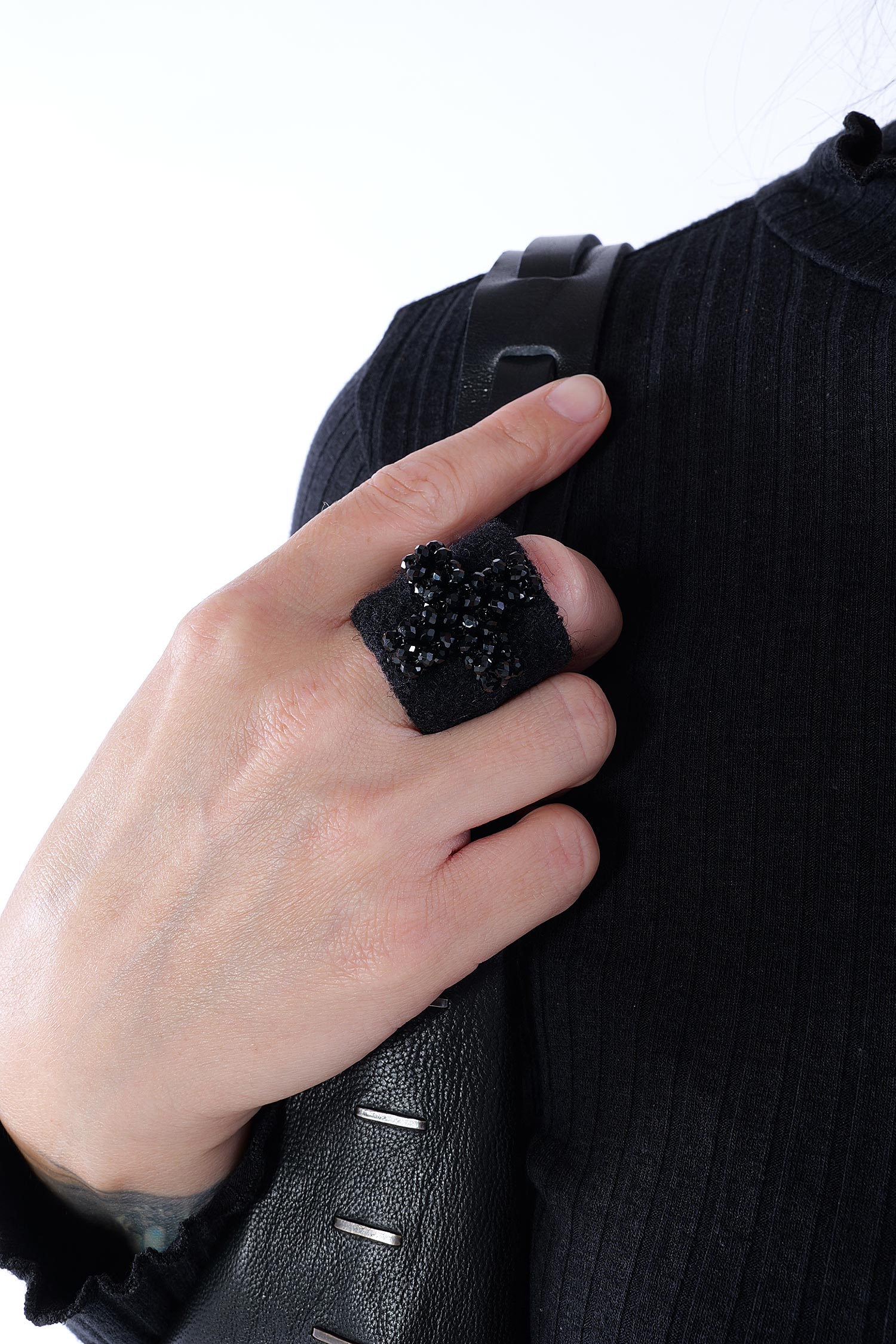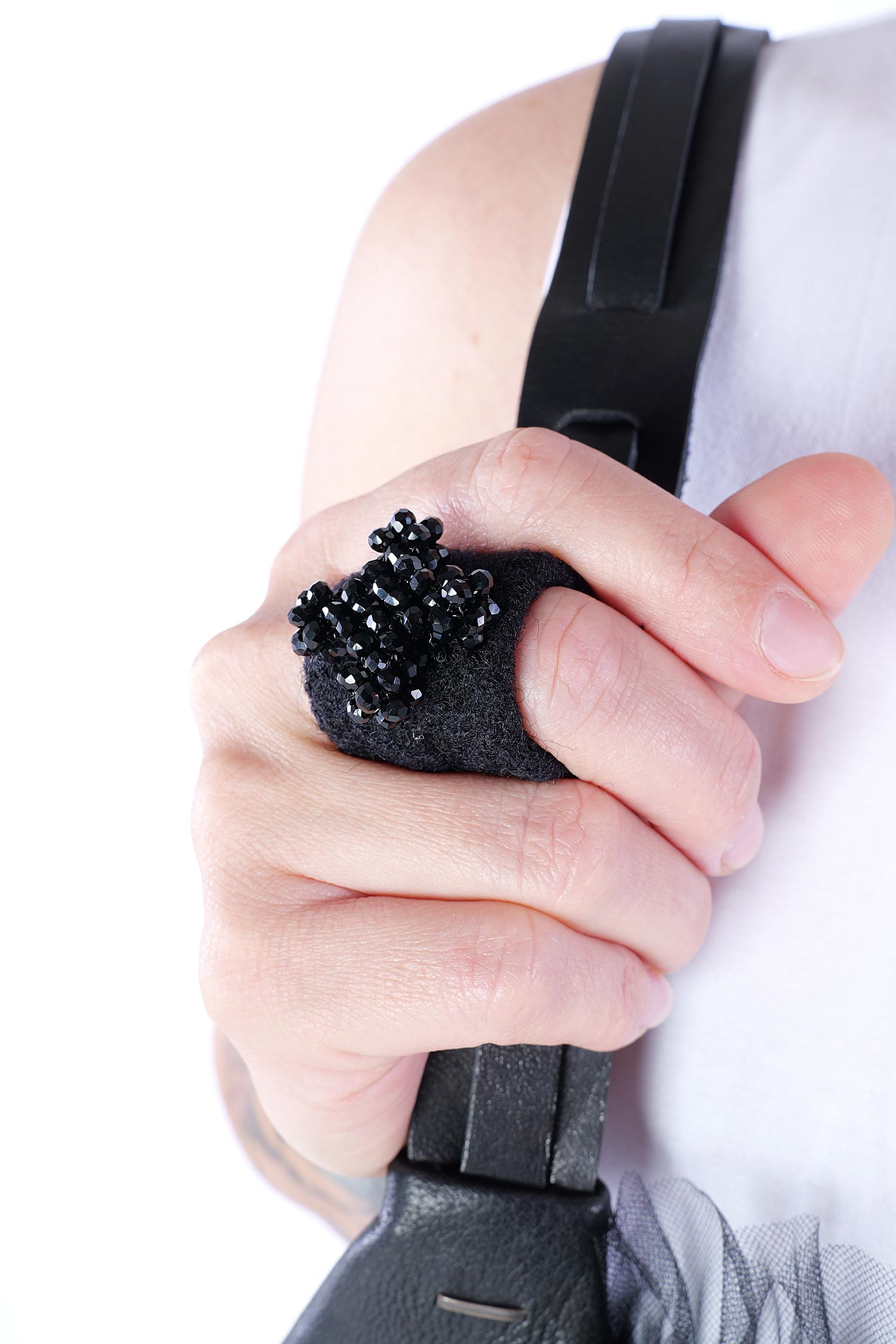 Ring aus Wollfilz mit einem Plus aus favettiertem Glas von Plü · Pluslavie.