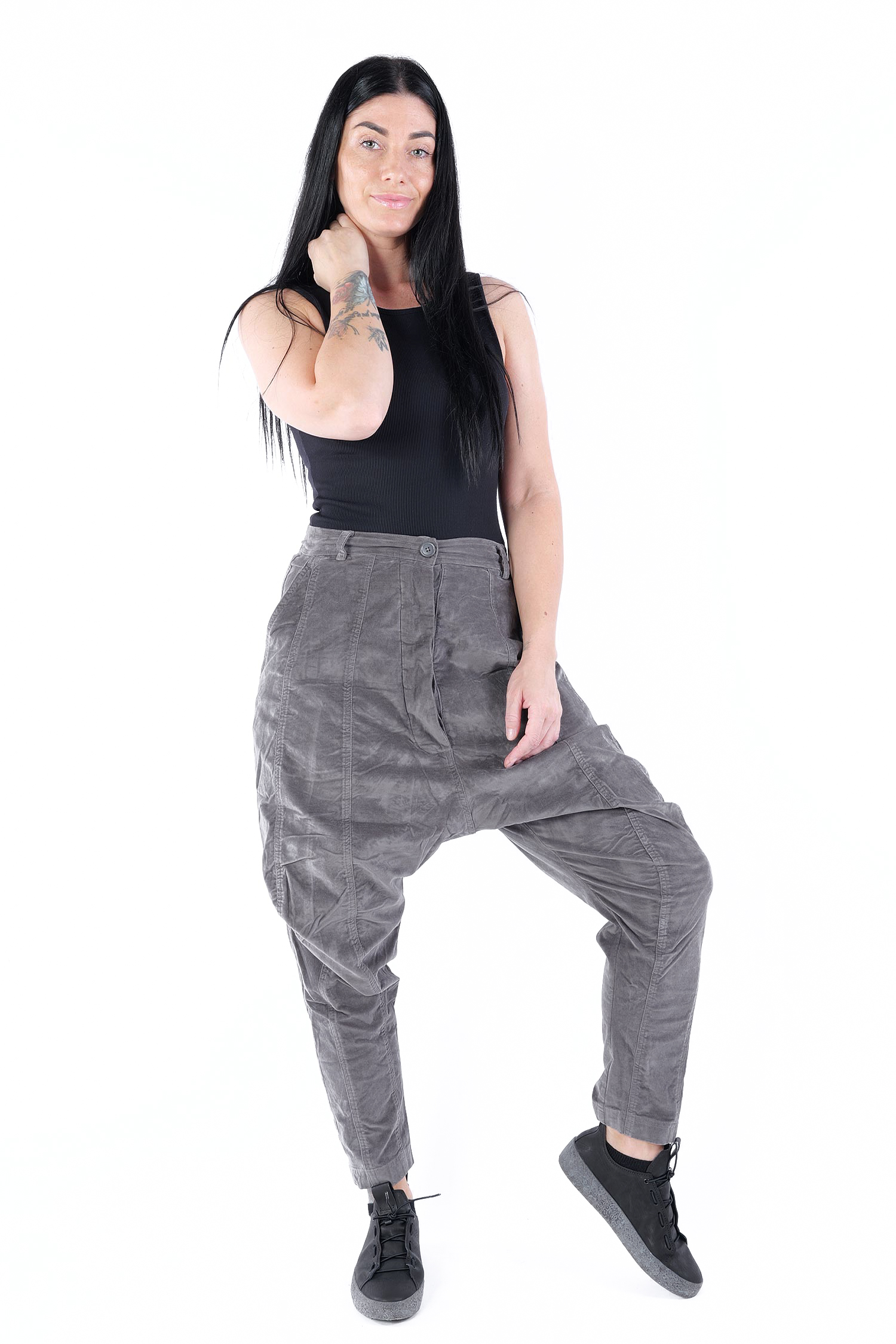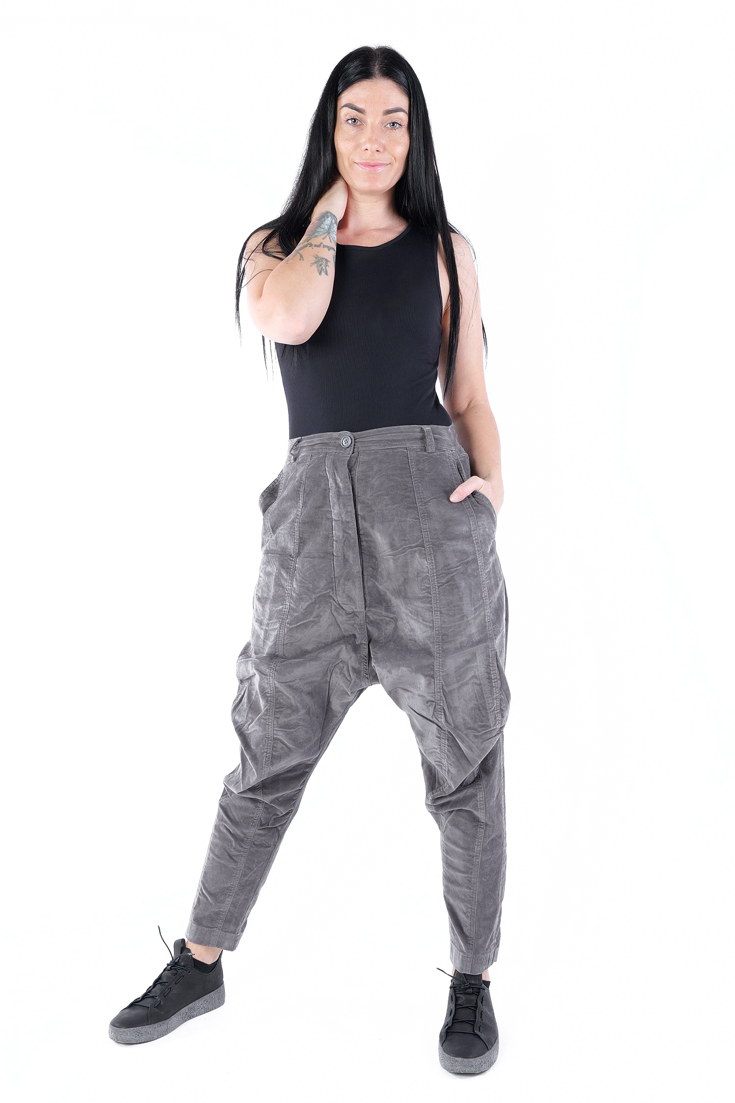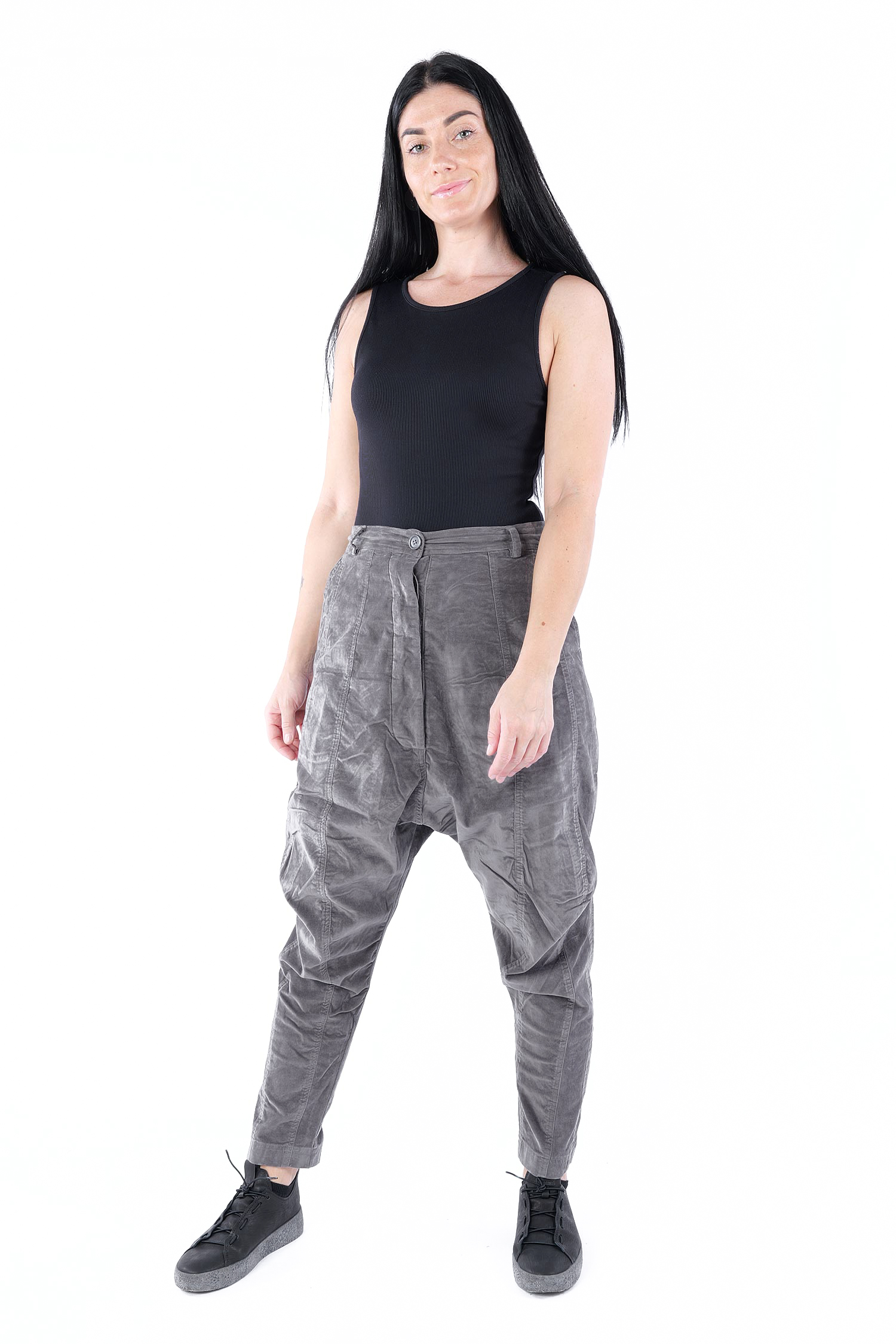 Samthose mit tiefem Schritt - Dark grey - 2253230104