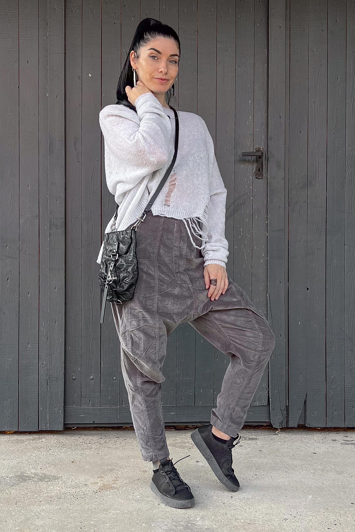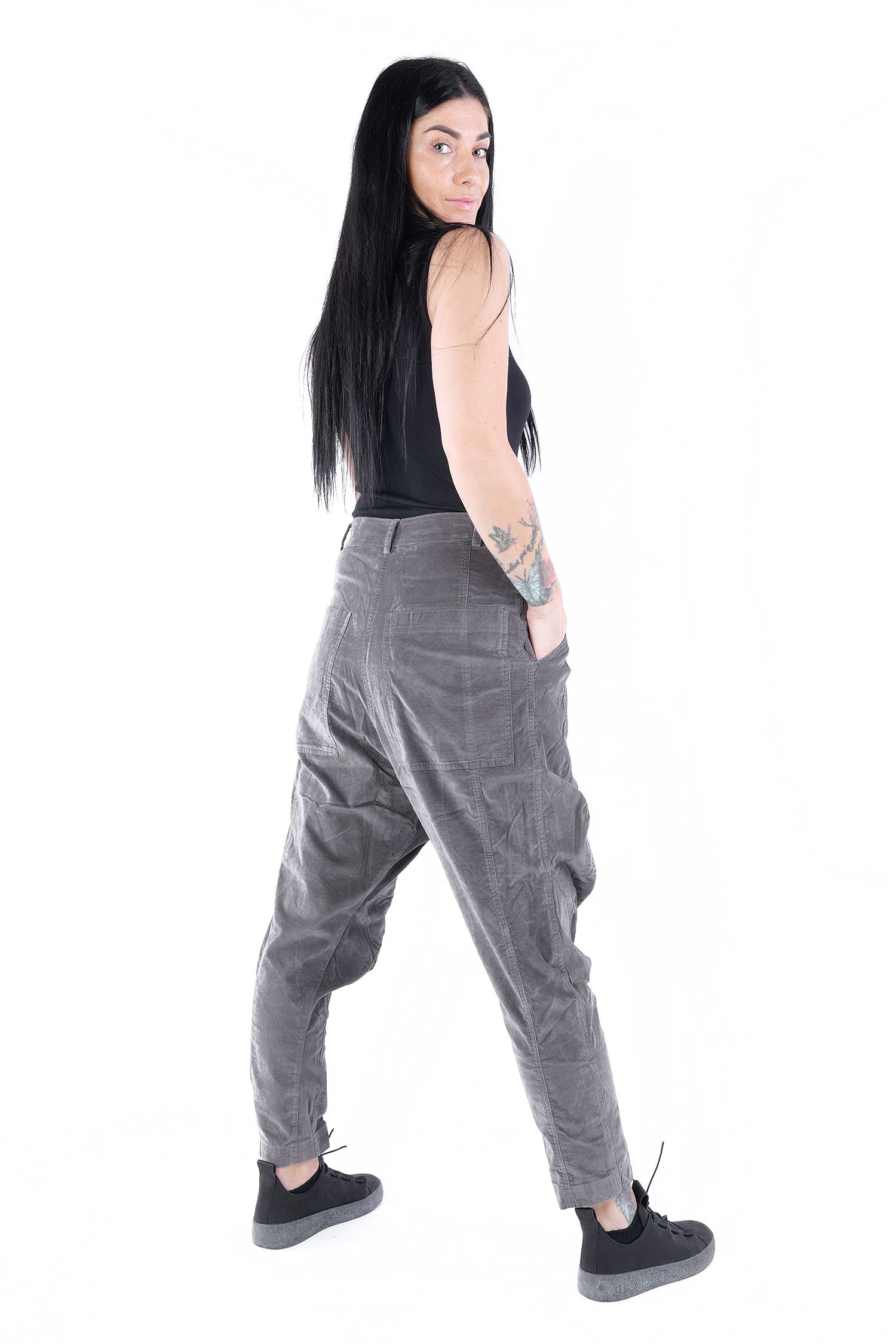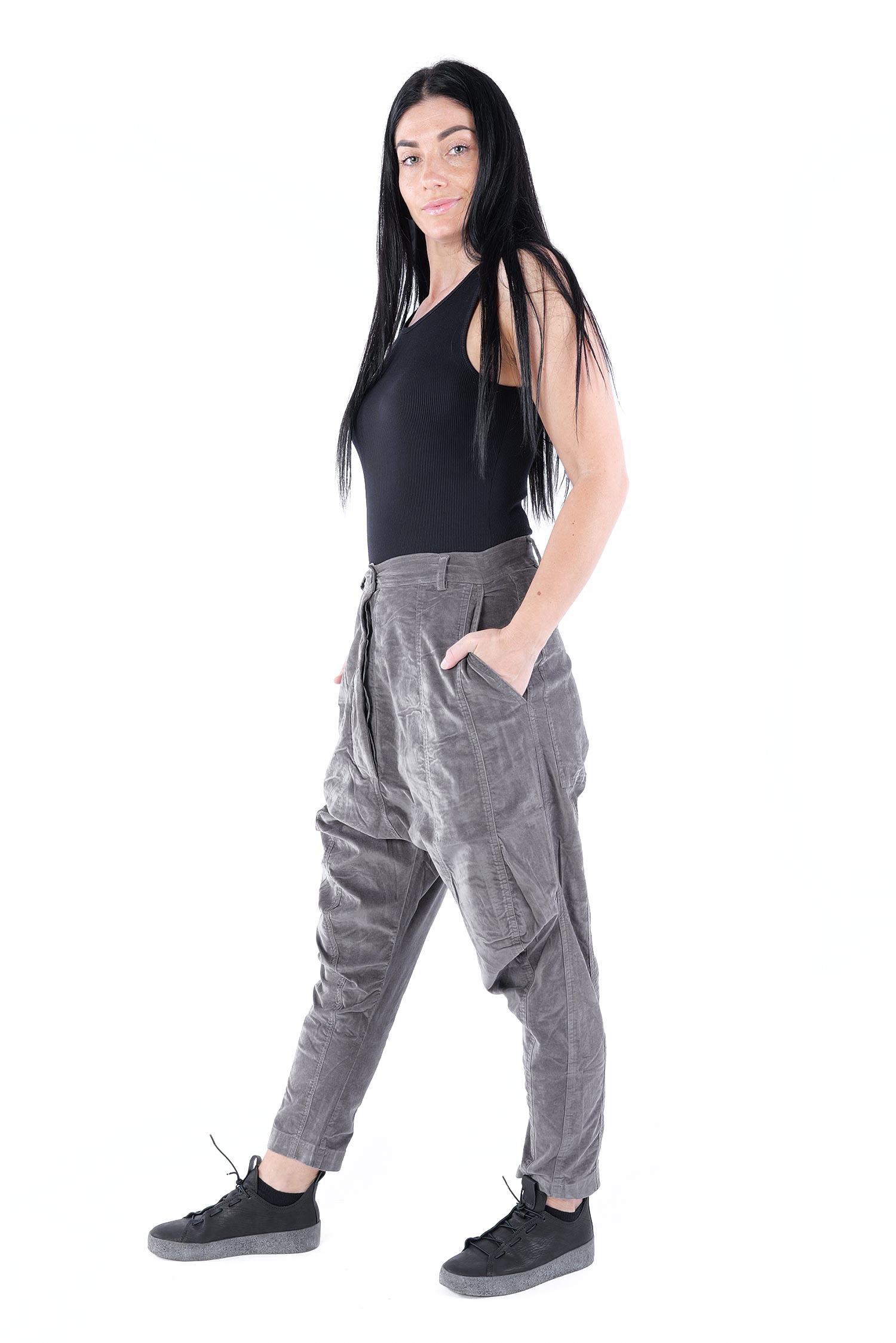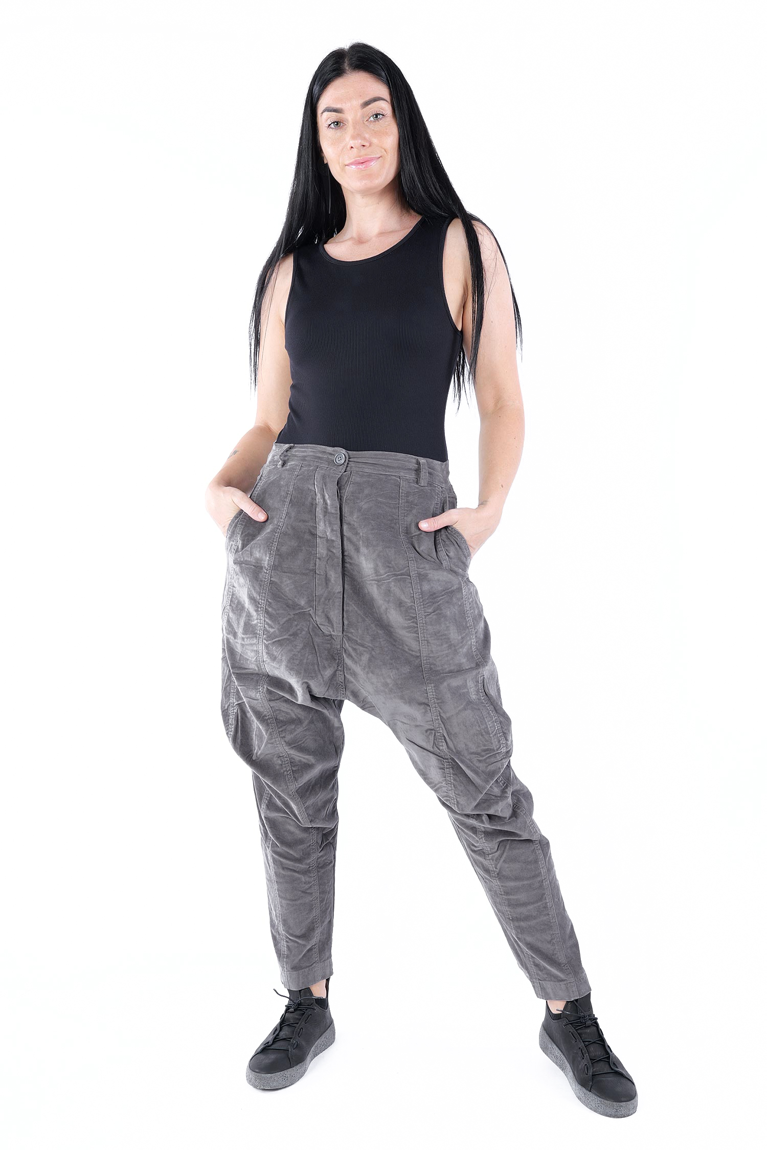 Samthose mit tiefem Schritt - Dark grey - 2253230104