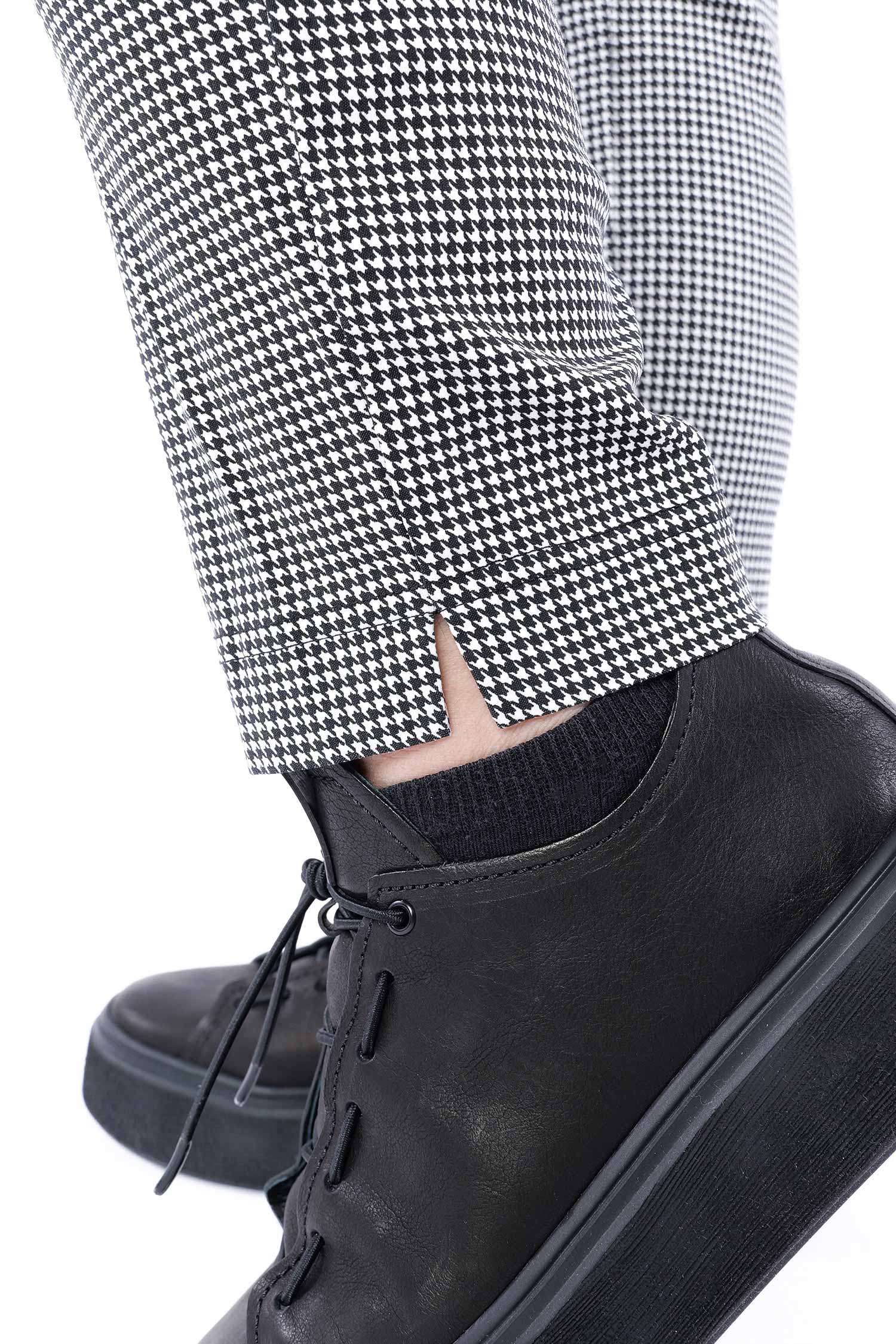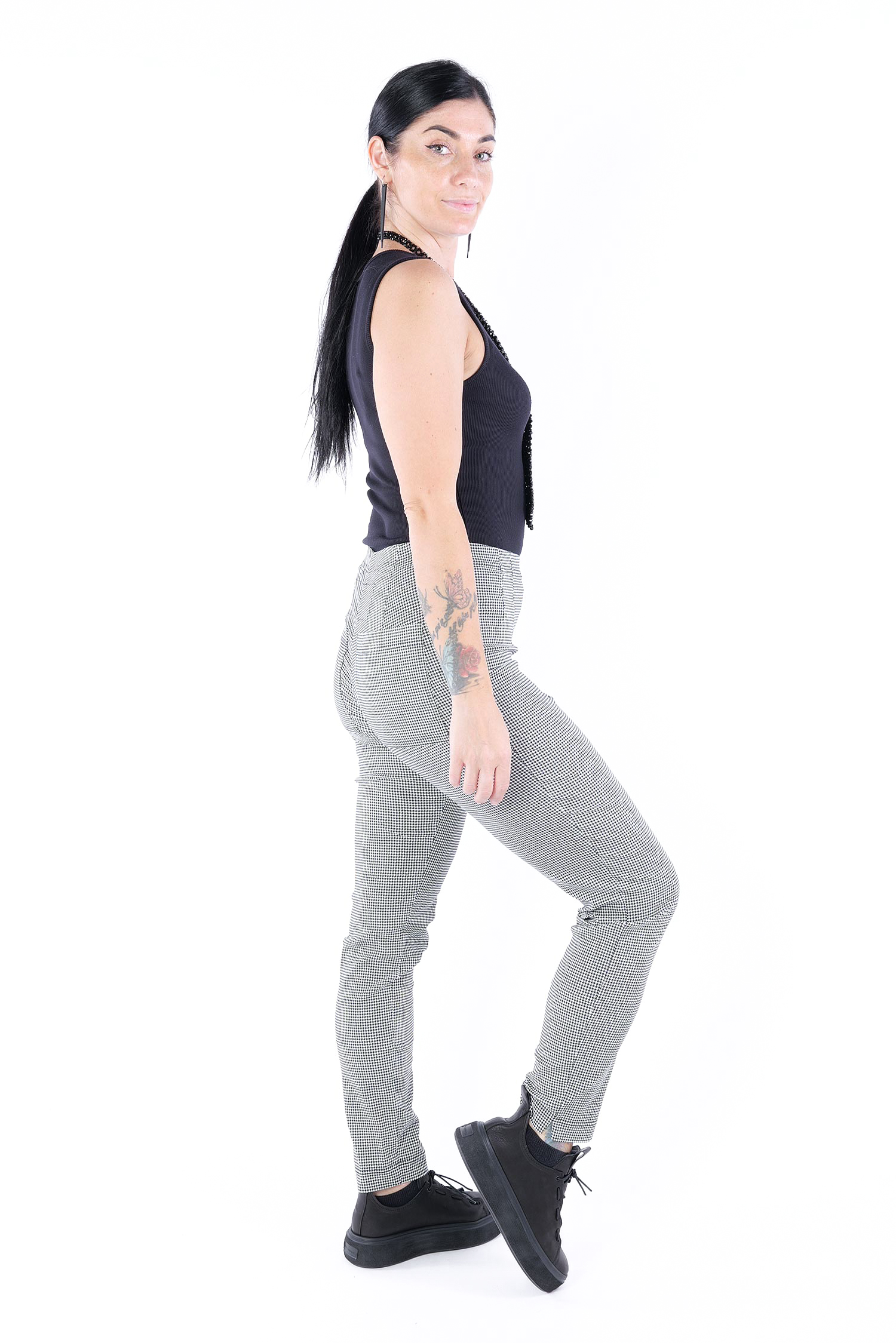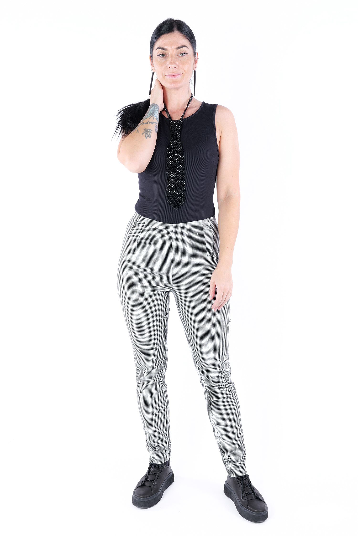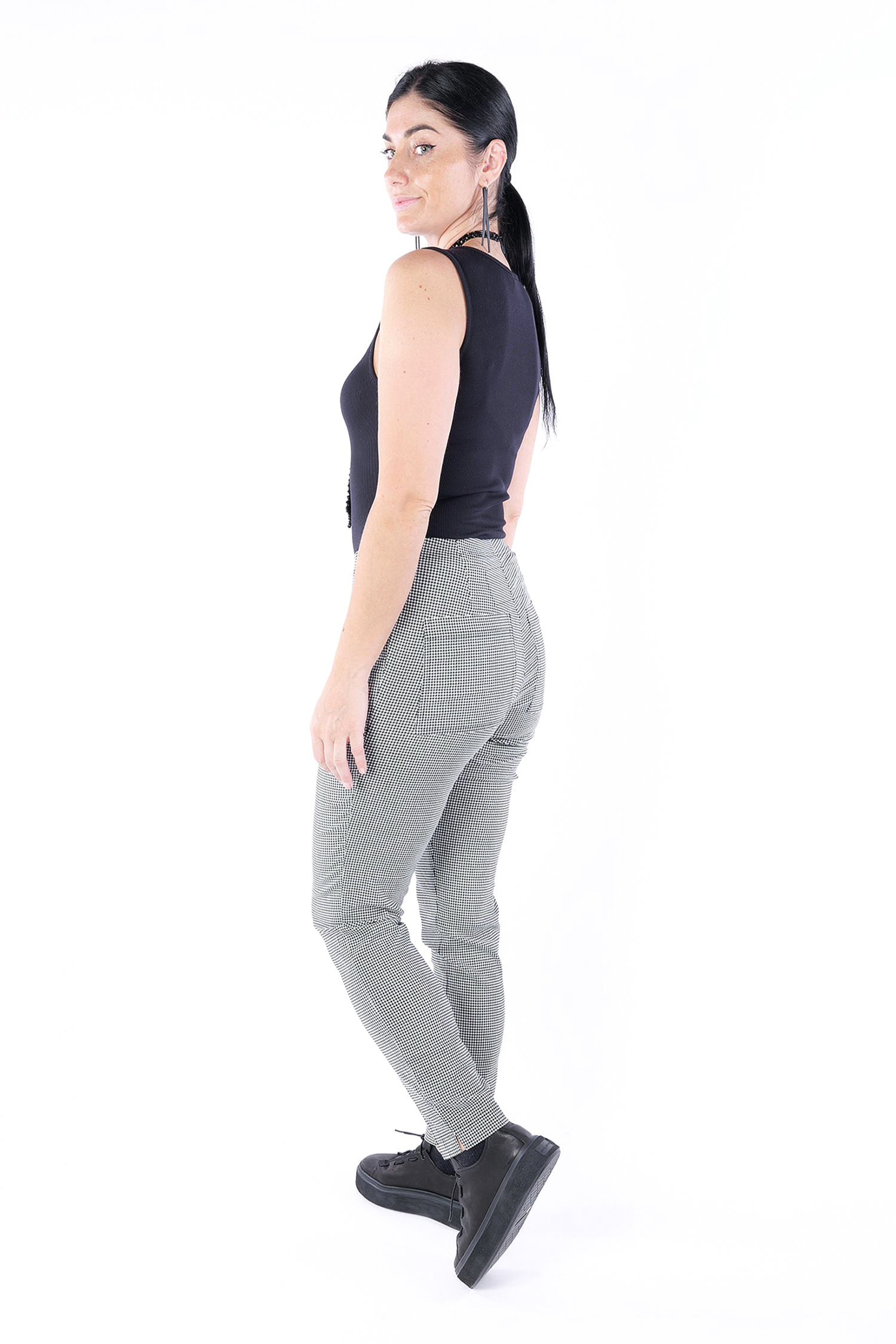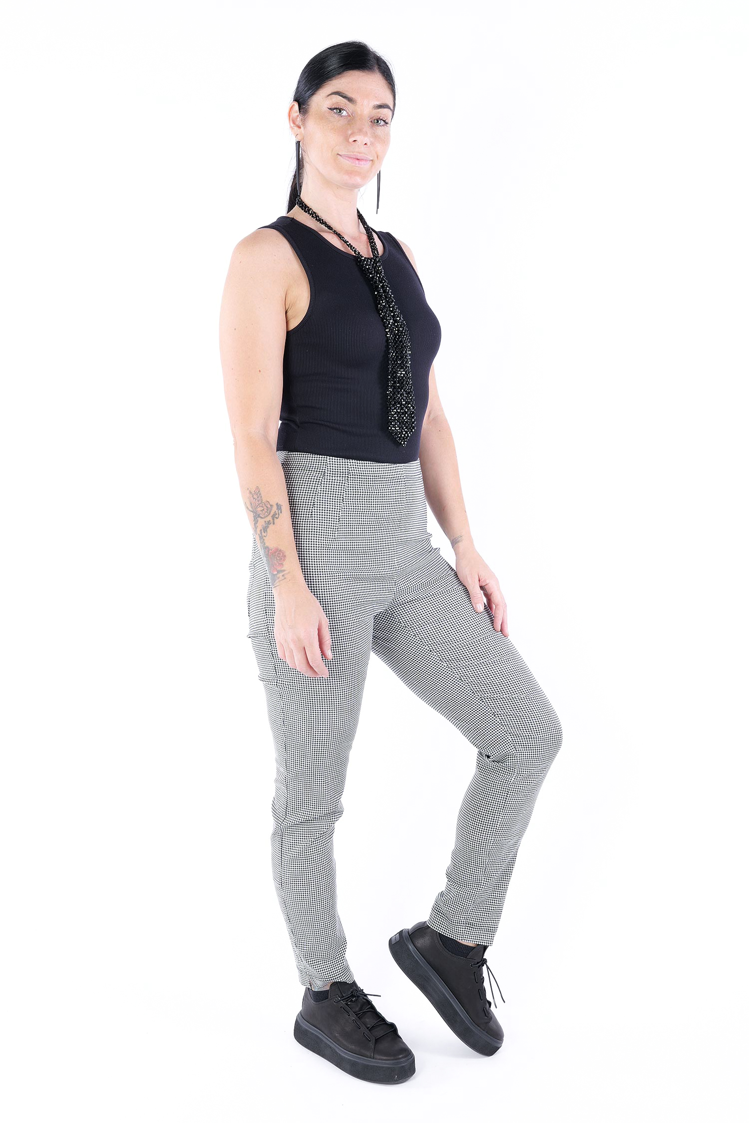 Schmale Stretchhose - Black offwhite check - 2253440132