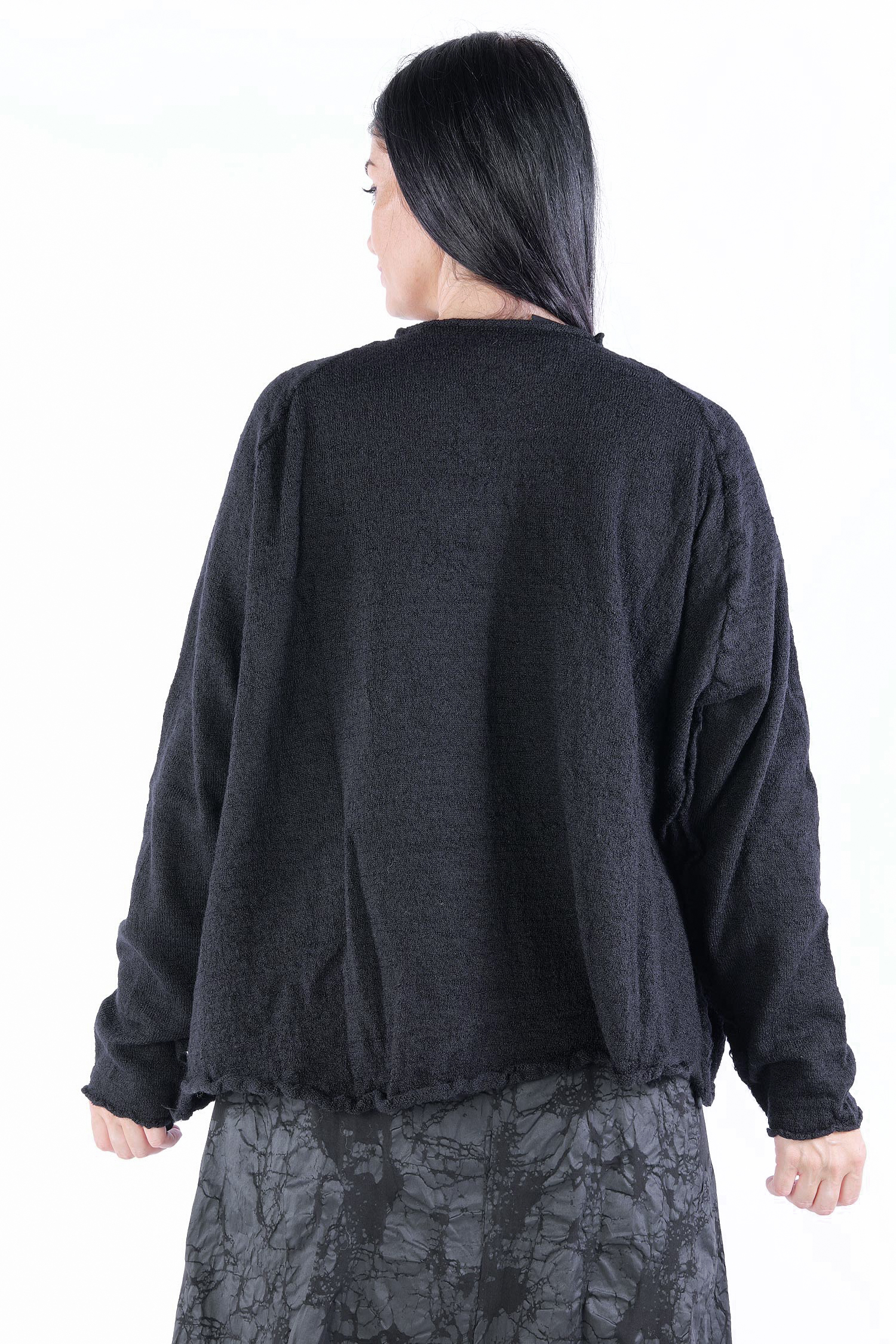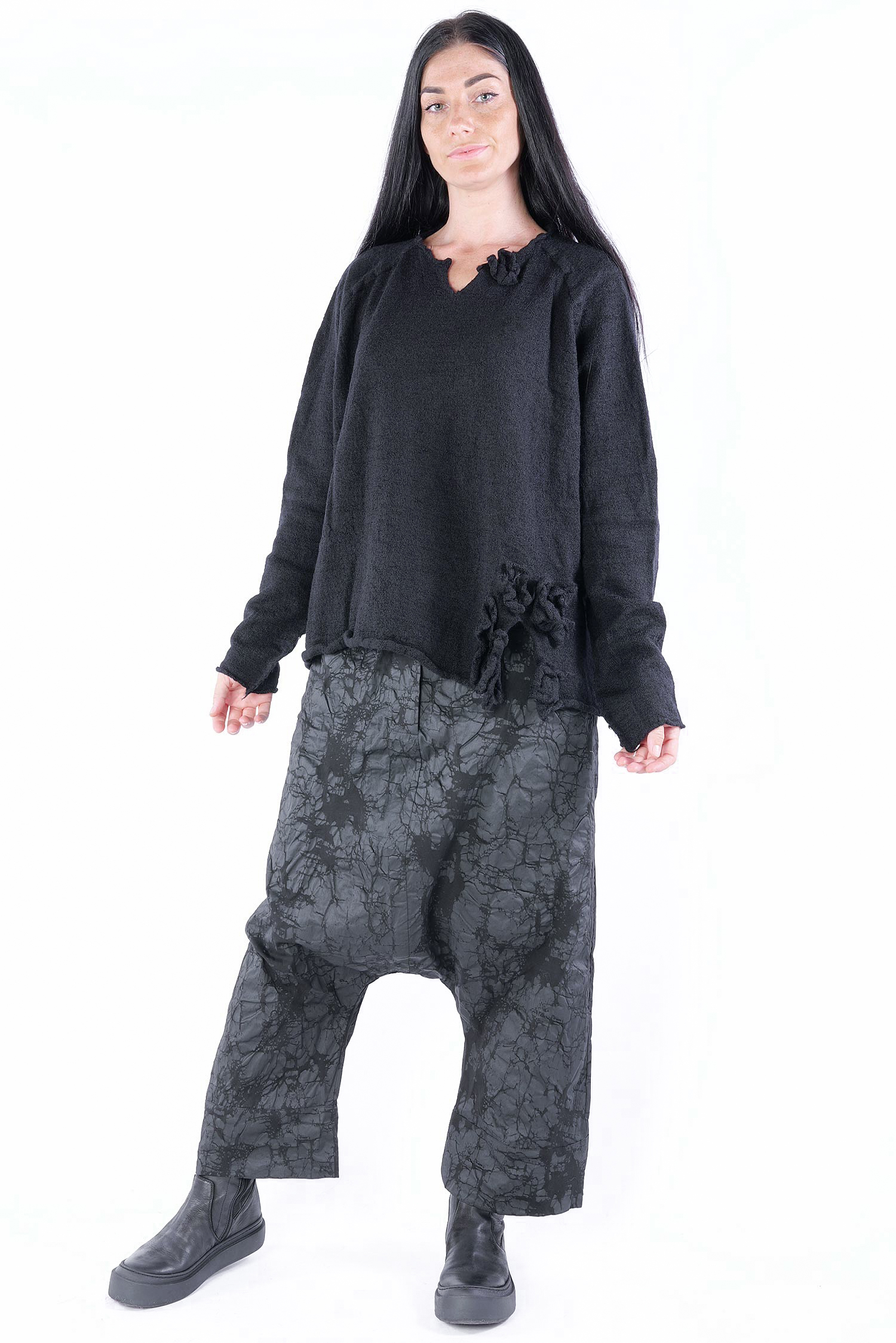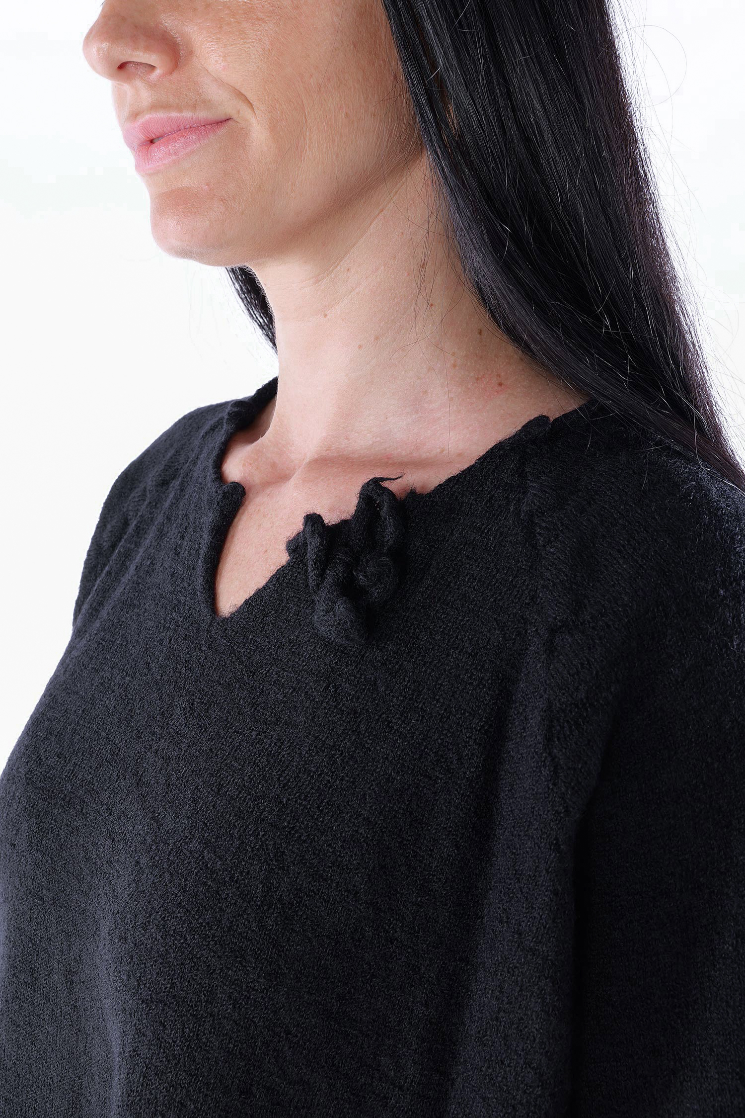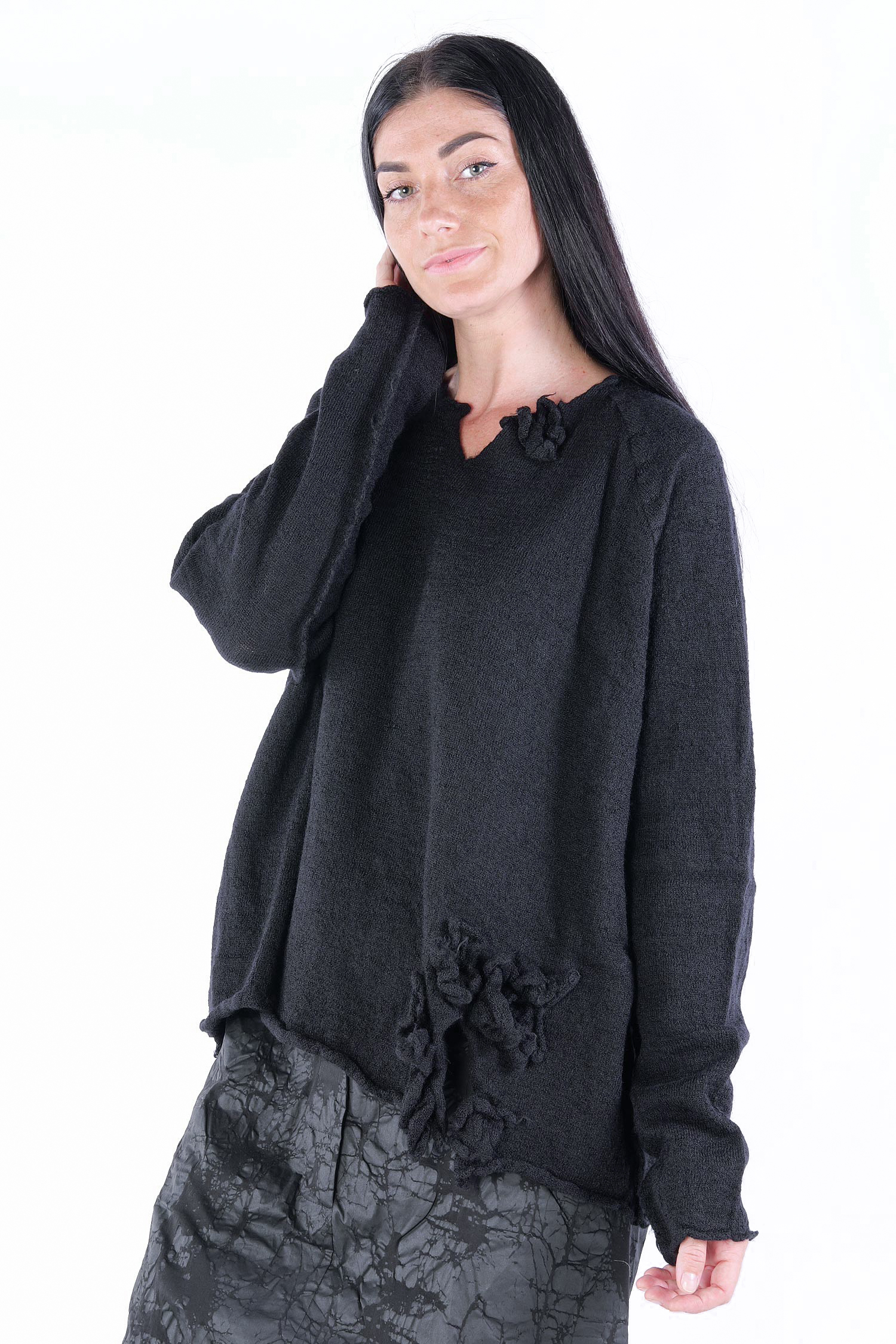 Weiter Schurwollepullover mit Blütendetails von Rundholz Black Label.