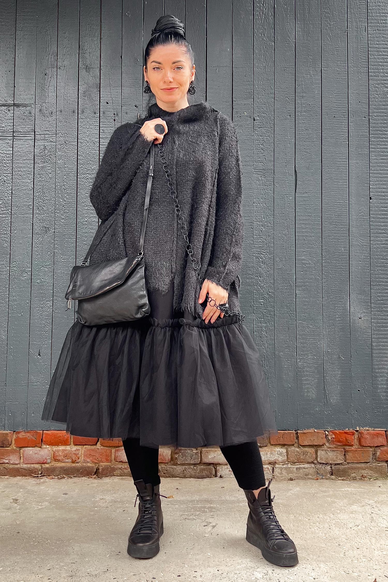 Langes Strickkleid - Schwarz - 039-DS-MEP