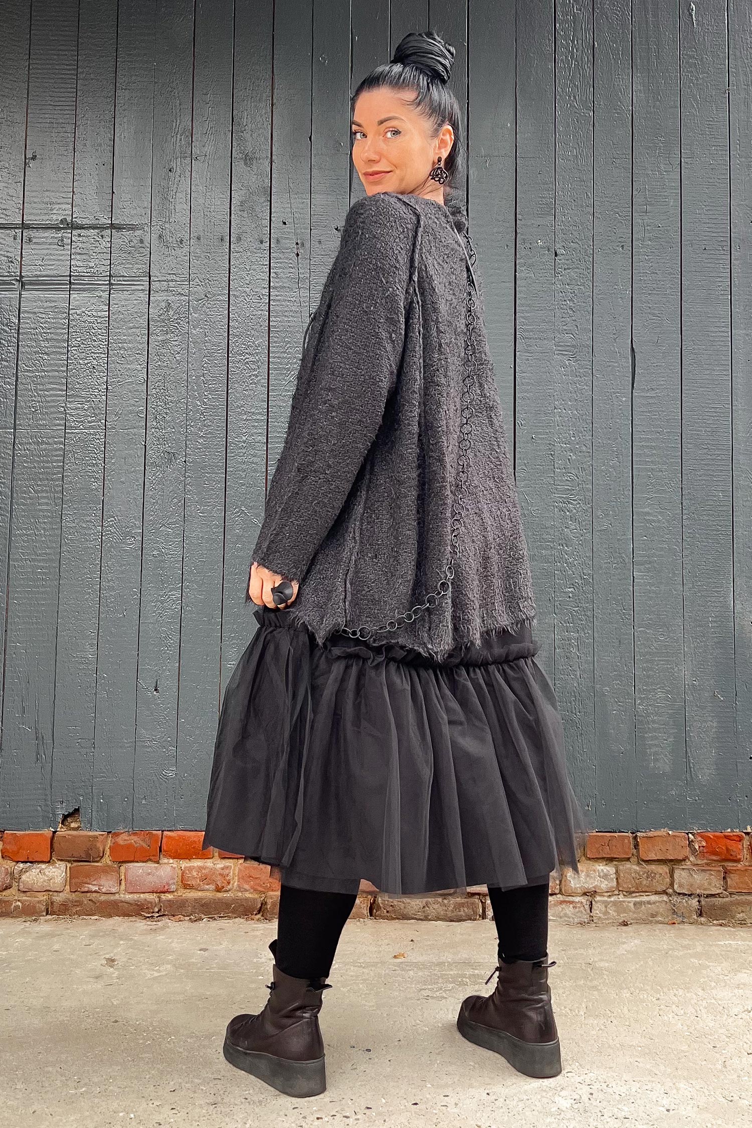 Tulpige Schurwollejacke - Schwarz - 2253897109